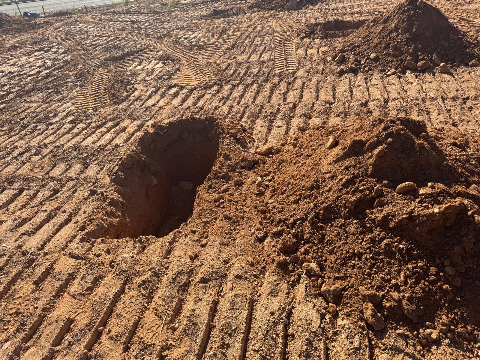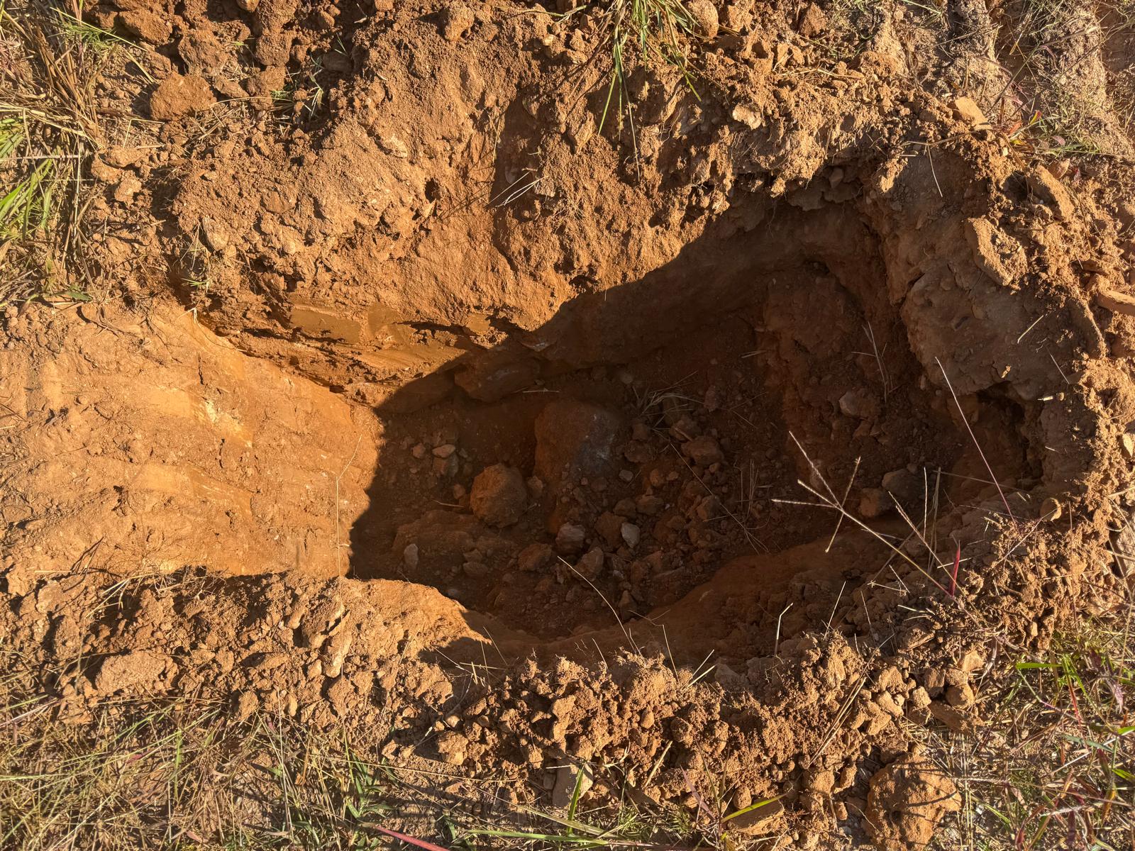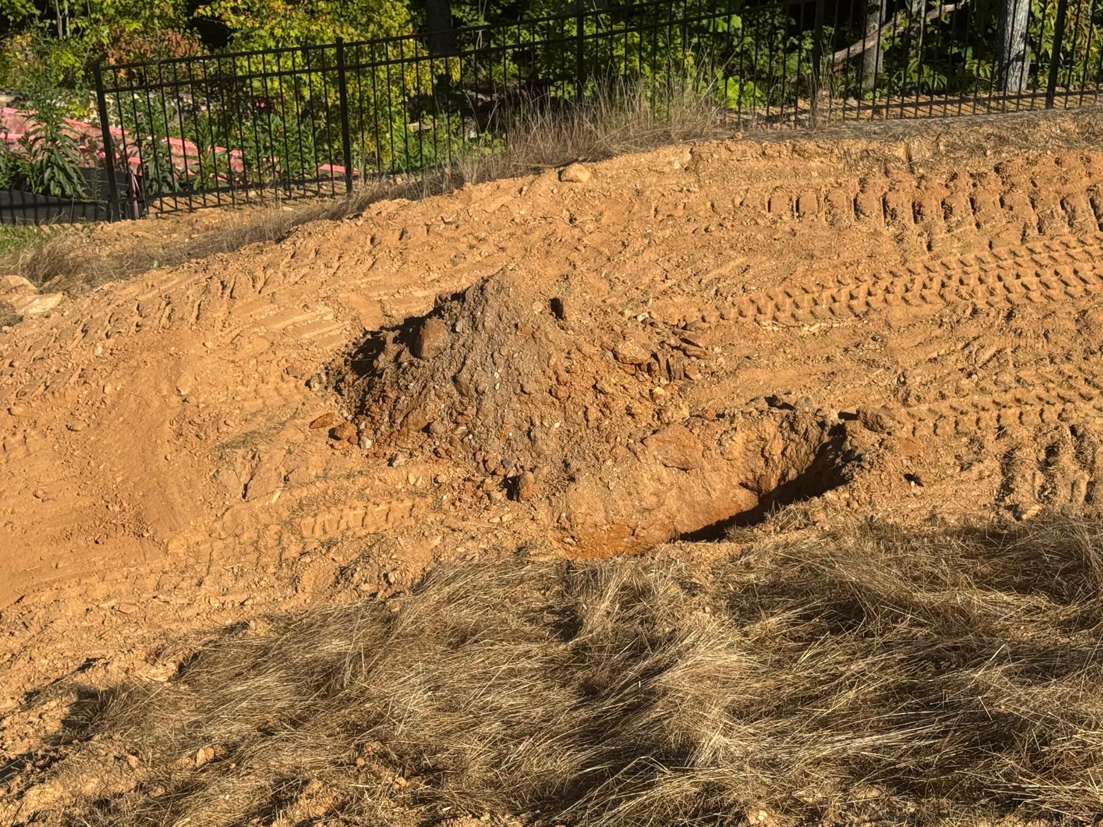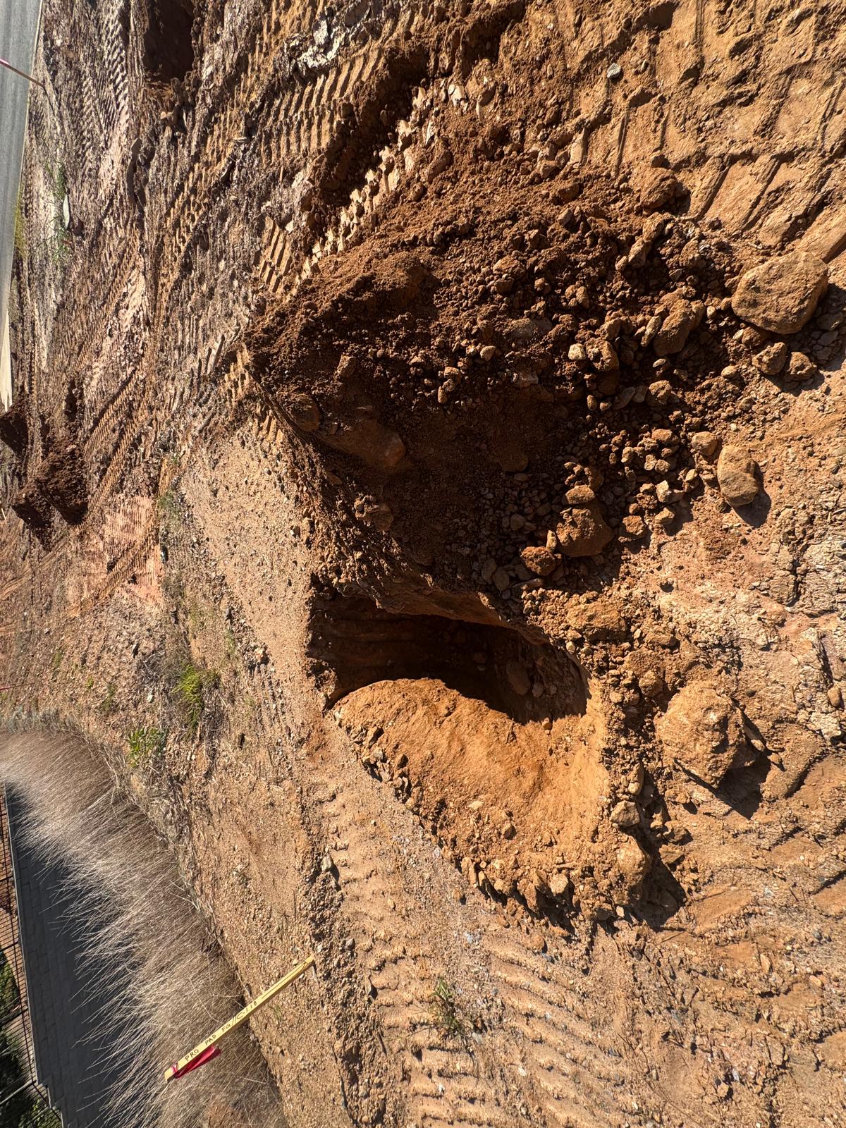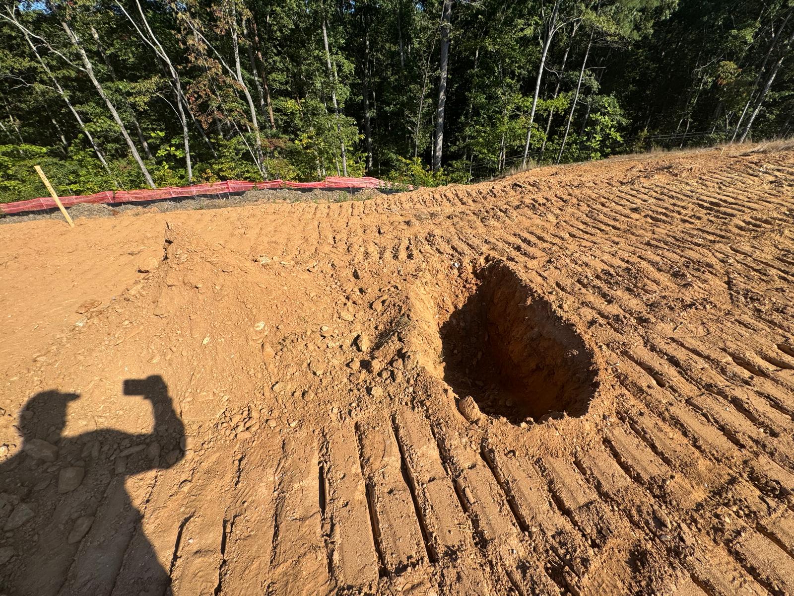 During the inspection, no refusal or obstructions were observed at the excavated depth. While rocks were encountered in several locations, they appeared to be manageable and are expected to be removable during the footing excavation process. These conditions are not expected to pose a significant issue for construction activities.