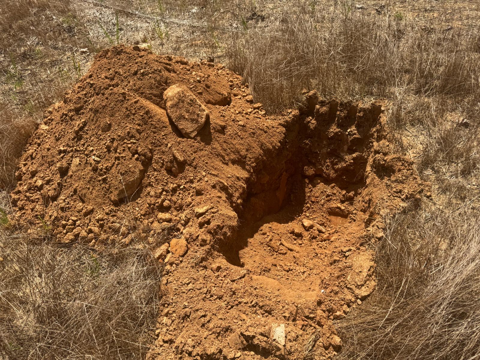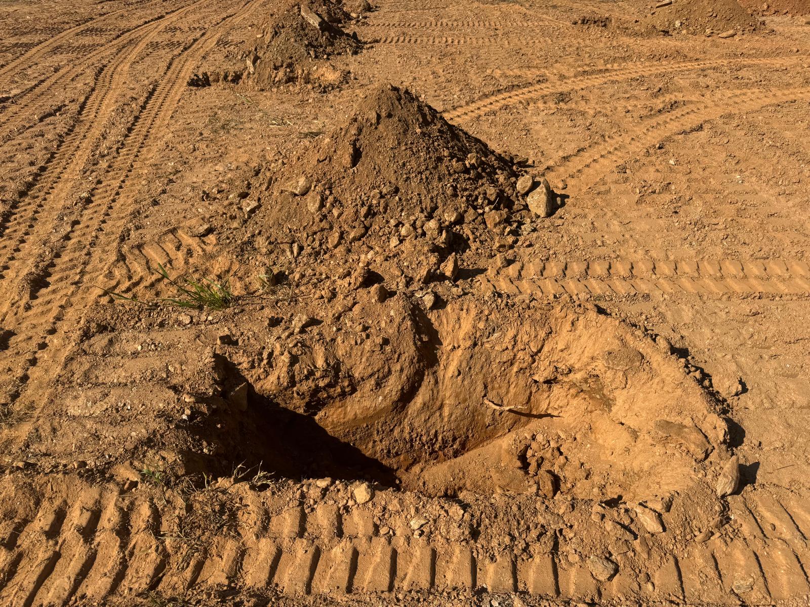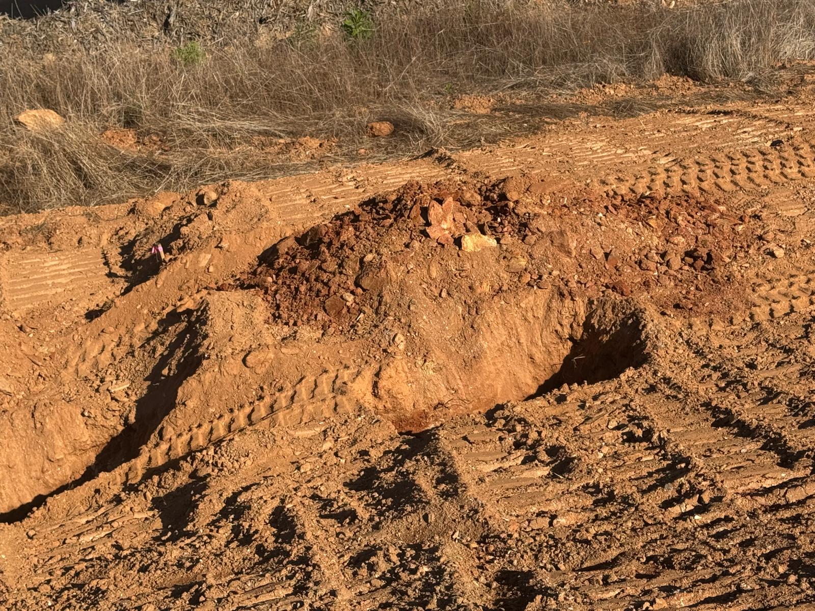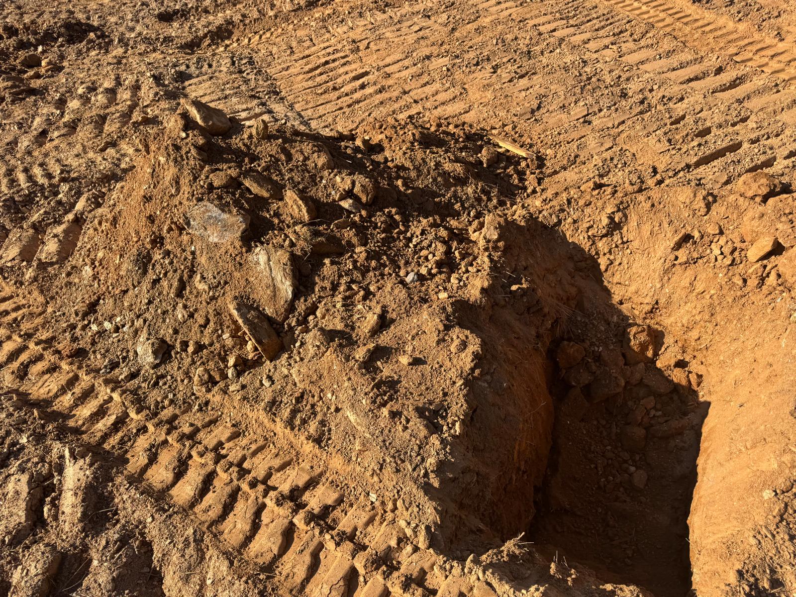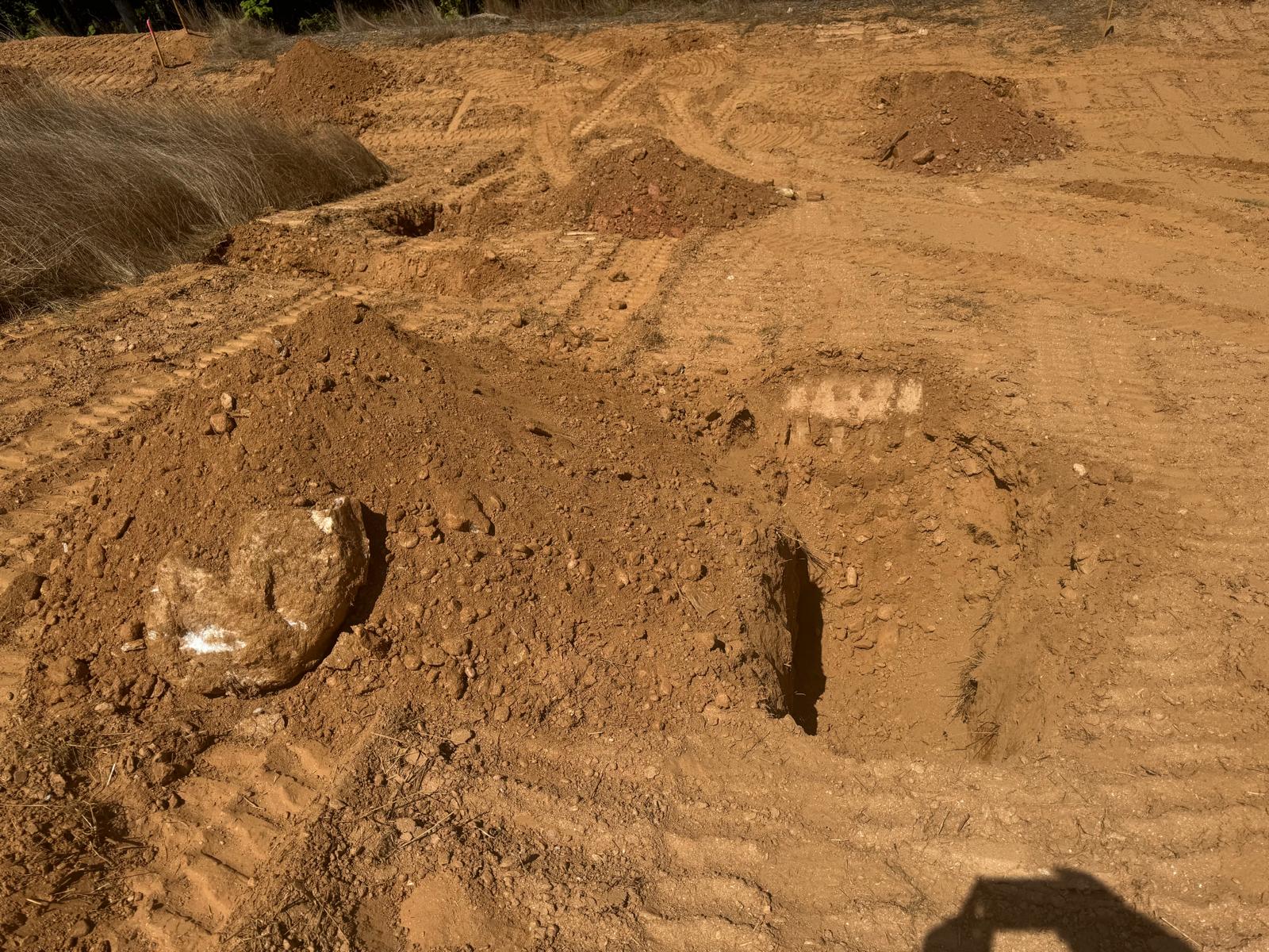 During the inspection, no refusal or obstructions were observed at the excavated depth. While rocks were encountered in several locations, they appeared to be manageable and are expected to be removable during the footing excavation process. These conditions are not expected to pose a significant issue for construction activities.