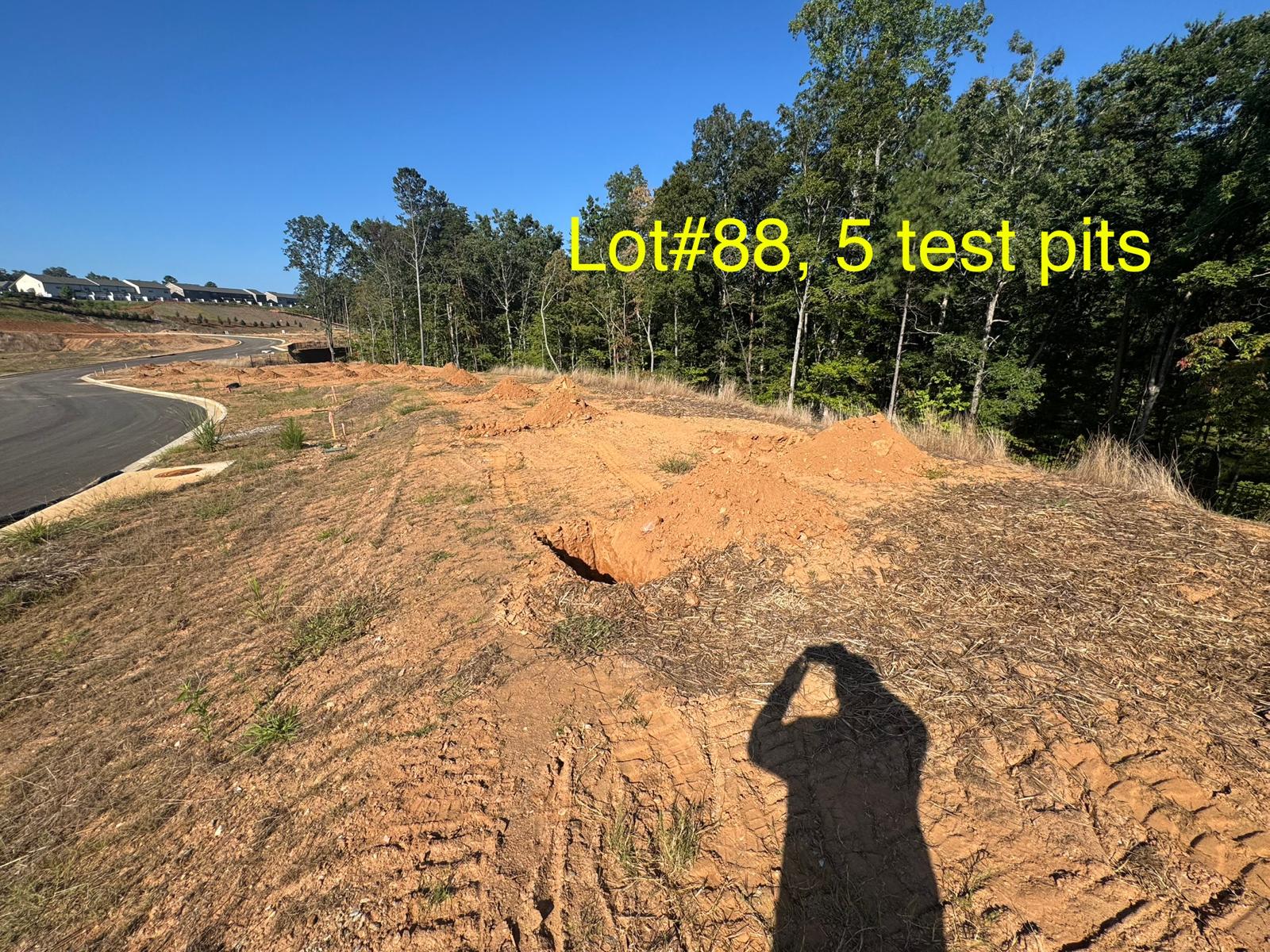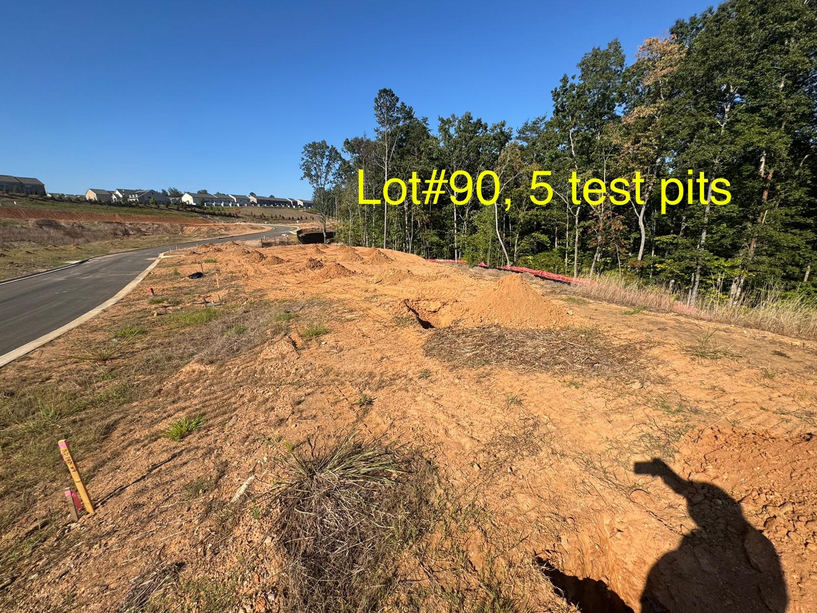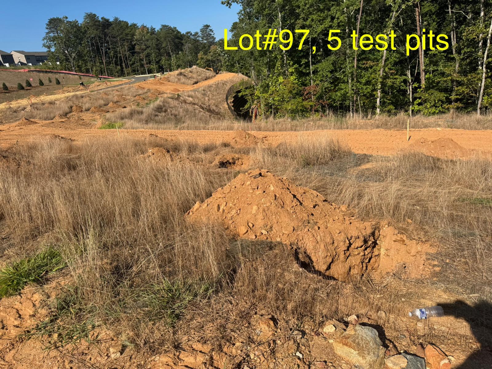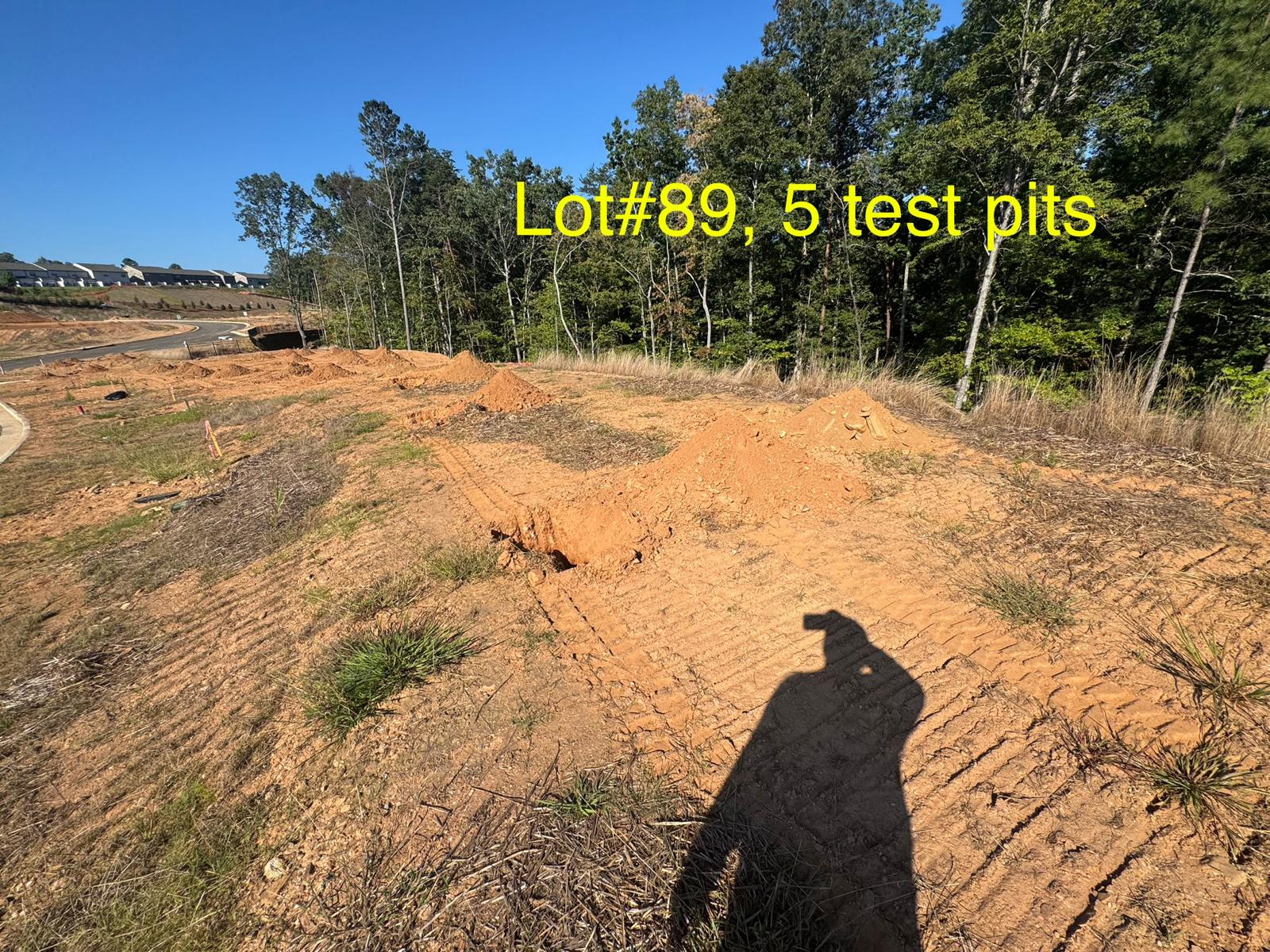 On this day, test pit investigations were conducted by the contractor on Lots #83 through #107. For each lot, a total of five test pits were excavated: one at each of the four corners and one in the center. Each pit was excavated to a depth of approximately 24 inches to assess subsurface conditions for potential rock presence and refusal concerns related to future plumbing and footing installations.