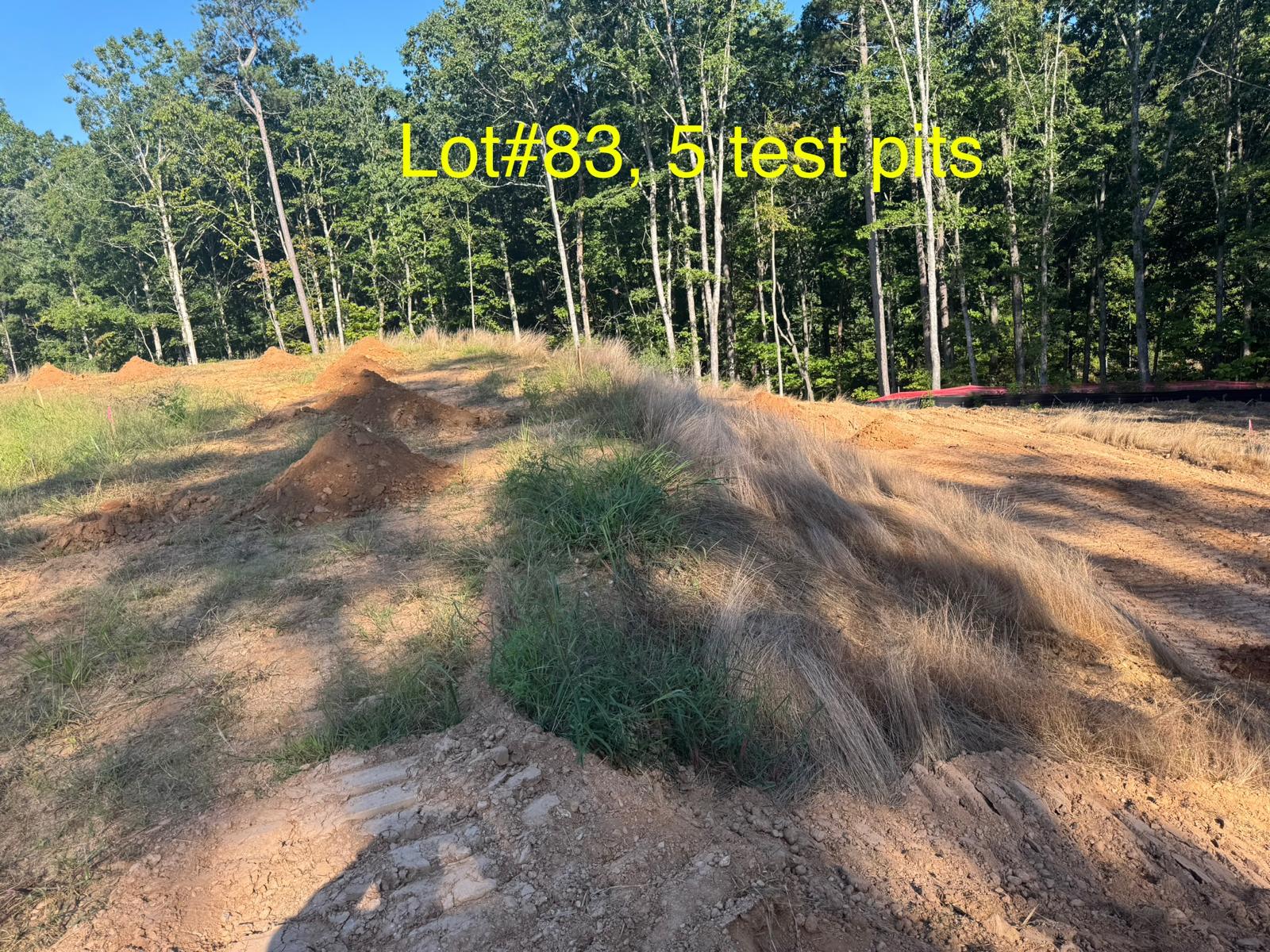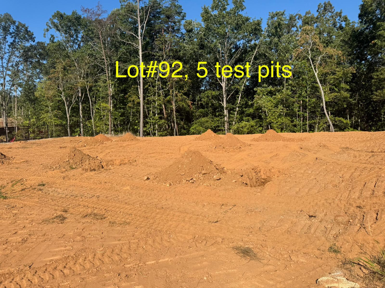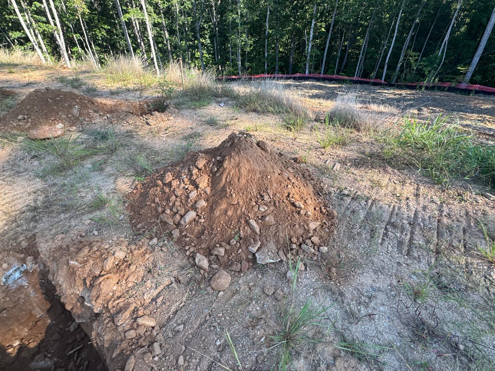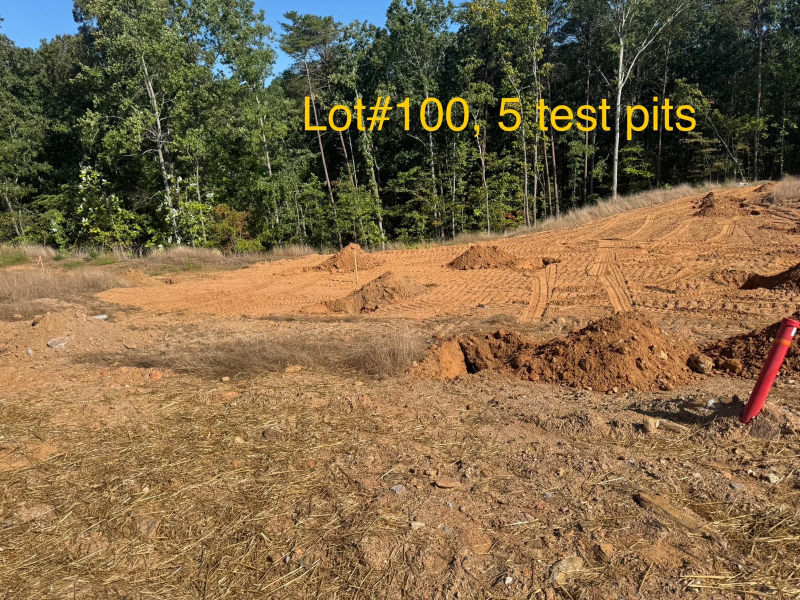 On this day, test pit investigations were conducted by the contractor on Lots #83 through #107. For each lot, a total of five test pits were excavated: one at each of the four corners and one in the center. Each pit was excavated to a depth of approximately 24 inches to assess subsurface conditions for potential rock presence and refusal concerns related to future plumbing and footing installations.