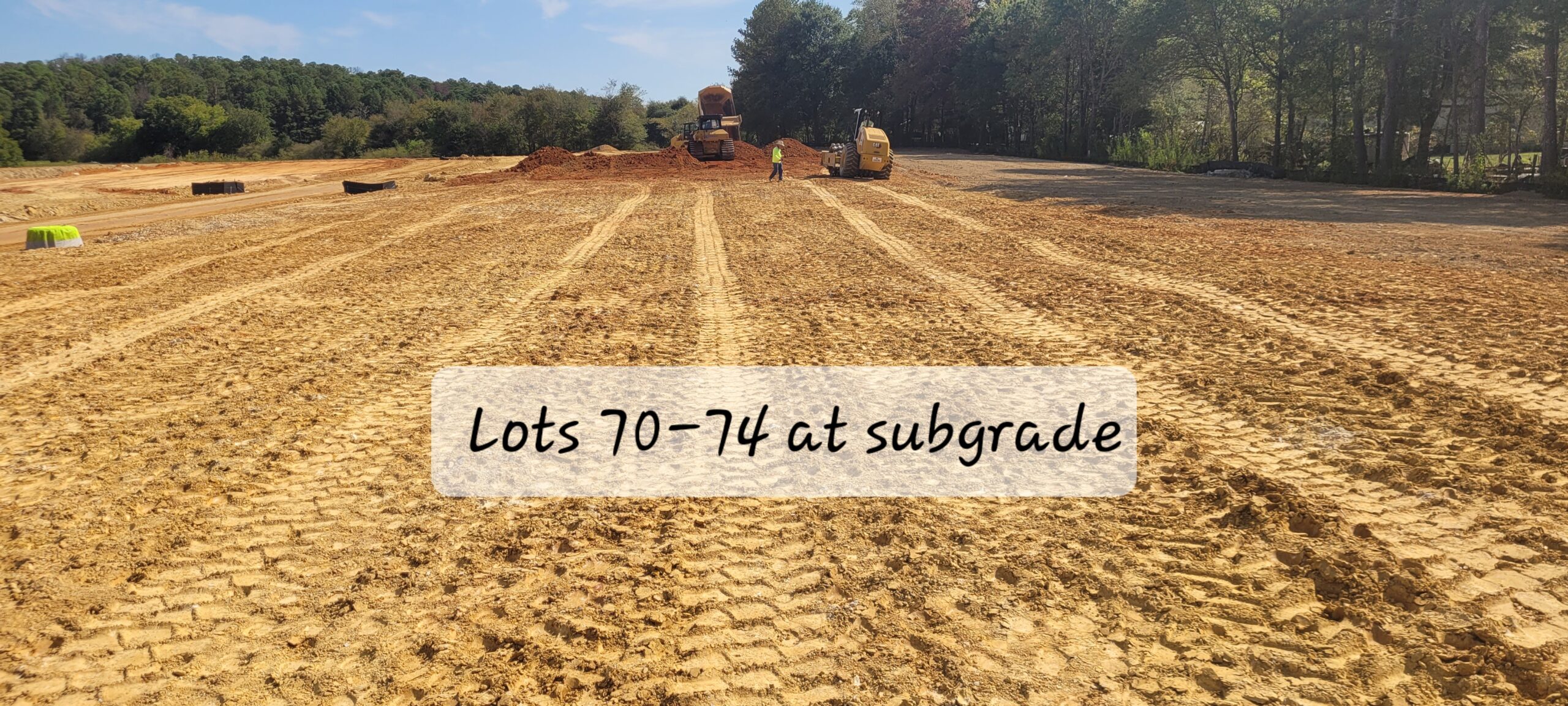 Picture depicting lots 70-74 at subgrade and proof rolled