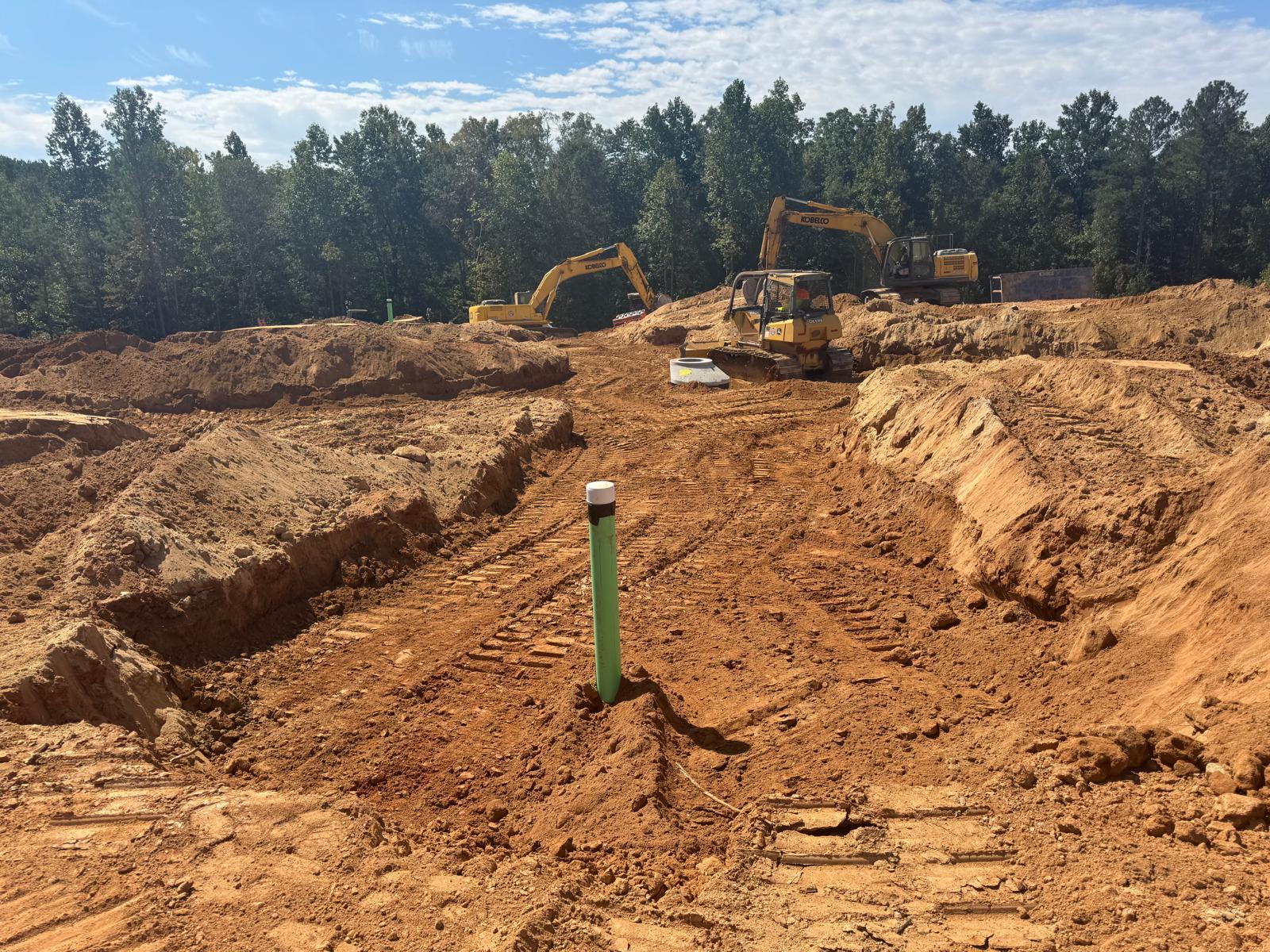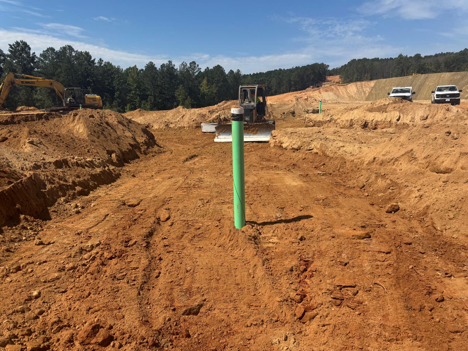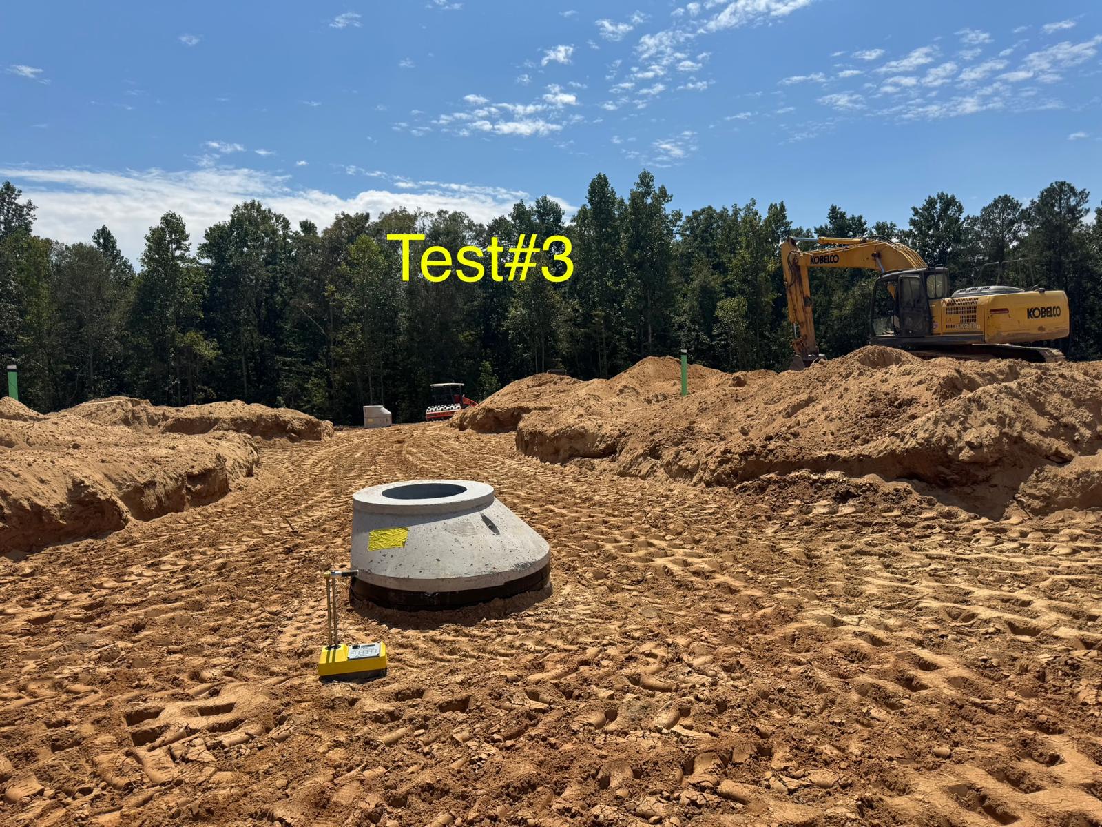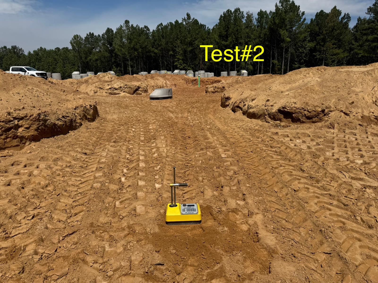 The placement and compaction of backfill for the sewer trenches between MH5 and MH5A and service lines for Lots #1,2,3,4, and 5 continued on this day. Upon arrival, the ASEC representative observed active work in progress, with fill being placed in 1-foot lifts. Compaction was carried out using a sheep-foot roller (14-ton) along with a trench compactor for the sewer trench. Compaction testing was performed using a Troxler nuclear density gauge, supplemented by general probing with a 3/8″ diameter probe rod. The density test results indicated that most of the compacted materials met the project requirement of achieving at least 95% of the maximum dry density, in accordance with ASTM D698 (Standard Proctor).