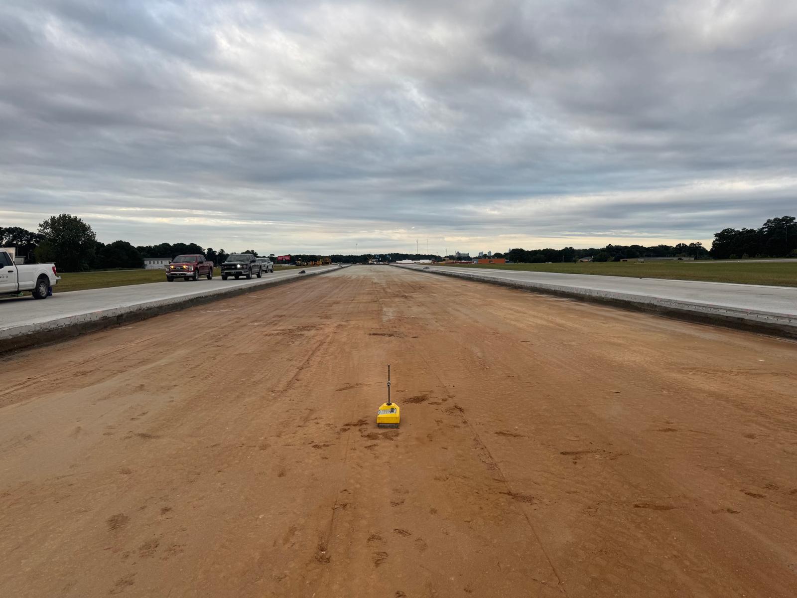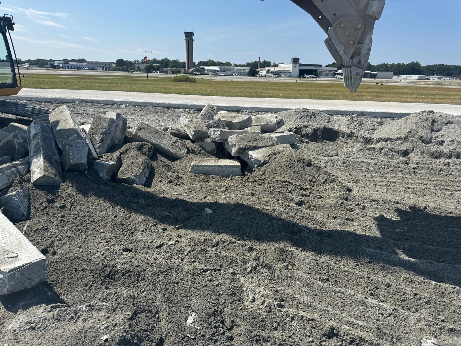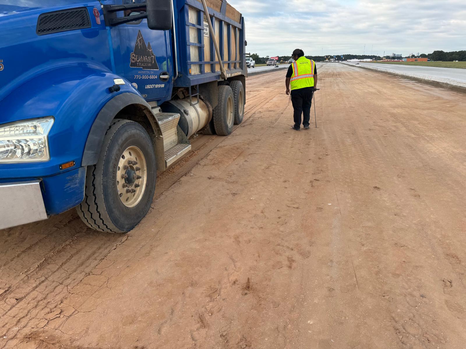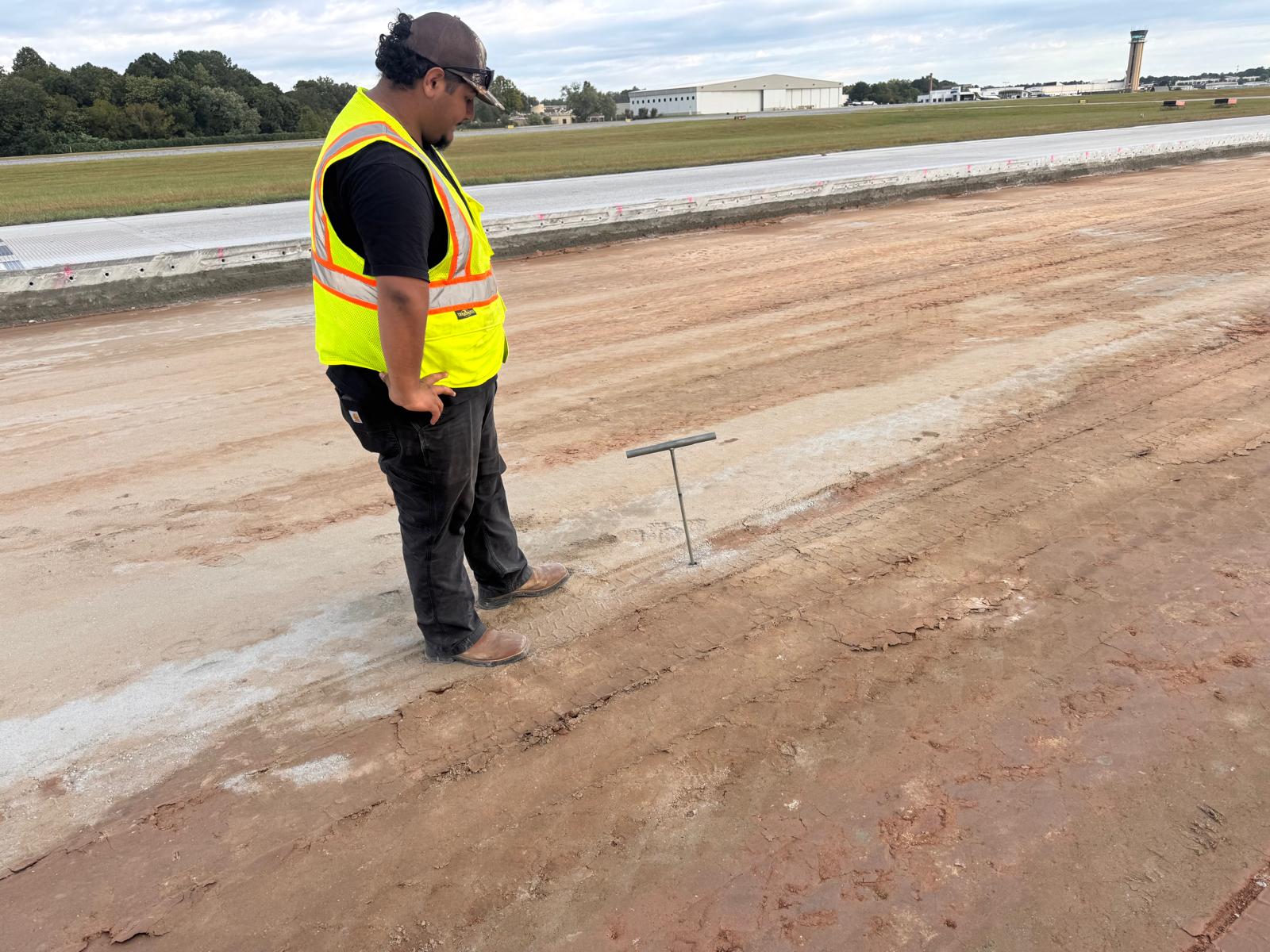 Compaction testing was performed on Section 1A between STA 1020+00 to 1028+00 on Runway 3R-21L and Section 1B between STA 1048+50 and 2180+00 using a Troxler nuclear density gauge, supplemented by general probing with a 3/8″ diameter probe rod. The density test results indicated that most of the compacted materials did not meet the project requirement of achieving a minimum of 100% of the maximum dry density, in accordance with ASTM D1557 (Modified Proctor). - Performed demolition for section 1B on this day.