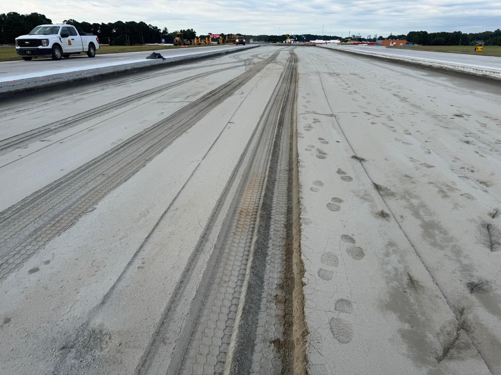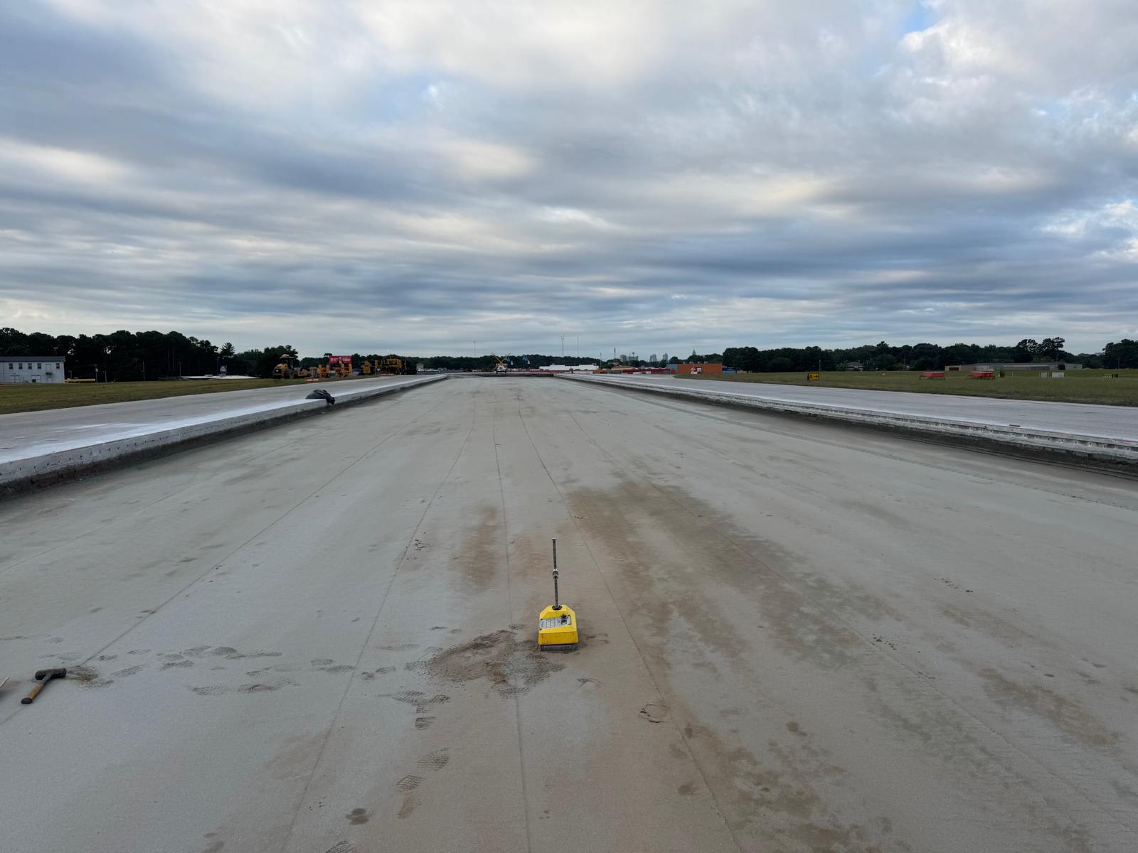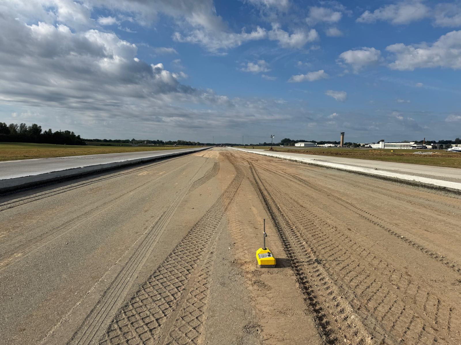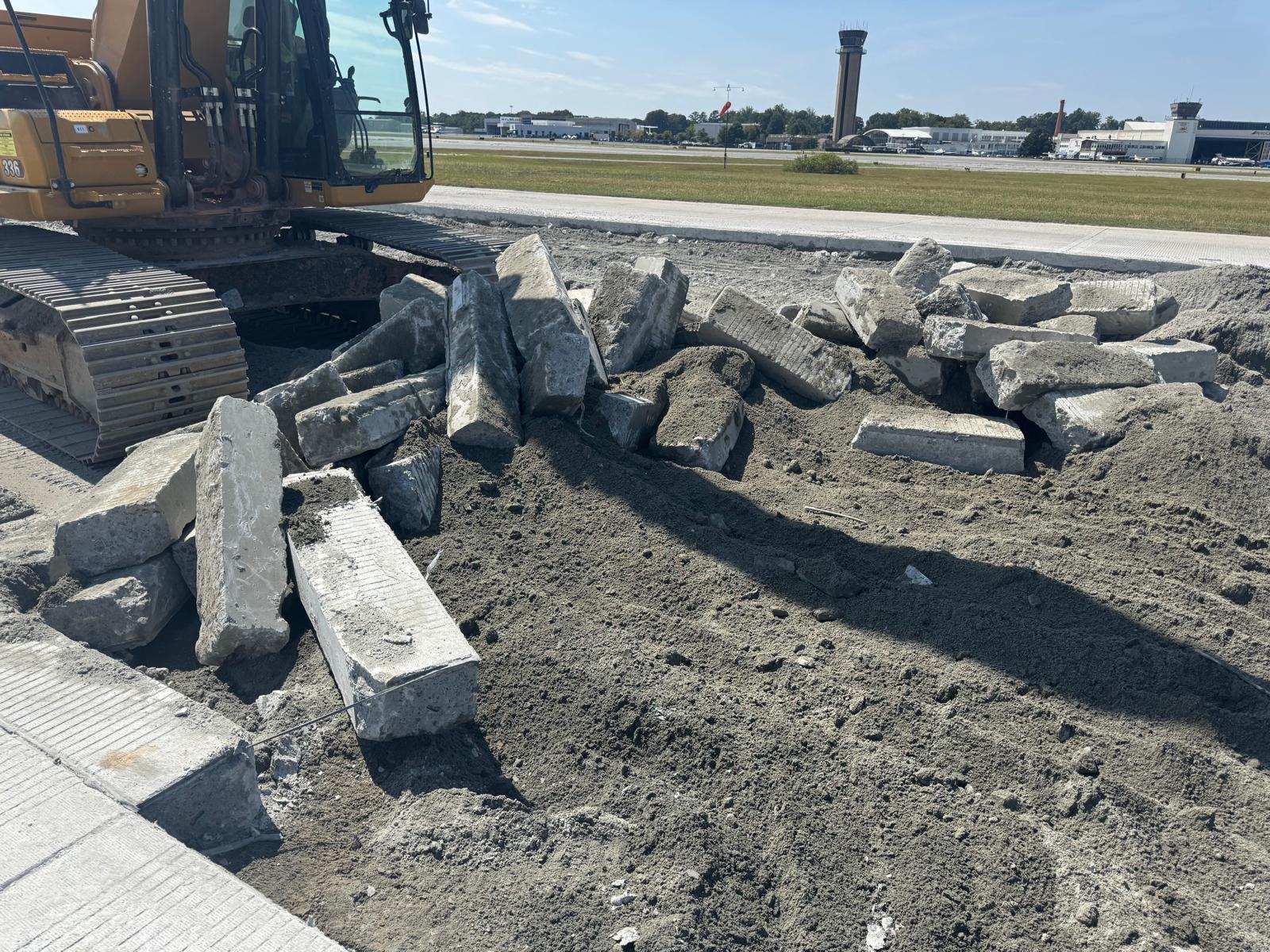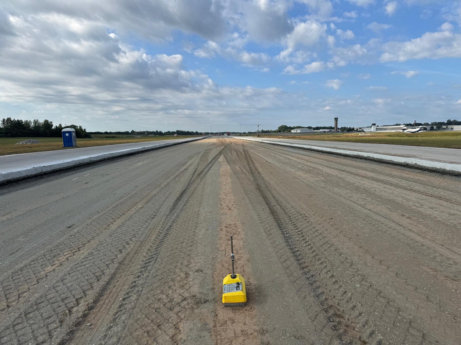Compaction testing was performed on Section 1A between STA 1020+00 to 1028+00 on Runway 3R-21L and Section 1B between STA 1048+50 and 2180+00 using a Troxler nuclear density gauge, supplemented by general probing with a 3/8″ diameter probe rod. The density test results indicated that most of the compacted materials did not meet the project requirement of achieving a minimum of 100% of the maximum dry density, in accordance with ASTM D1557 (Modified Proctor). - Performed demolition for section 1B on this day.