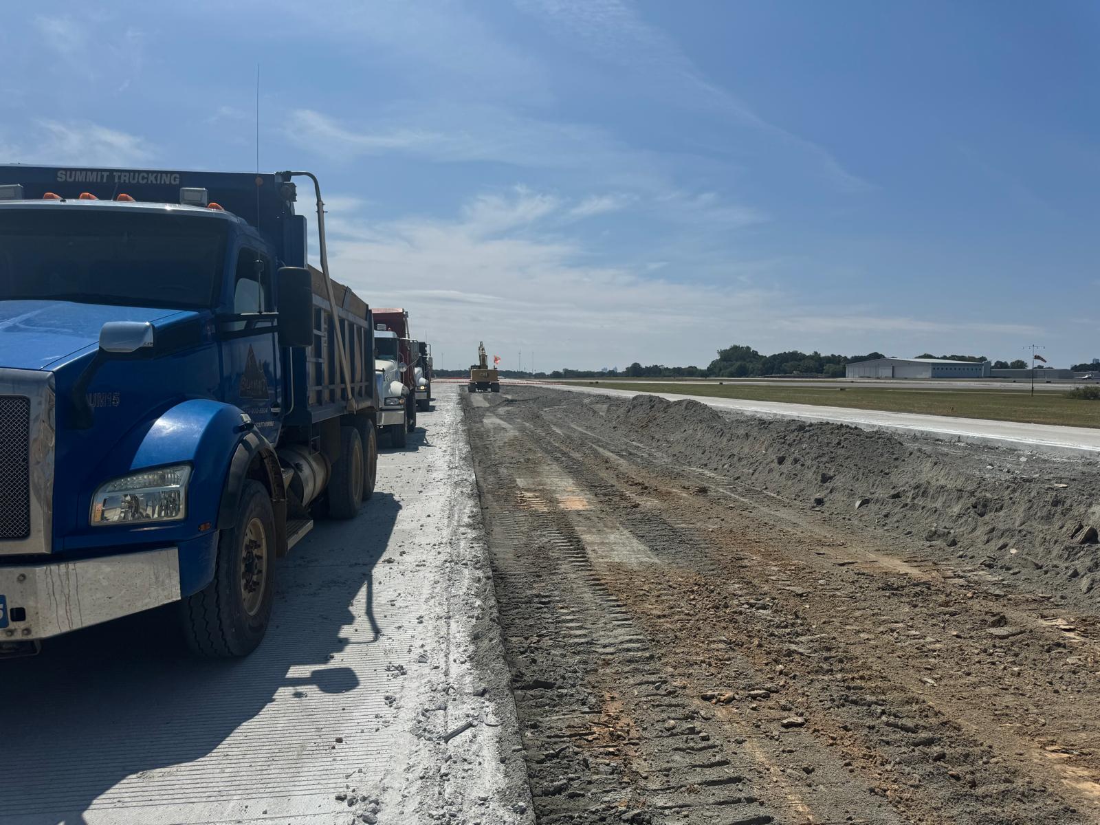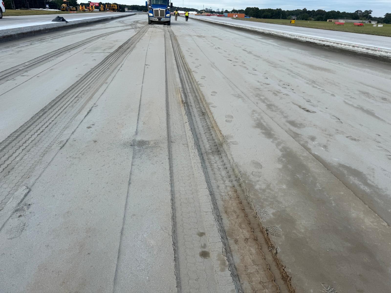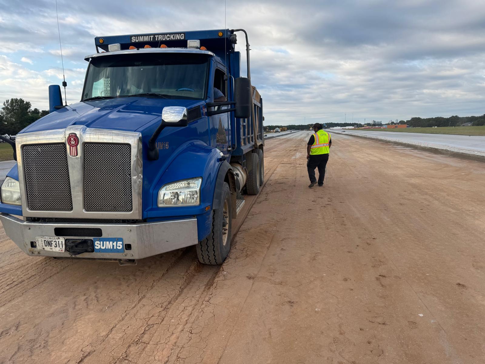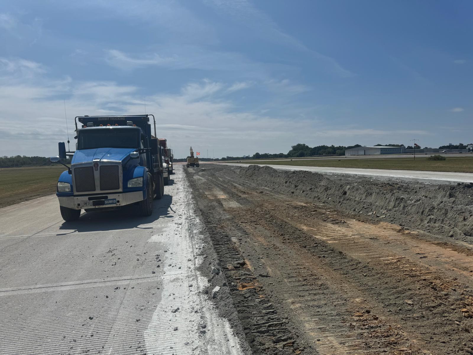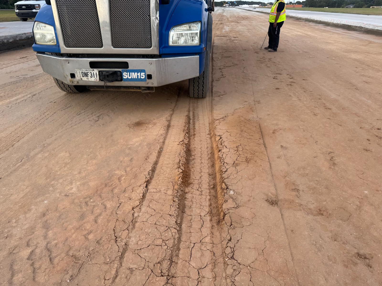 A proof roll was conducted on Section 1A between STA 1020+00 to 1028+00 on Runway 3R-21L using a fully loaded tandem axle truck. Multiple passes were made across the subgrade. During the proof roll, some significant yielding and deflection were observed throughout the tested areas, indicating insufficient subgrade stability. -