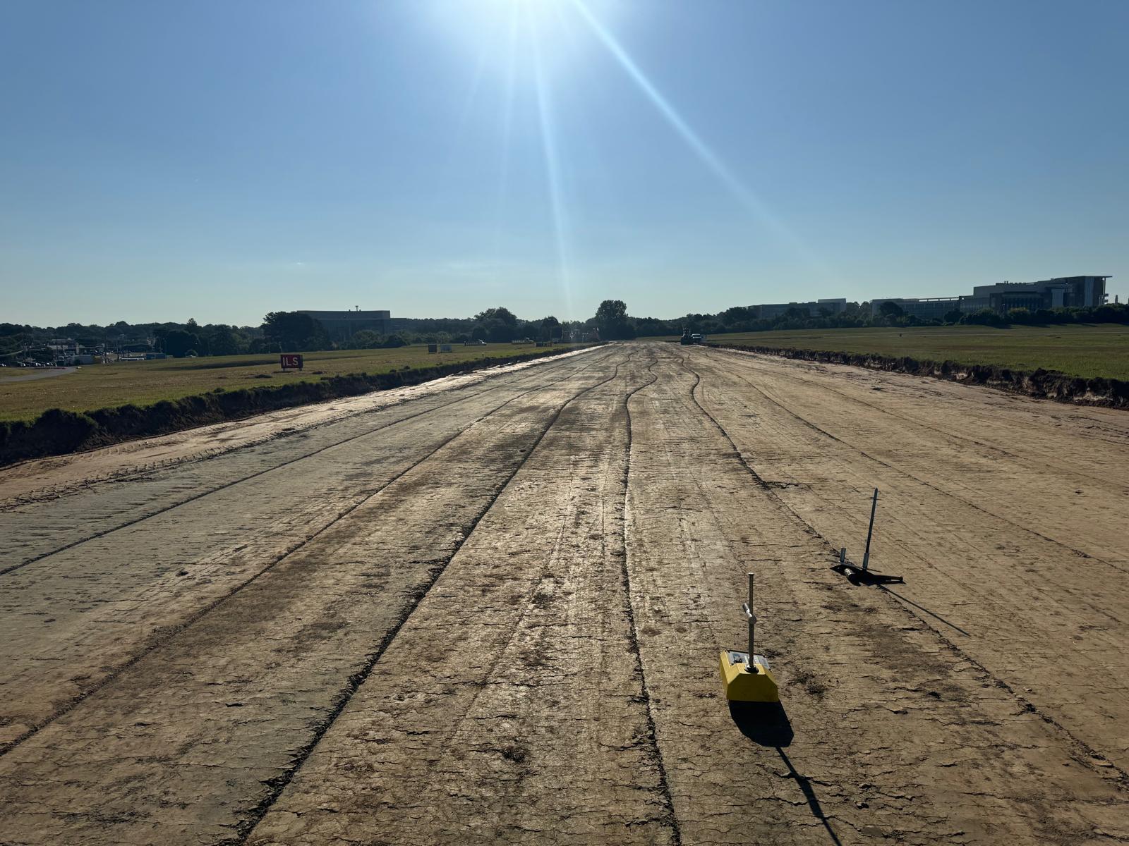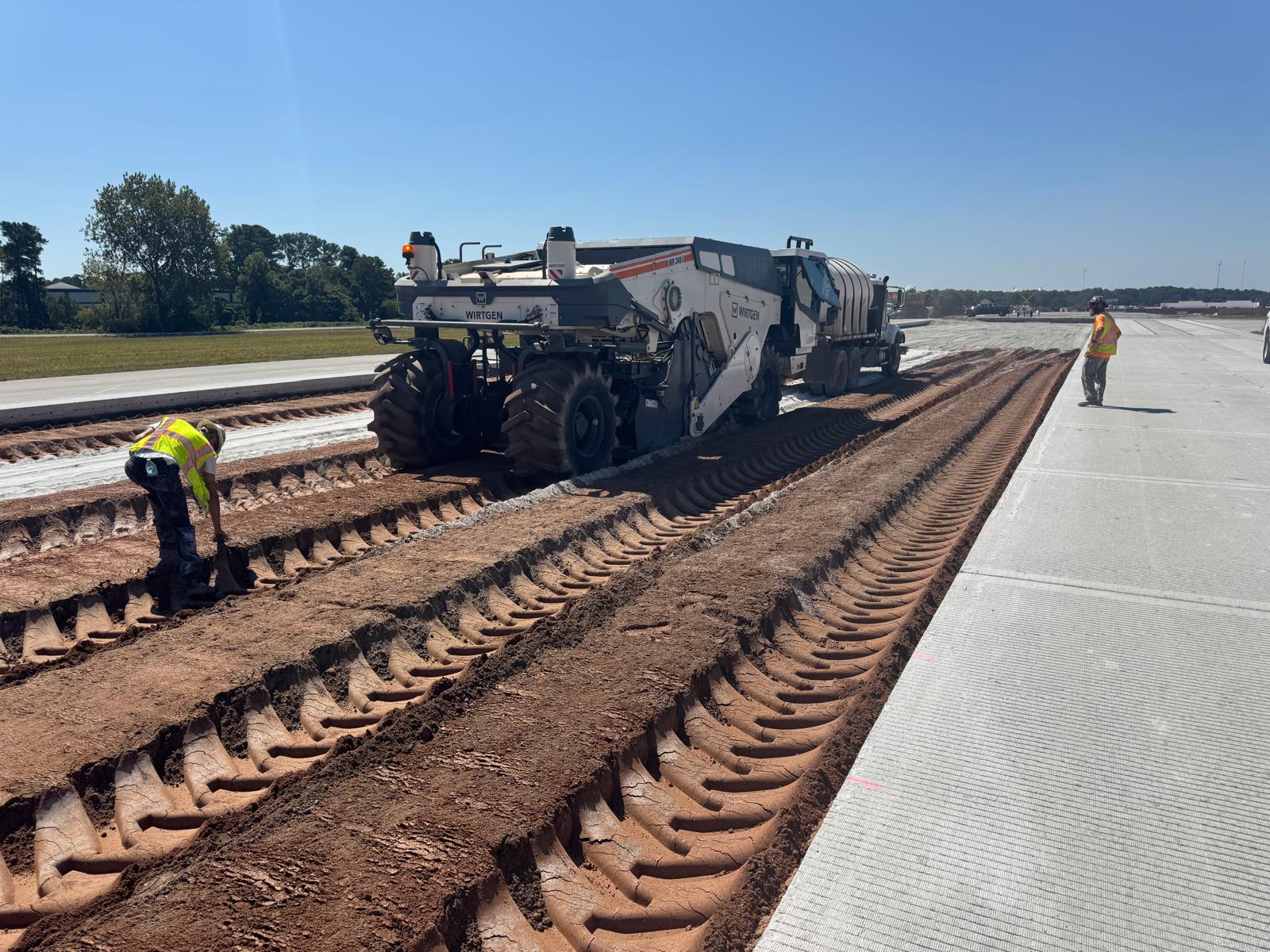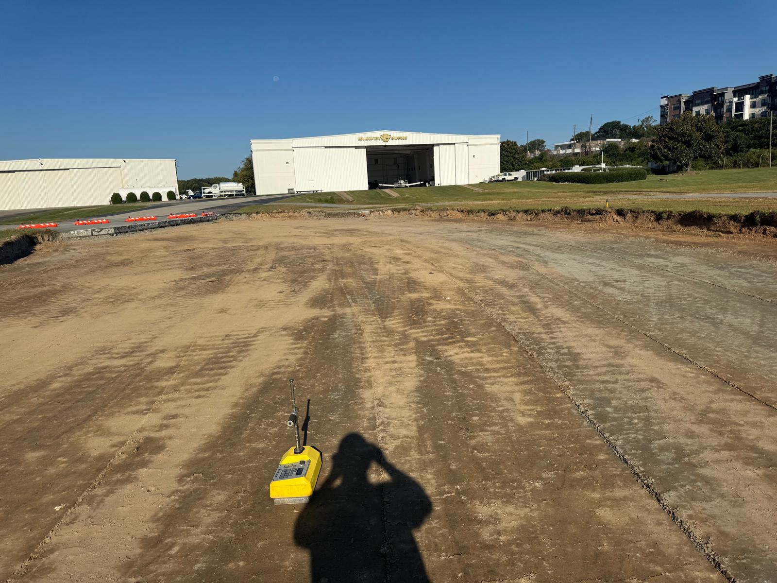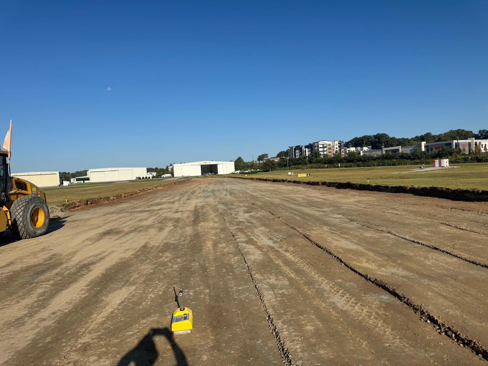 Compaction Testing: Compaction testing was performed on the Taxiway between STA 79+00 to 86+00 using a Troxler nuclear density gauge, supplemented by general probing with a 3/8″ diameter probe rod. The density test results indicated that most of the compacted materials did not meet the project requirement of achieving a minimum of 100% of the maximum dry density, in accordance with ASTM D1557 (Modified Proctor).