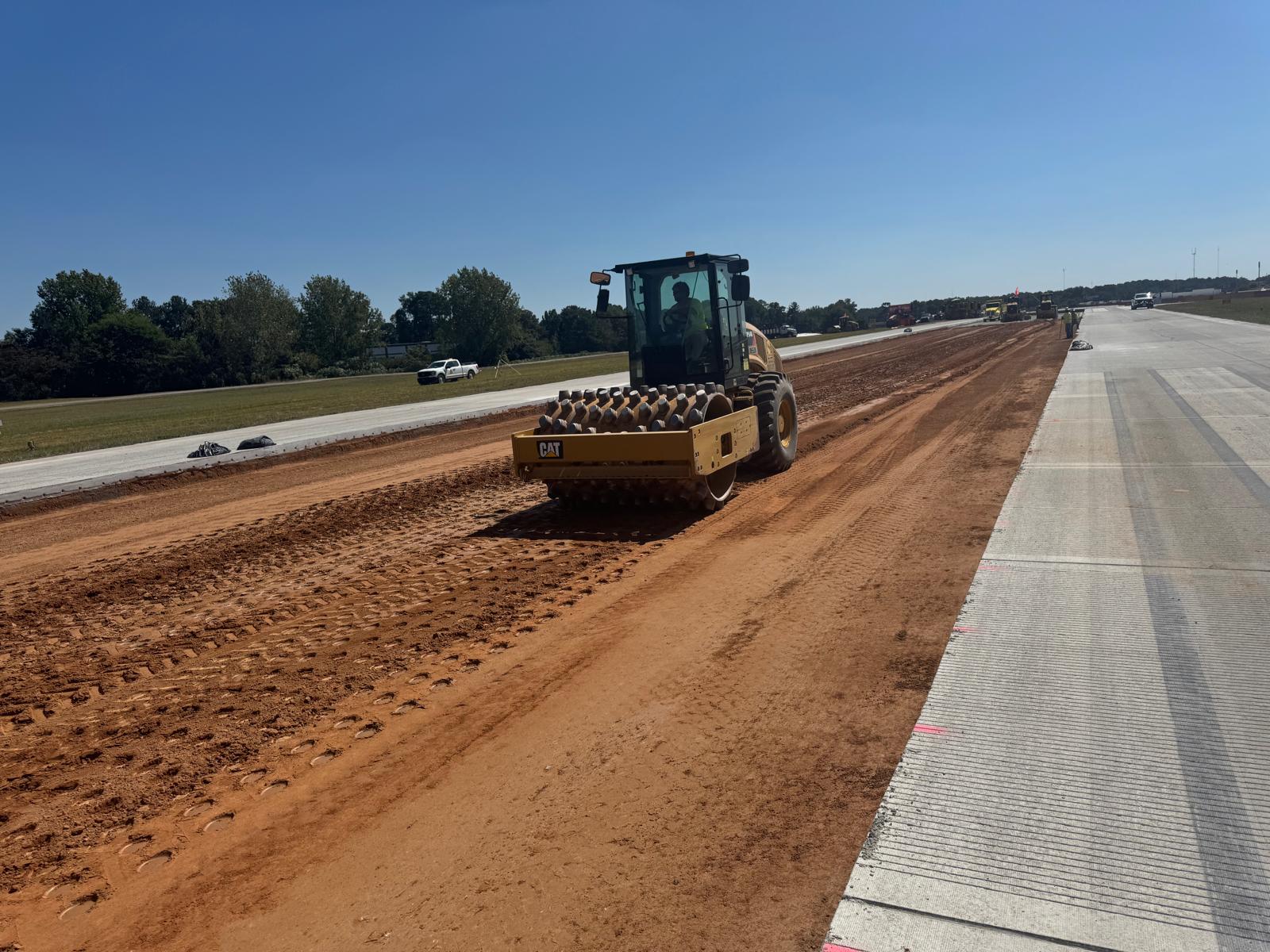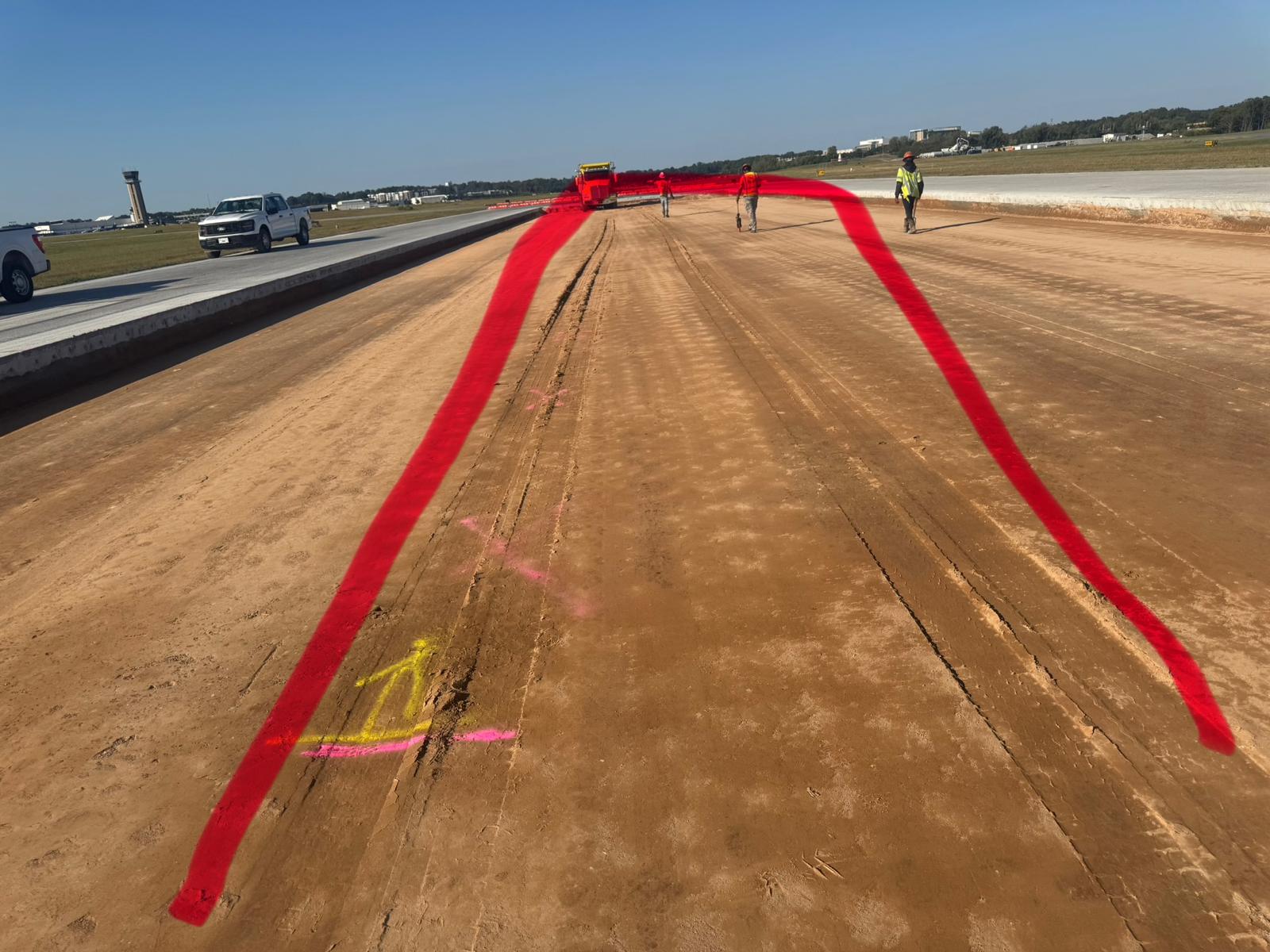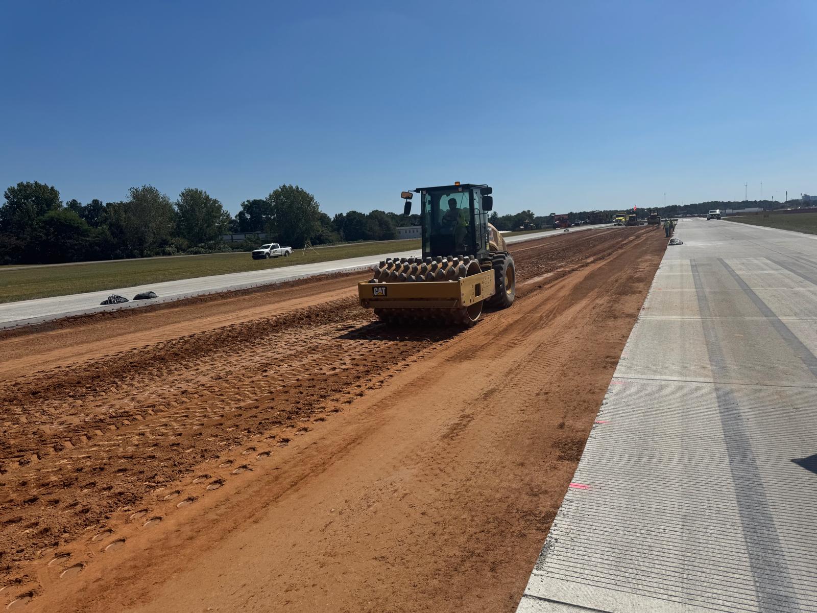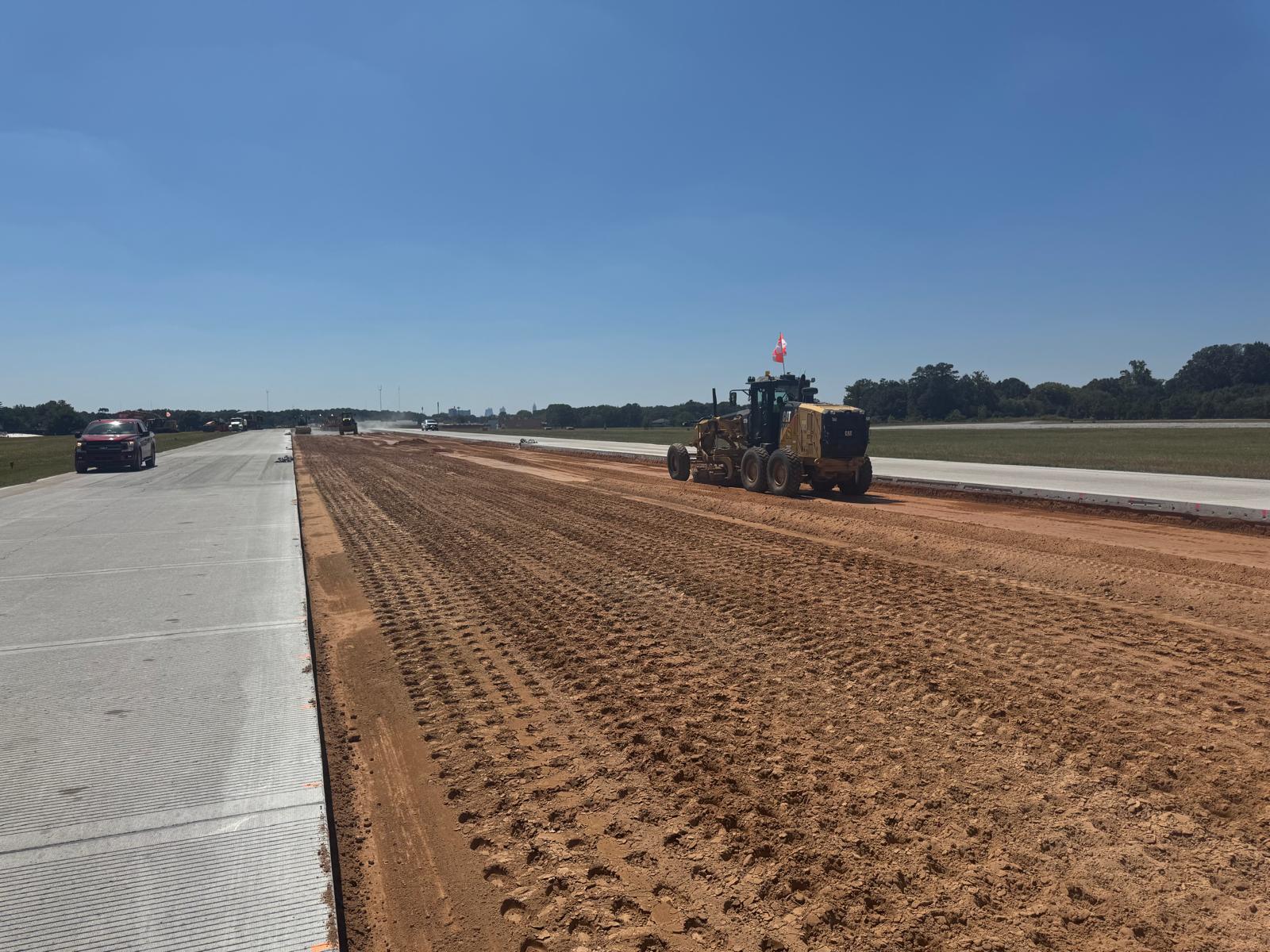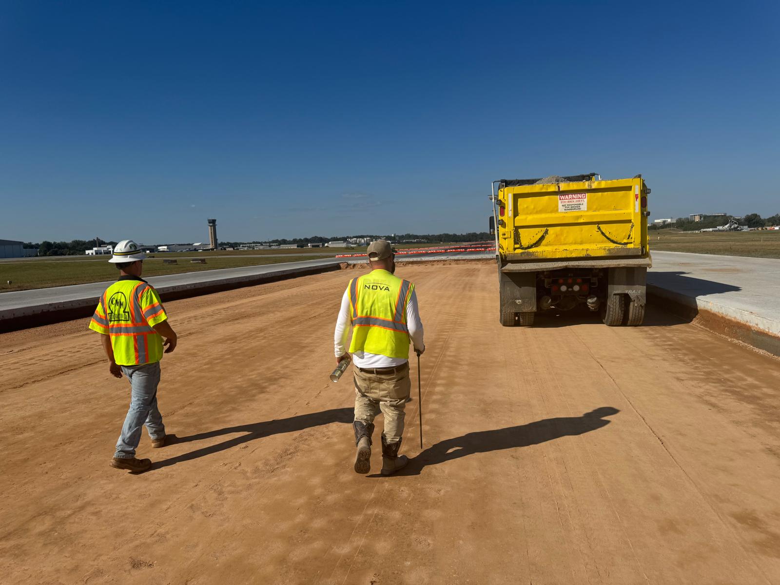 Proof Rolling Observation and Performance: A second proof-roll was performed on Section 1A between STA 1020+00 to 1028+00 on Runway 3R-21L using a fully loaded tandem axle truck. This section had previously been treated with lime, mixed into the soil to a depth of approximately 10 inches. Multiple passes were made across the subgrade. During the proof roll, some yielding and deflection were observed in approximately 18 feet of the center portion of Section 1A, where movement was noted, indicating that the subgrade soils in this area still showed poor stability.