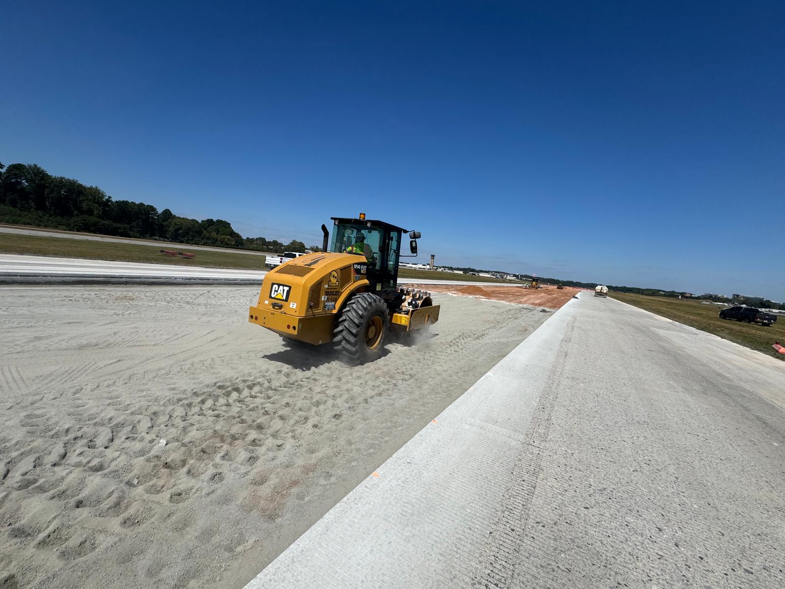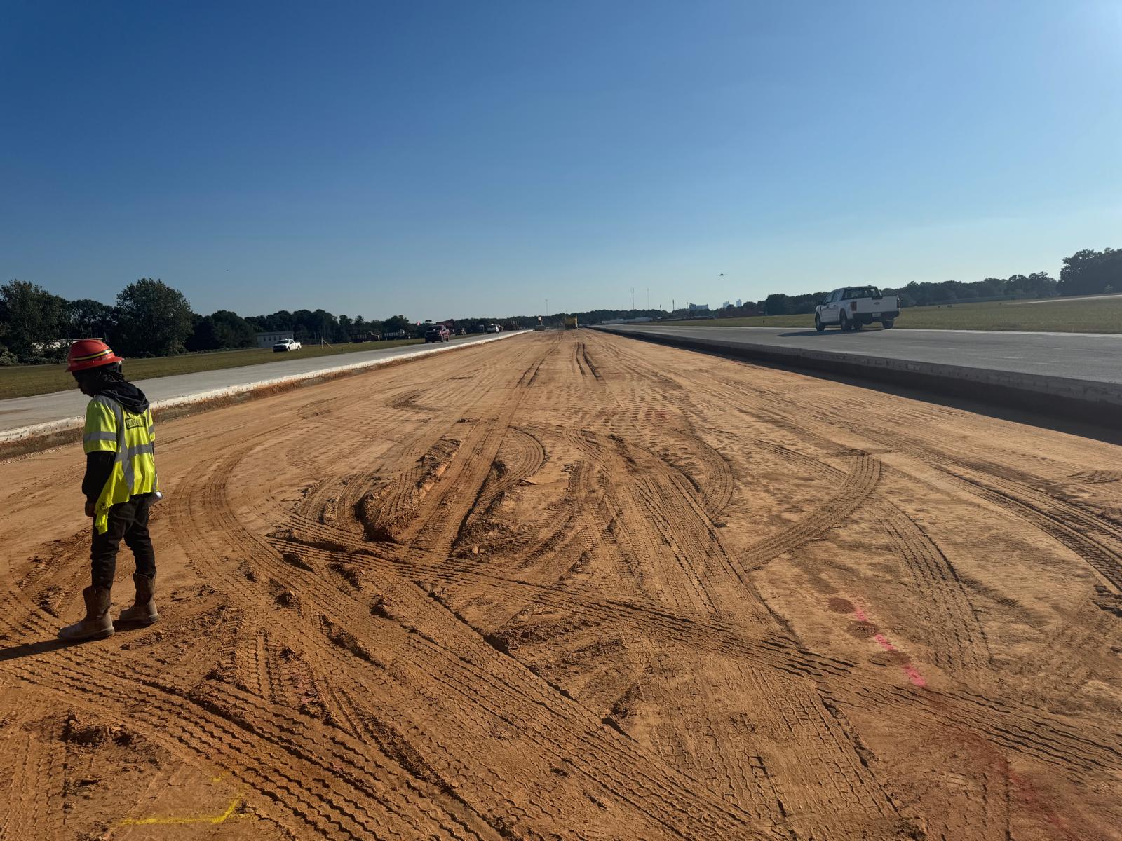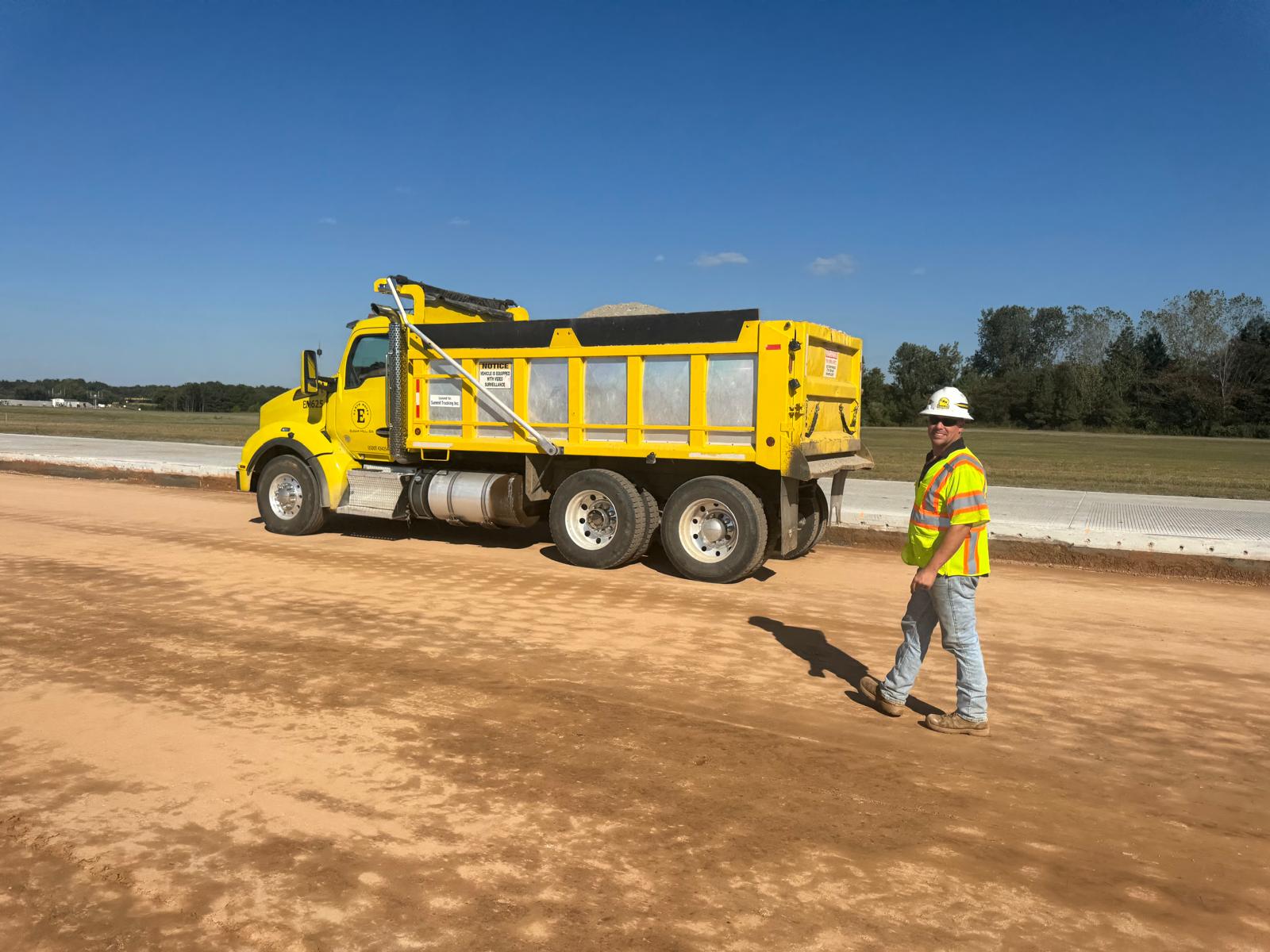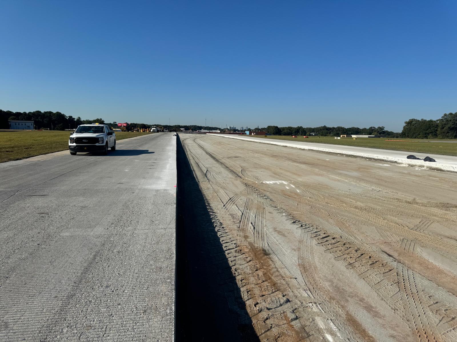 Proof Rolling Observation and Performance: A second proof-roll was performed on Section 1A between STA 1020+00 to 1028+00 on Runway 3R-21L using a fully loaded tandem axle truck. This section had previously been treated with lime, mixed into the soil to a depth of approximately 10 inches. Multiple passes were made across the subgrade. During the proof roll, some yielding and deflection were observed in approximately 18 feet of the center portion of Section 1A, where movement was noted, indicating that the subgrade soils in this area still showed poor stability.