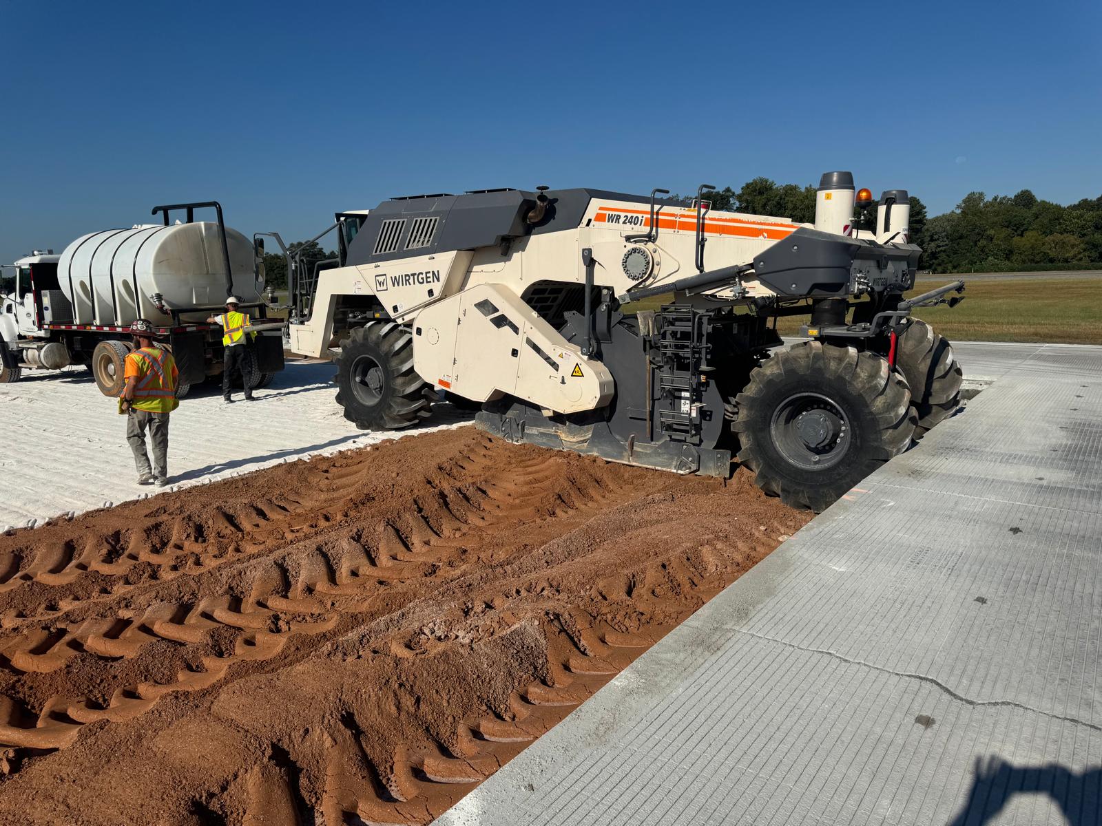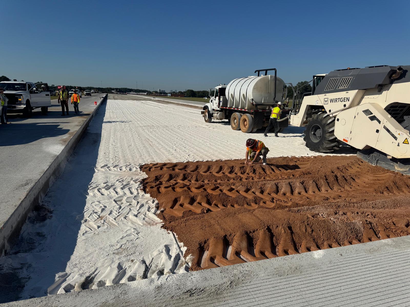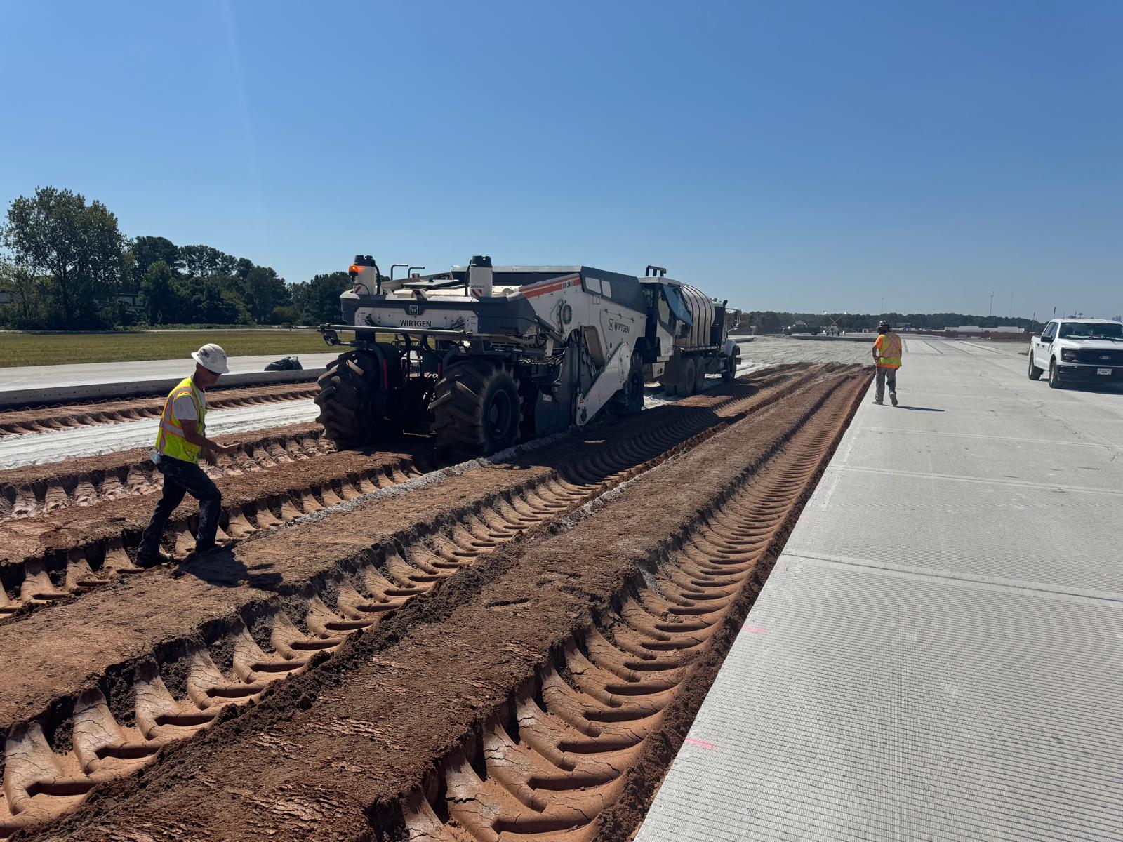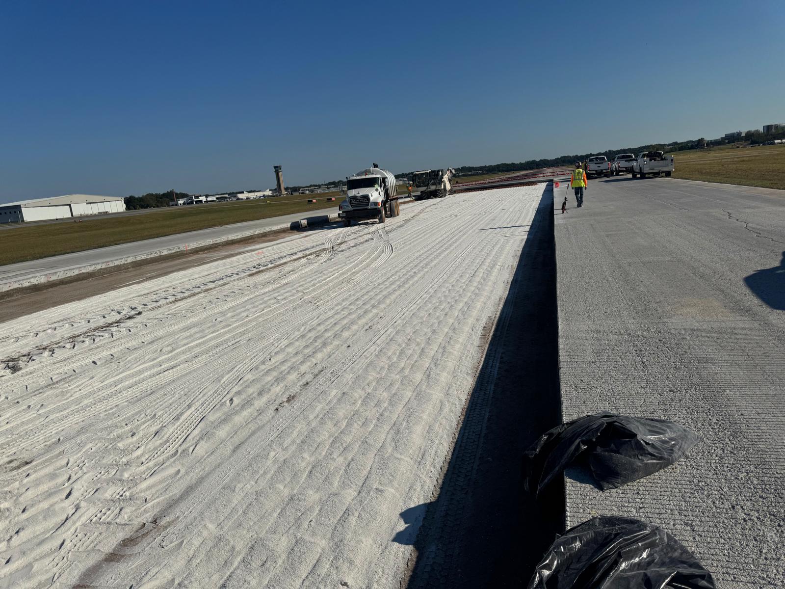 Proof Rolling Observation and Performance: A second proof-roll was performed on Section 1A between STA 1020+00 to 1028+00 on Runway 3R-21L using a fully loaded tandem axle truck. This section had previously been treated with lime, mixed into the soil to a depth of approximately 10 inches. Multiple passes were made across the subgrade. During the proof roll, some yielding and deflection were observed in approximately 18 feet of the center portion of Section 1A, where movement was noted, indicating that the subgrade soils in this area still showed poor stability.