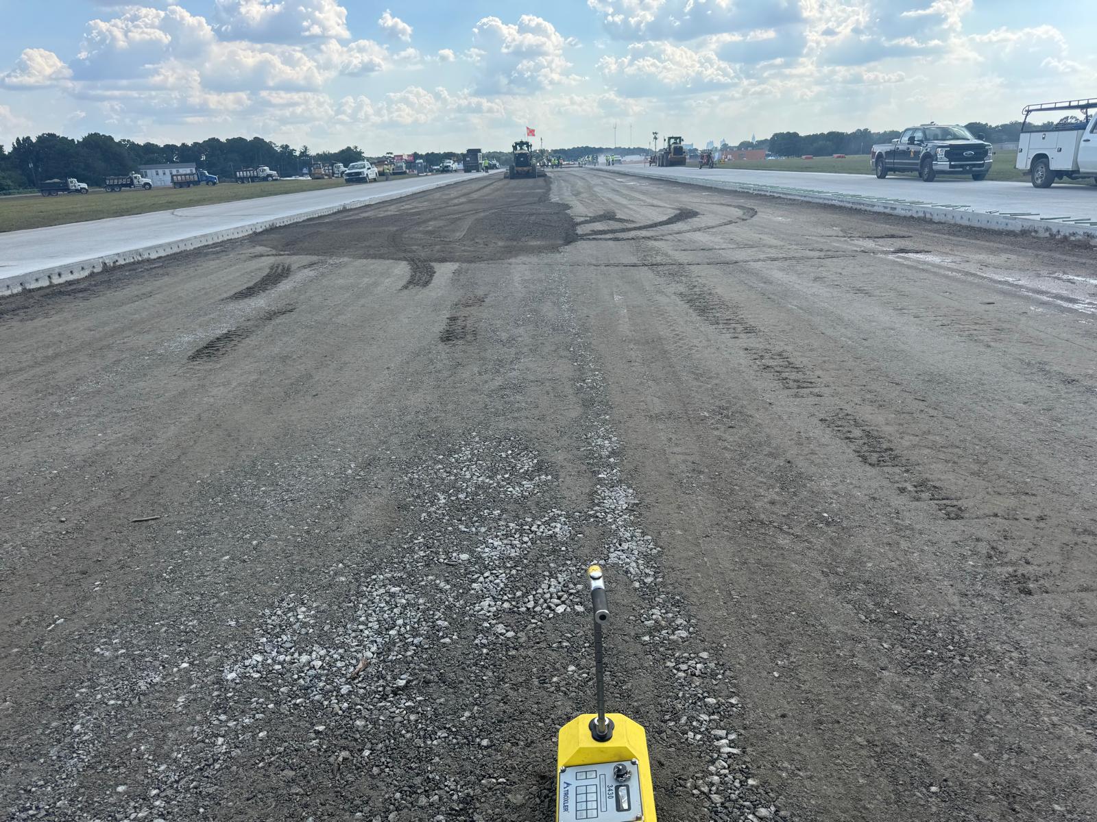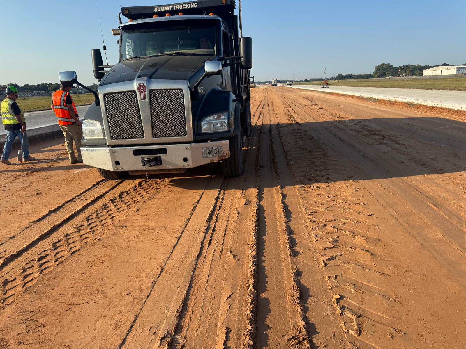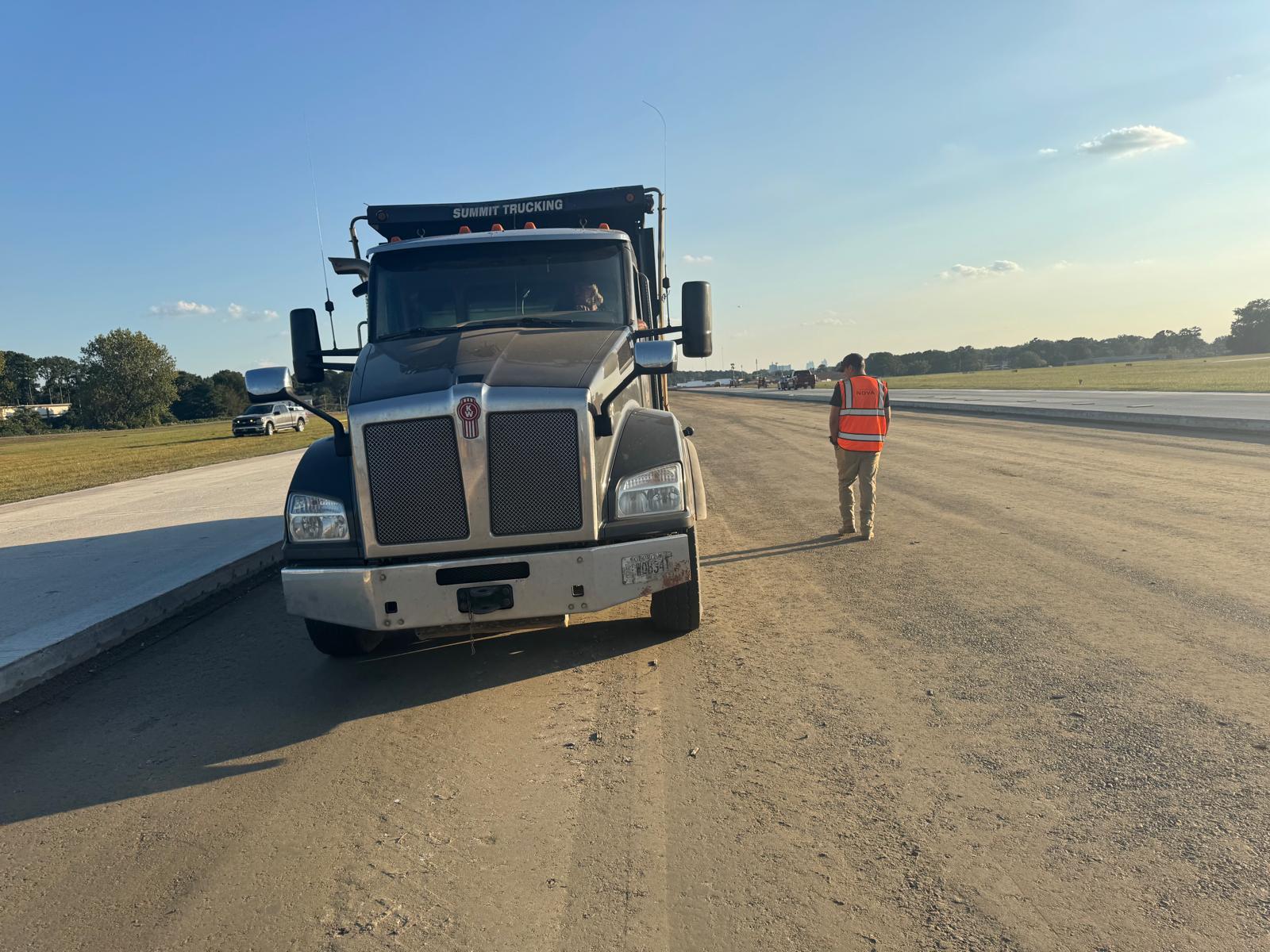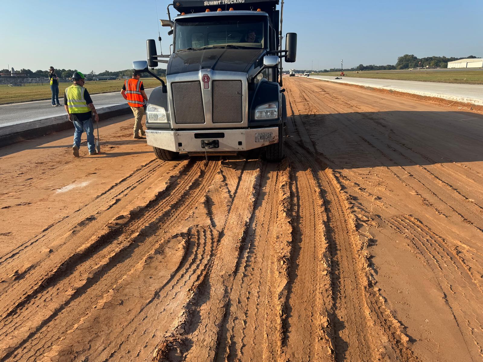 Proof Rolling Observation and Performance: A fourth proof-roll was performed on the GAB in Section 1A between STA 1020+00 and 1028+00 on Runway 3R-21L using a fully loaded tandem axle truck. Multiple passes were performed across the subgrade. No severe yielding or deflection was observed during this proof-roll, and the section was considered to be stable.