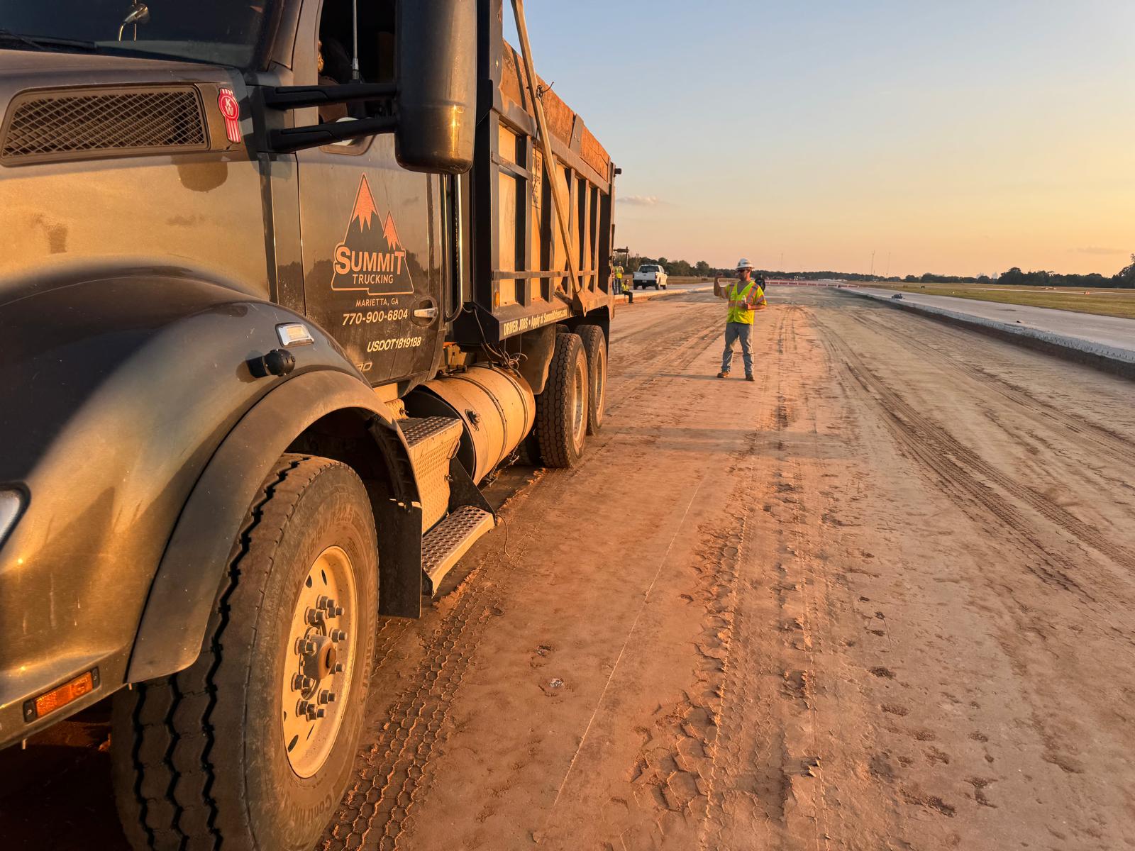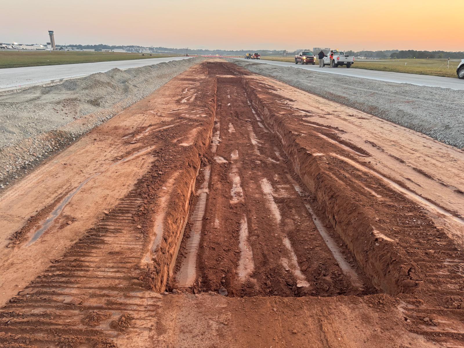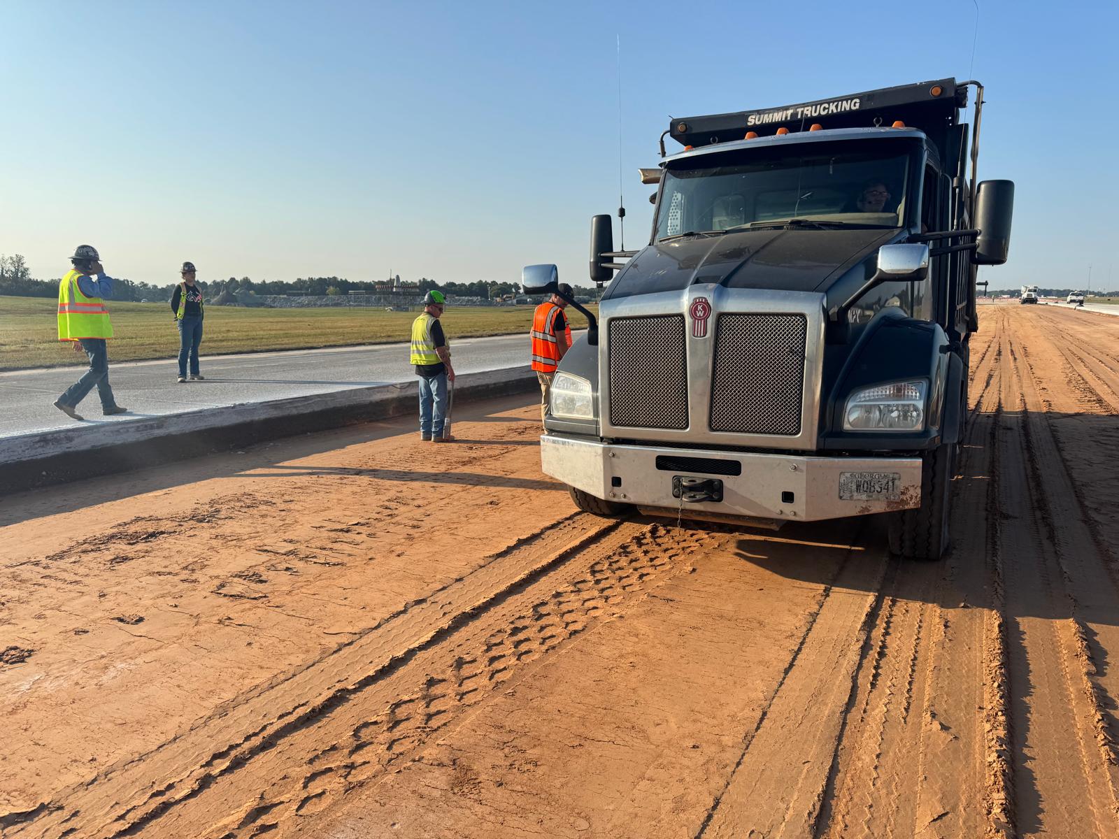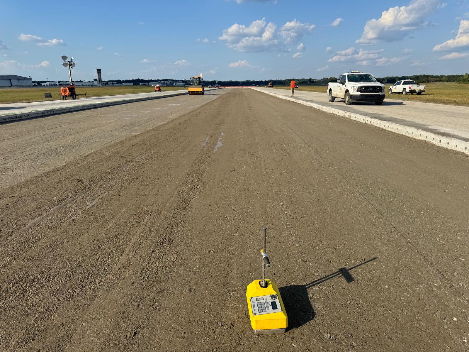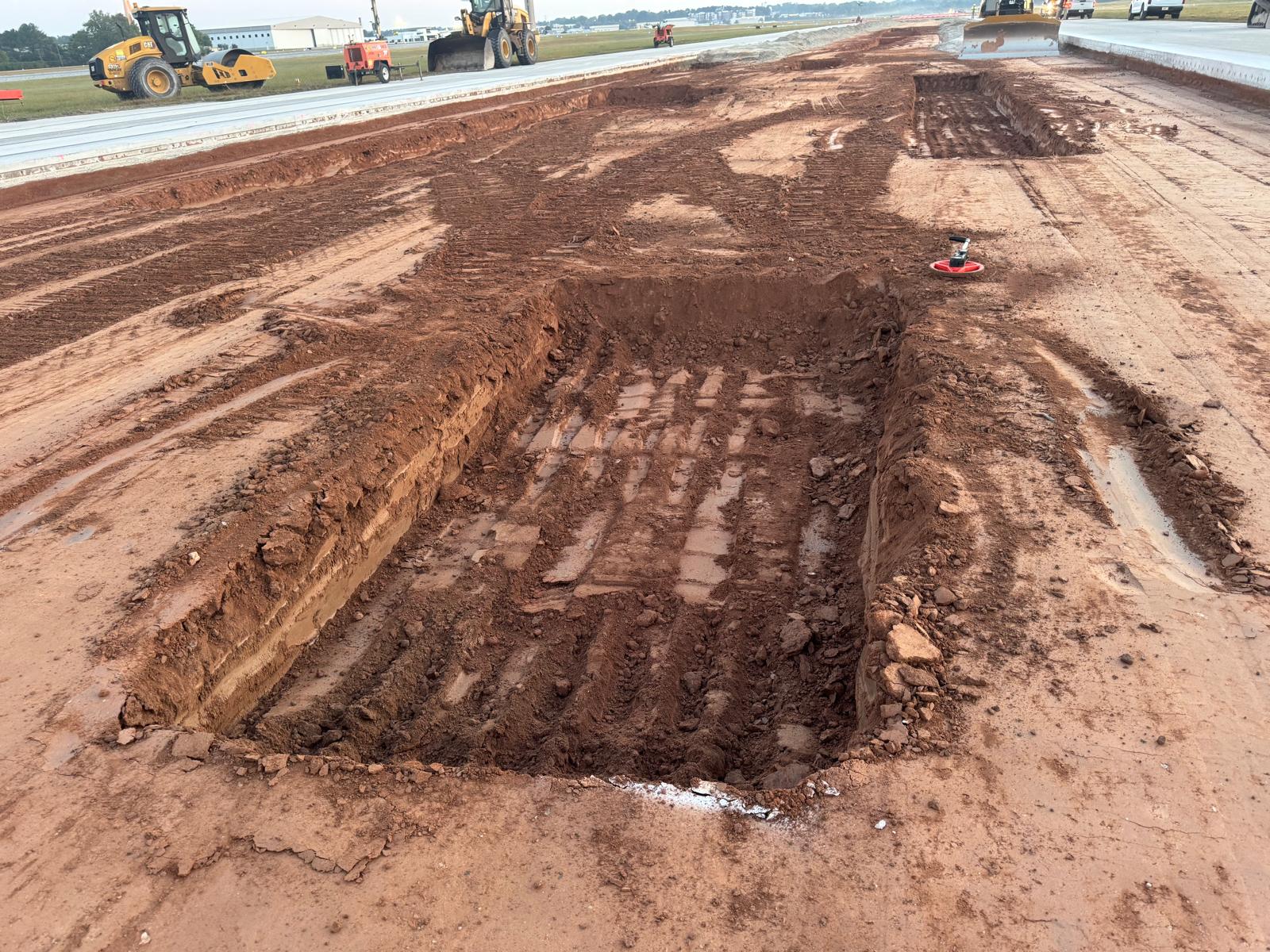 Proof Rolling Observation and Performance: A fourth proof-roll was performed on the GAB in Section 1A between STA 1020+00 and 1028+00 on Runway 3R-21L using a fully loaded tandem axle truck. Multiple passes were performed across the subgrade. No severe yielding or deflection was observed during this proof-roll, and the section was considered to be stable.