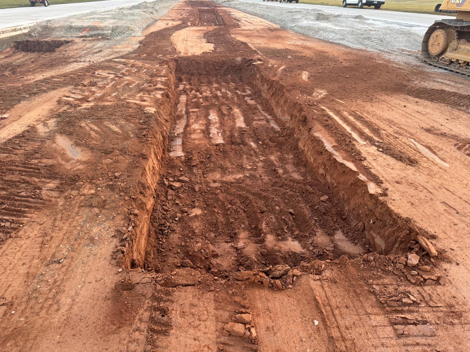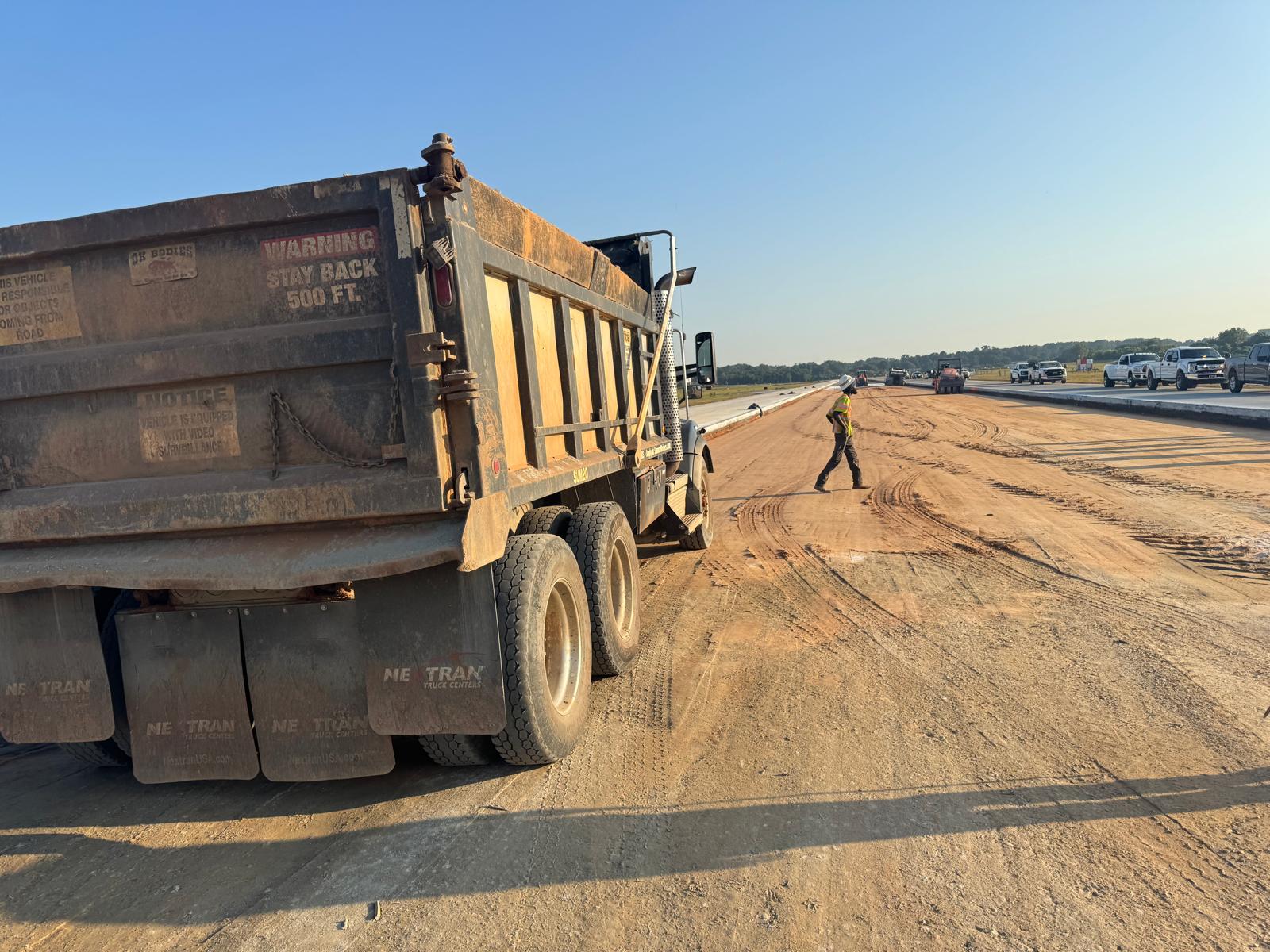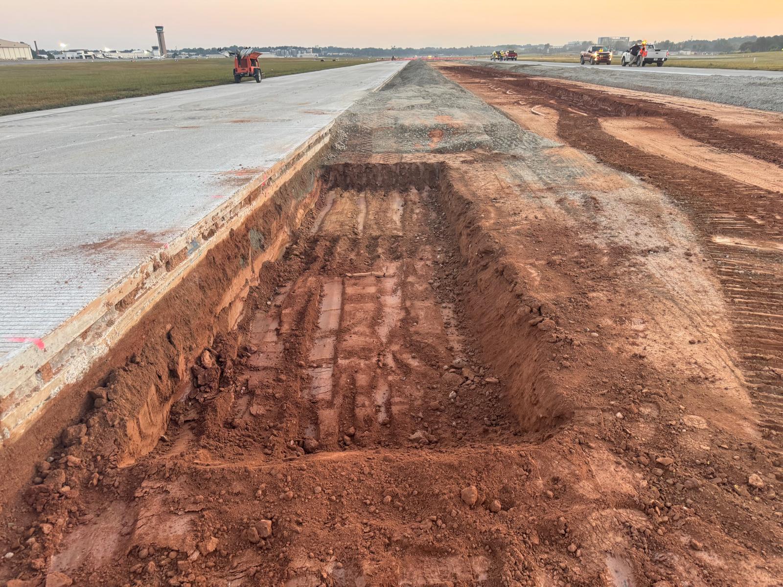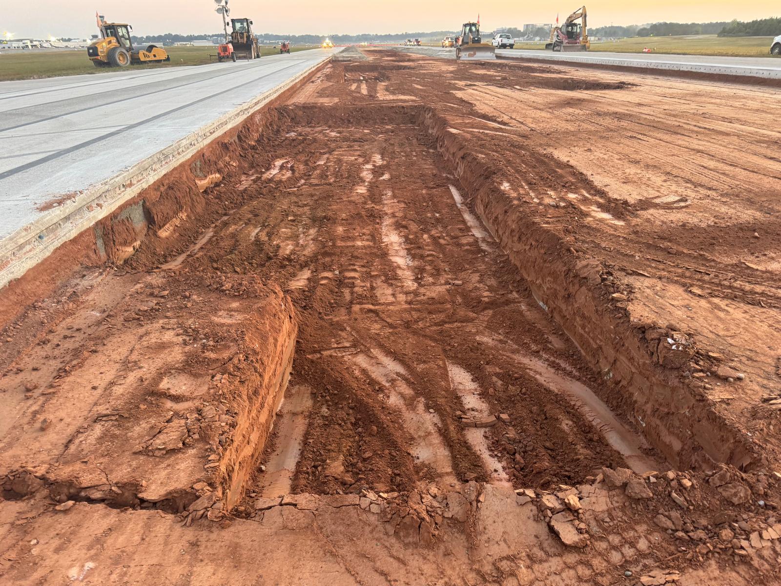 Proof Rolling Observation and Performance: A fourth proof-roll was performed on the GAB in Section 1A between STA 1020+00 and 1028+00 on Runway 3R-21L using a fully loaded tandem axle truck. Multiple passes were performed across the subgrade. No severe yielding or deflection was observed during this proof-roll, and the section was considered to be stable.