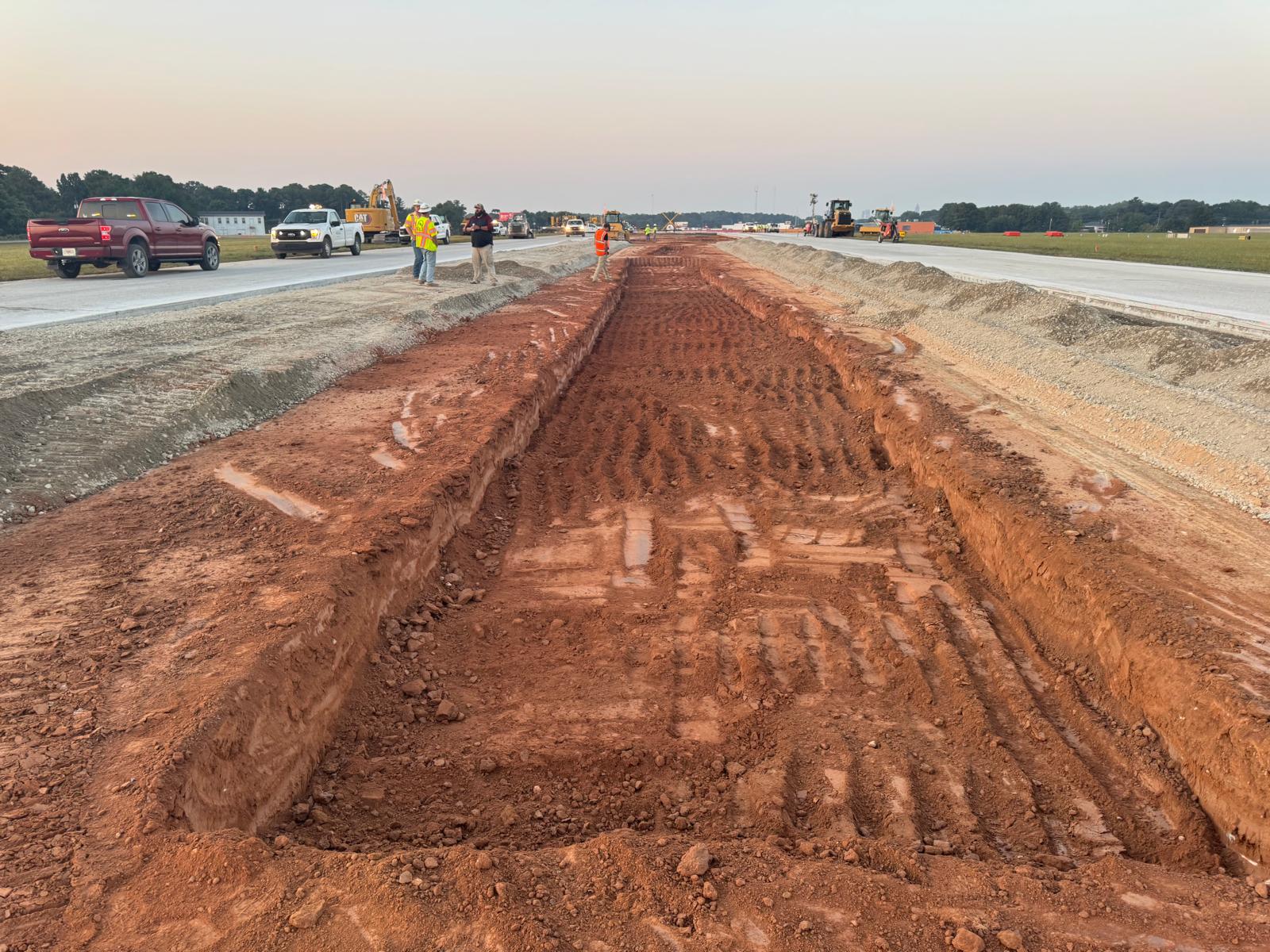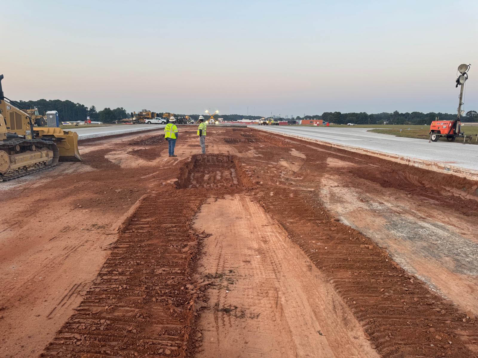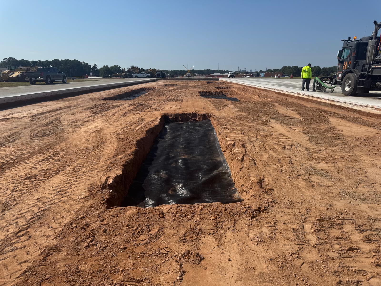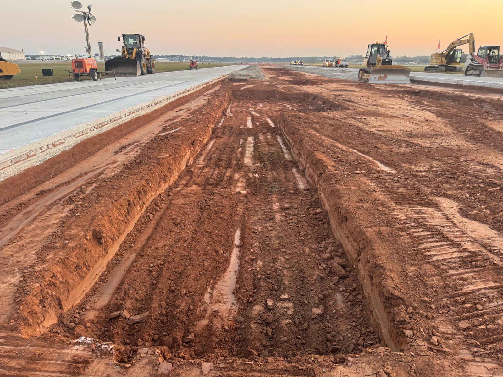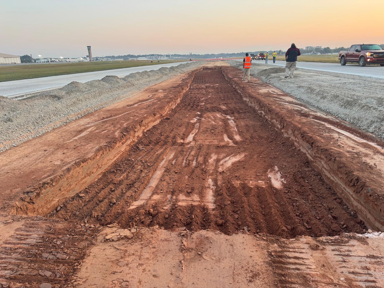 Proof Rolling Observation and Performance: A fourth proof-roll was performed on the GAB in Section 1A between STA 1020+00 and 1028+00 on Runway 3R-21L using a fully loaded tandem axle truck. Multiple passes were performed across the subgrade. No severe yielding or deflection was observed during this proof-roll, and the section was considered to be stable.