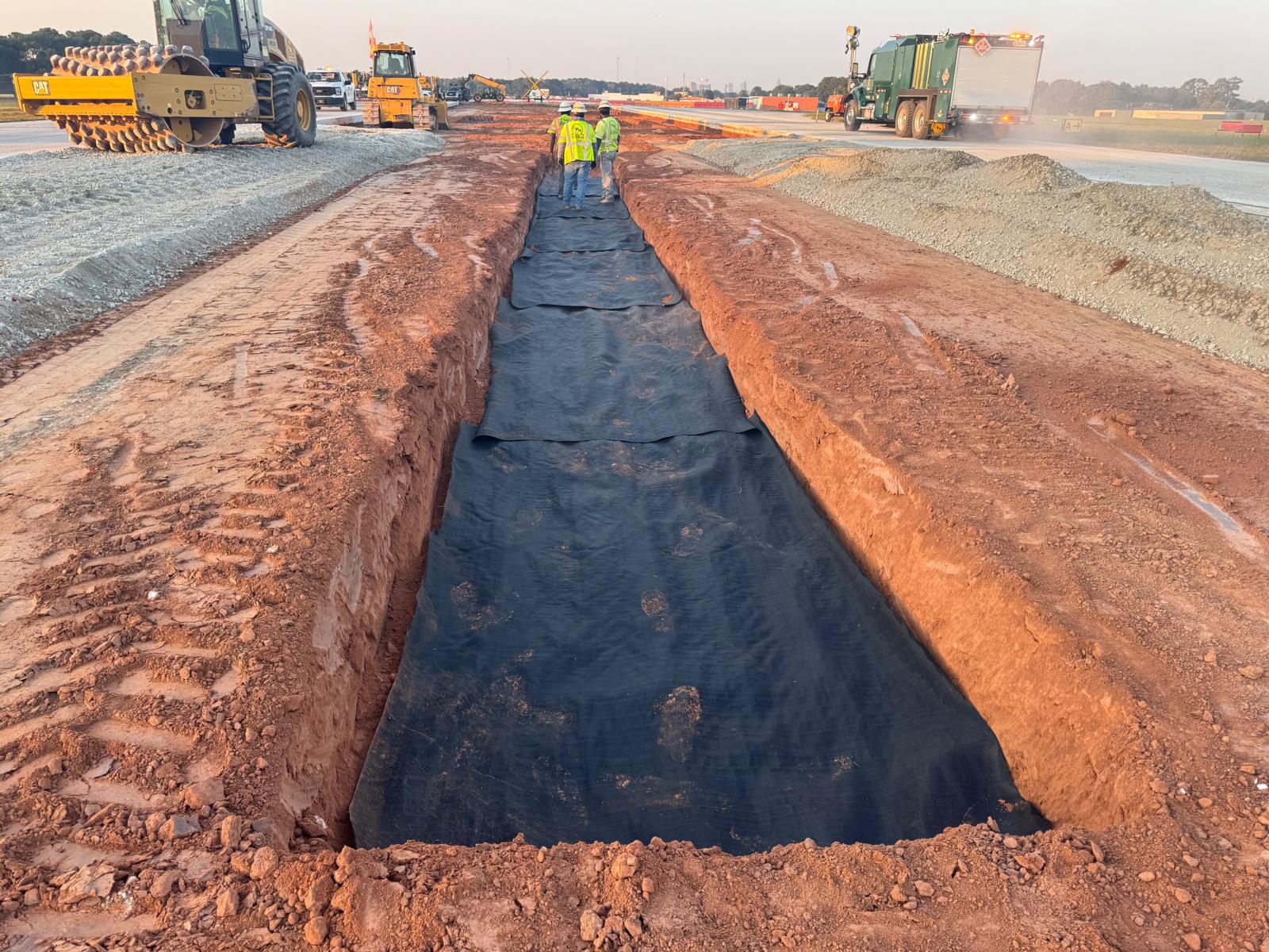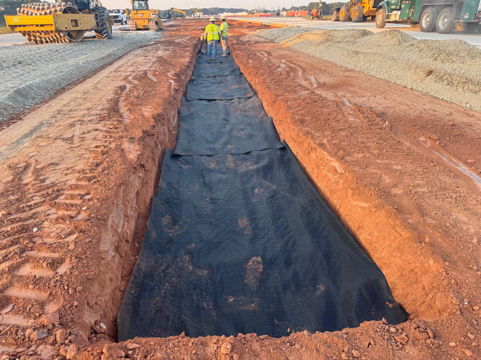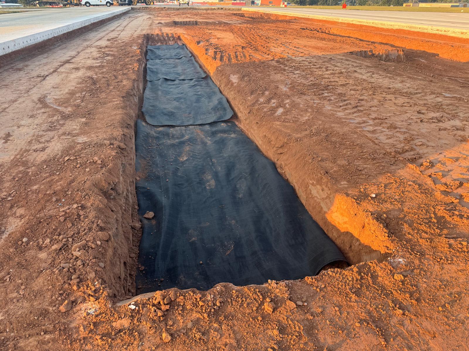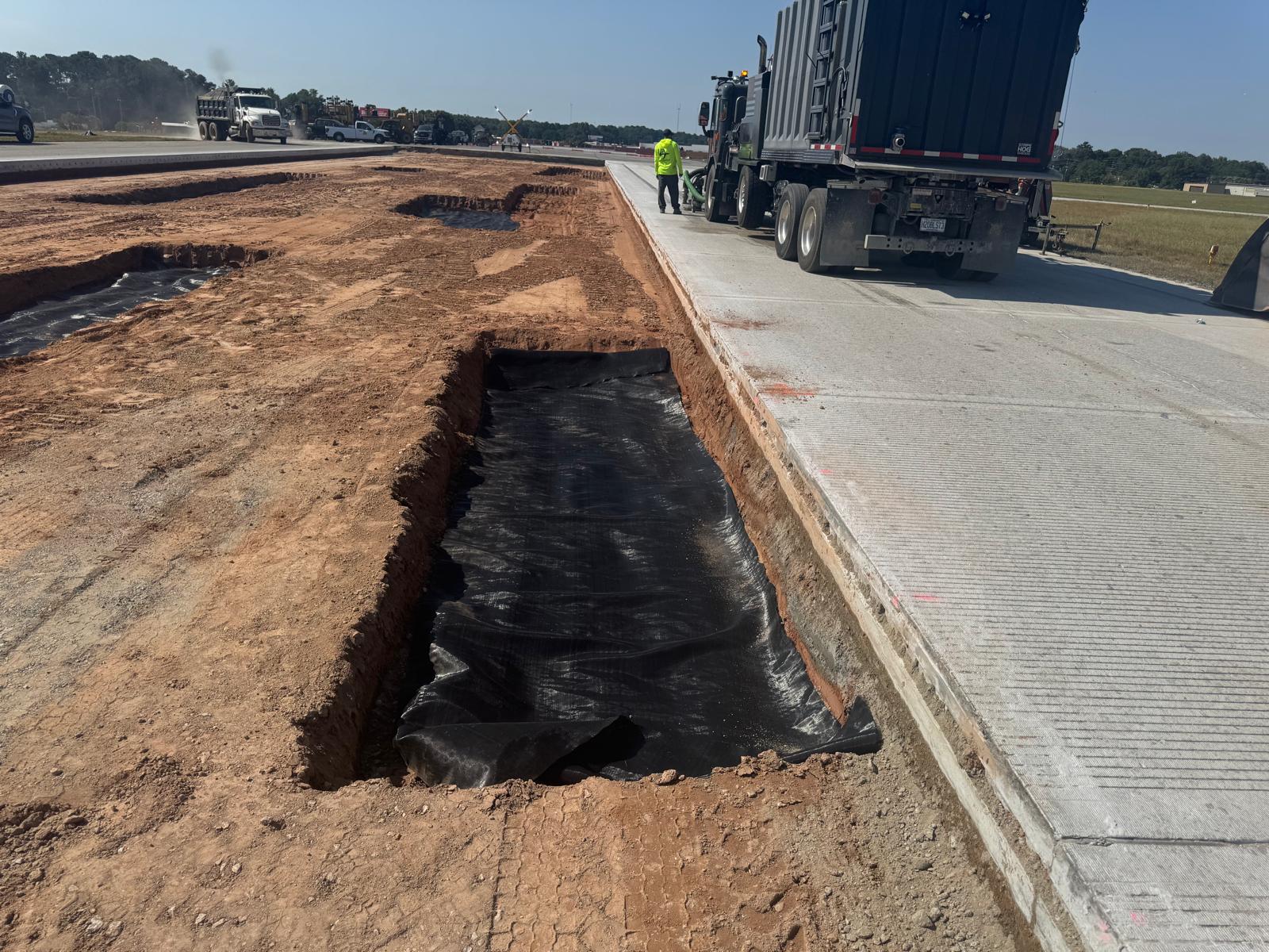 The contractor undercut 16 inches in the areas that failed the previous proof-roll and replaced the excavated material with graded aggregate base (GAB). In addition, GAB was placed throughout the entire Section 1A and compacted using both a drum roller and a pneumatic tire roller.