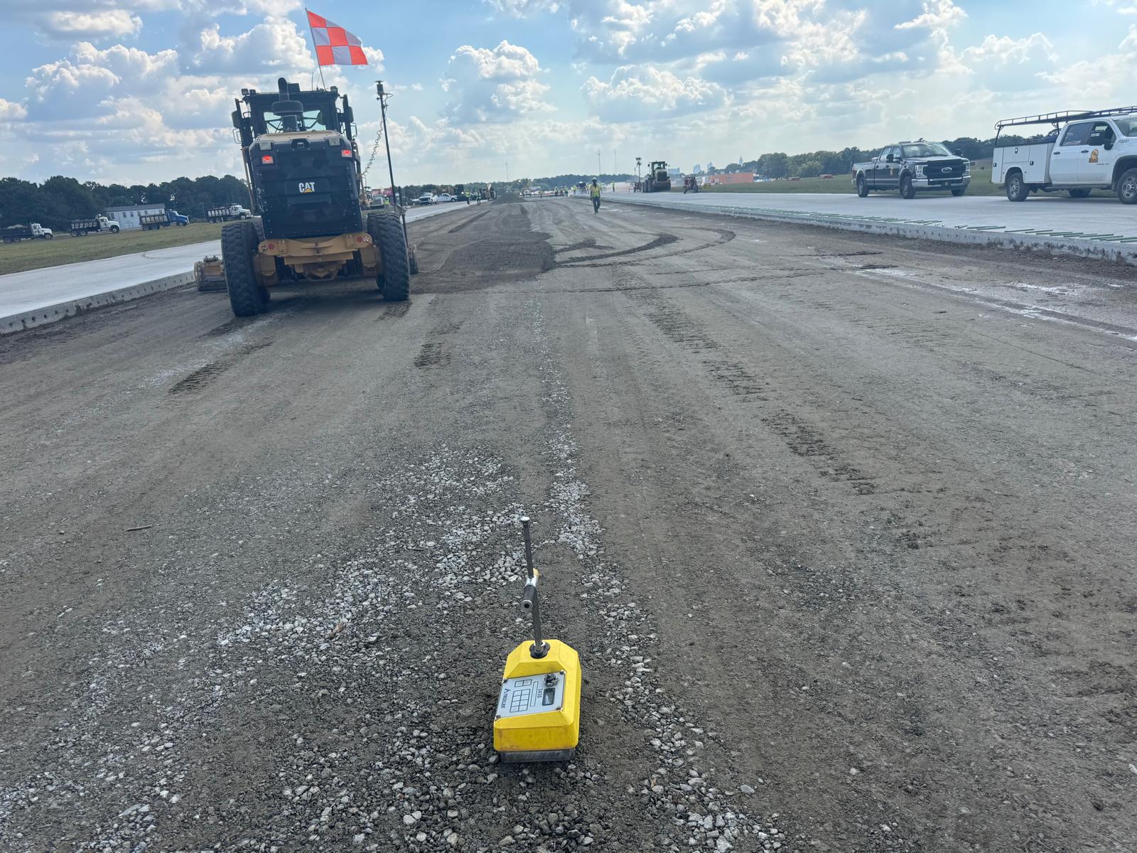 Compaction Testing: Compaction testing was performed on the newly placed GAB in Phase 1A using a Troxler nuclear density gauge, supplemented by general probing with a 3/8″ diameter probe rod. The density test results indicated that most of the compacted material did not meet the project requirement of achieving a minimum of 100% of the maximum dry density, in accordance with ASTM D1557 (Modified Proctor).