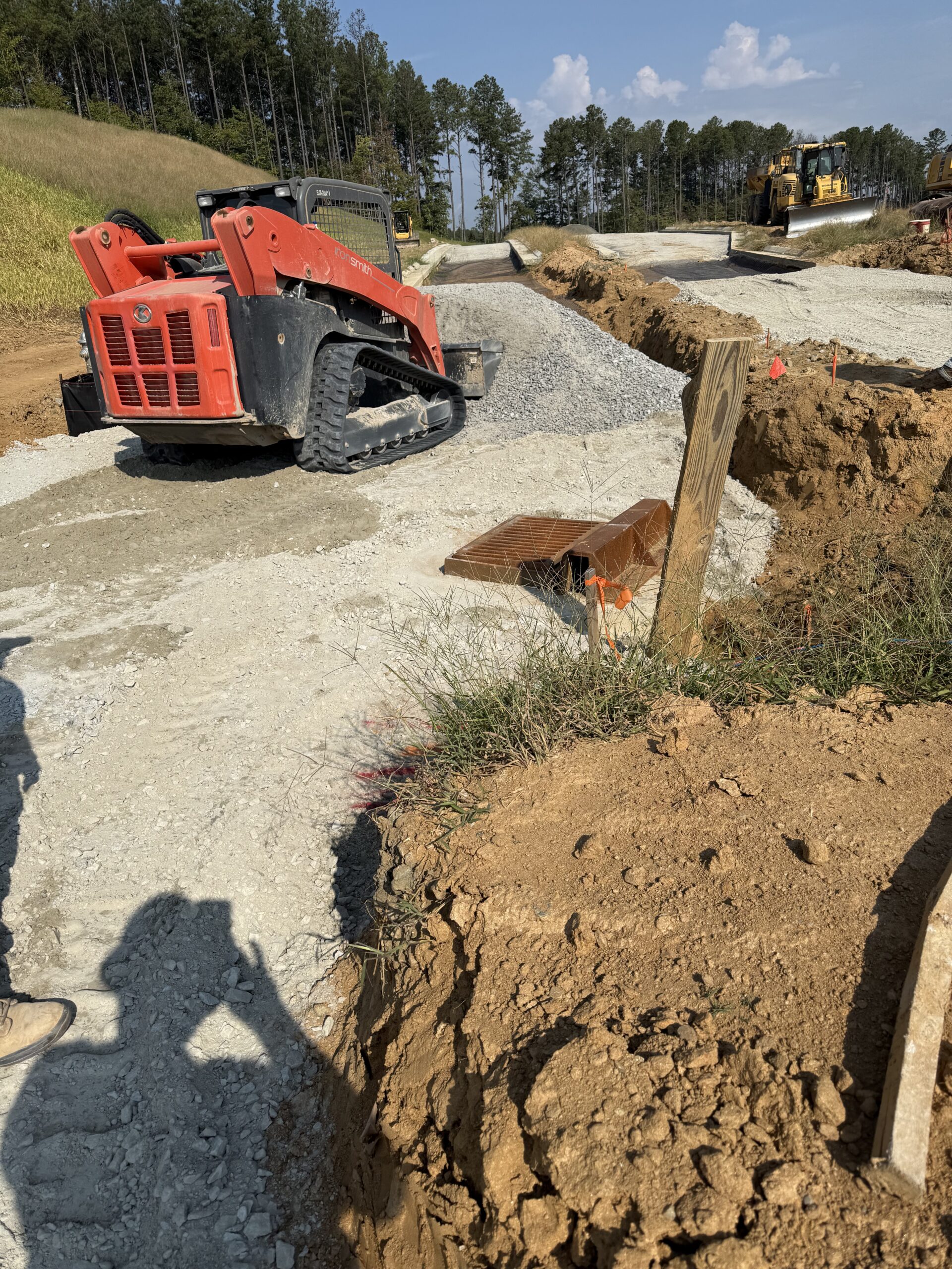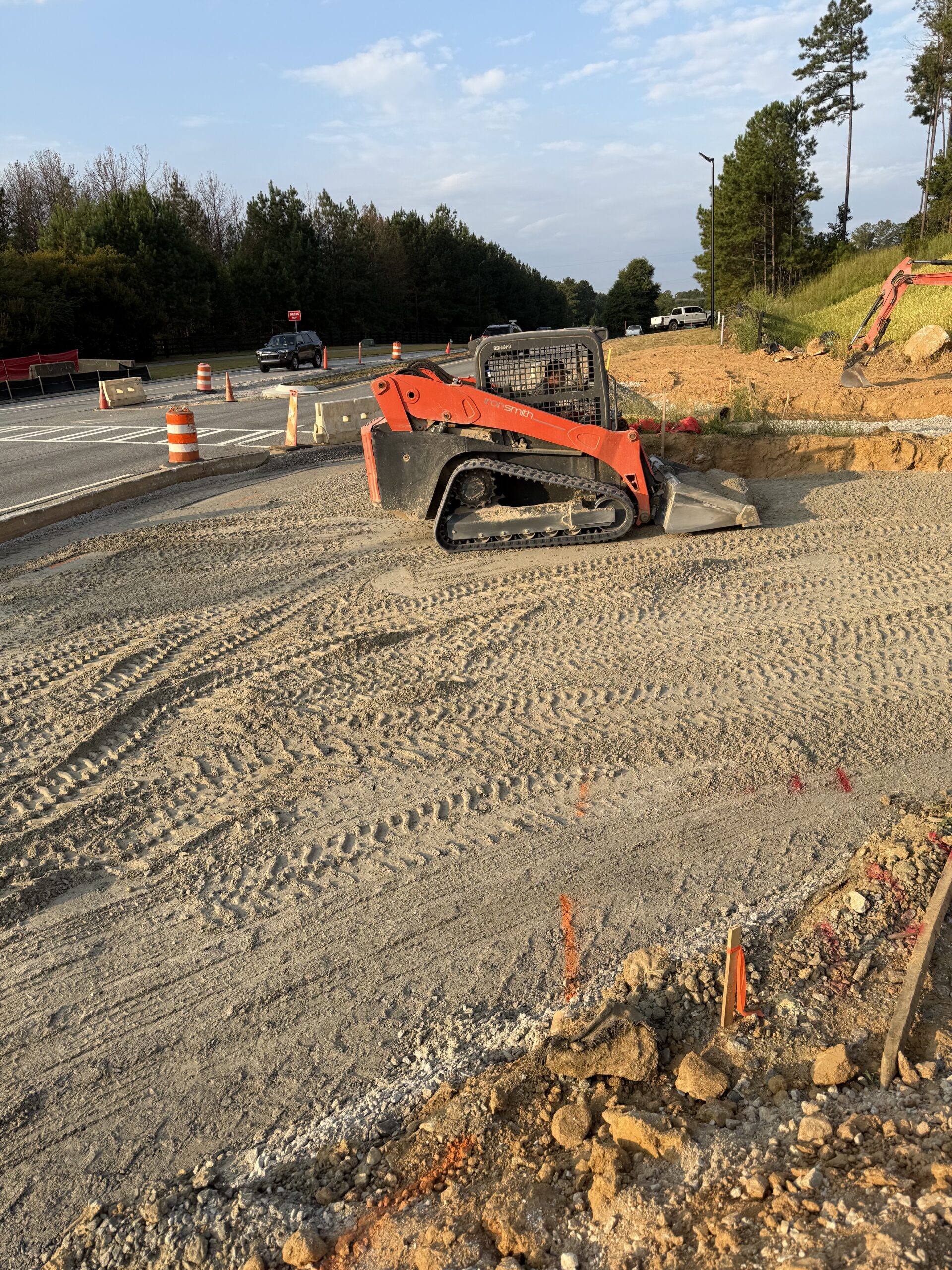 Remediation work continued at the entrance/exit and deceleration lane adjacent to the Naturewalk amenities on Seven Hills Boulevard. Between approximately 7:30 AM and 11:00 AM, a total of four (4) loads of Graded Aggregate Base (GAB) were delivered to the site via tandem dump truck. Material placement was performed using a Kubota skid steer.