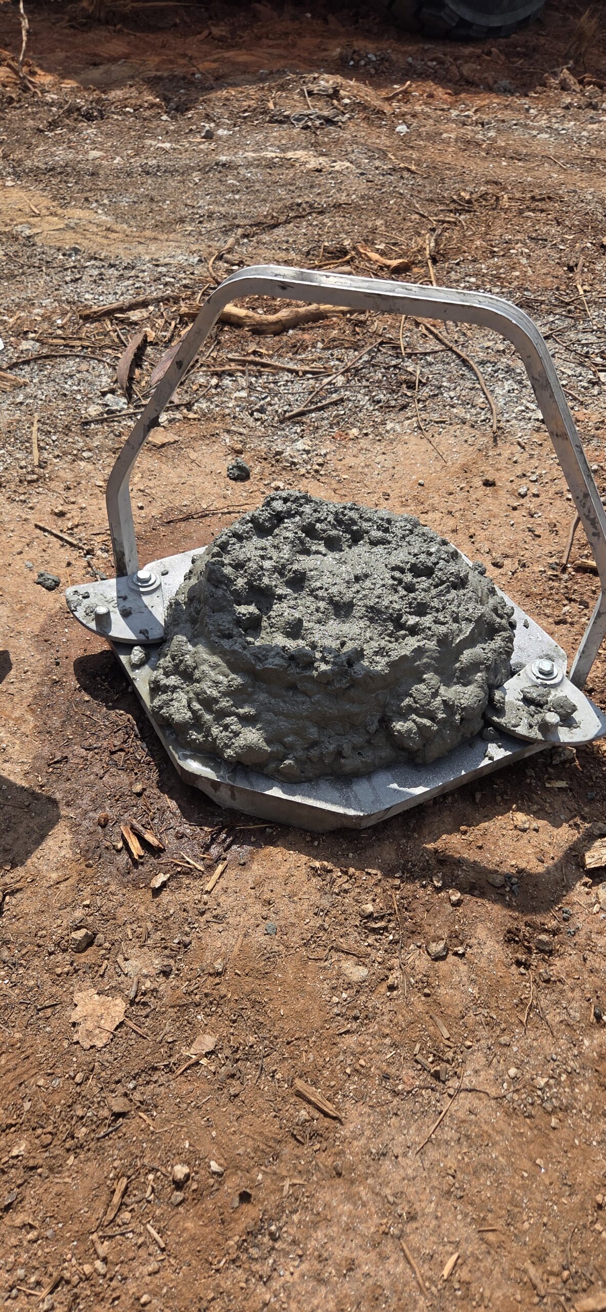 observation/testing of the placement of concrete. Concrete testing was conducted from the middle of the sample out of the first concrete truck on site. The concrete appeared to have a high moisture content. Slump test was recorded at 8.5in slump (as shown in picture) due to this high moisture content. The contractor was informed of test results. 5 cylinders were made out of this sample and will be transported into the lab once they have cured.