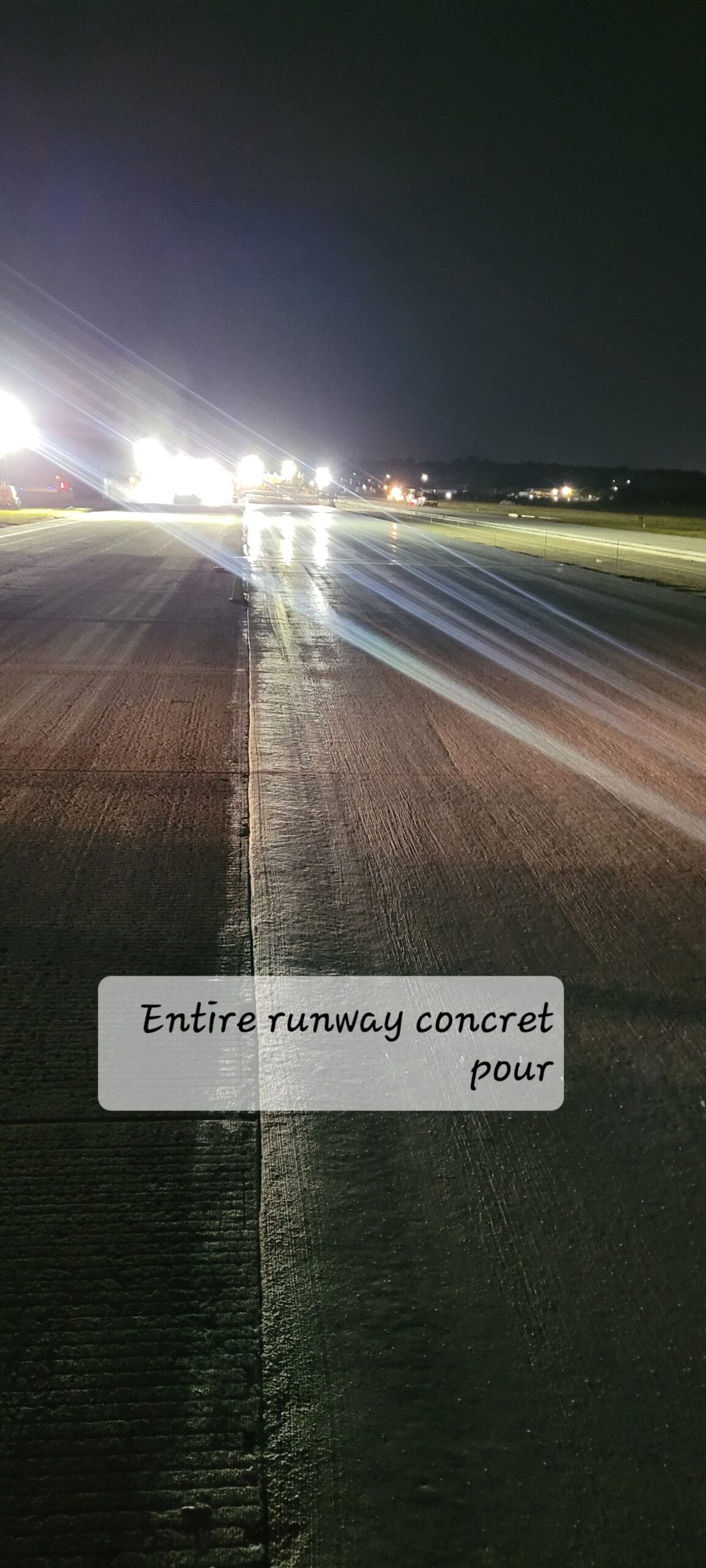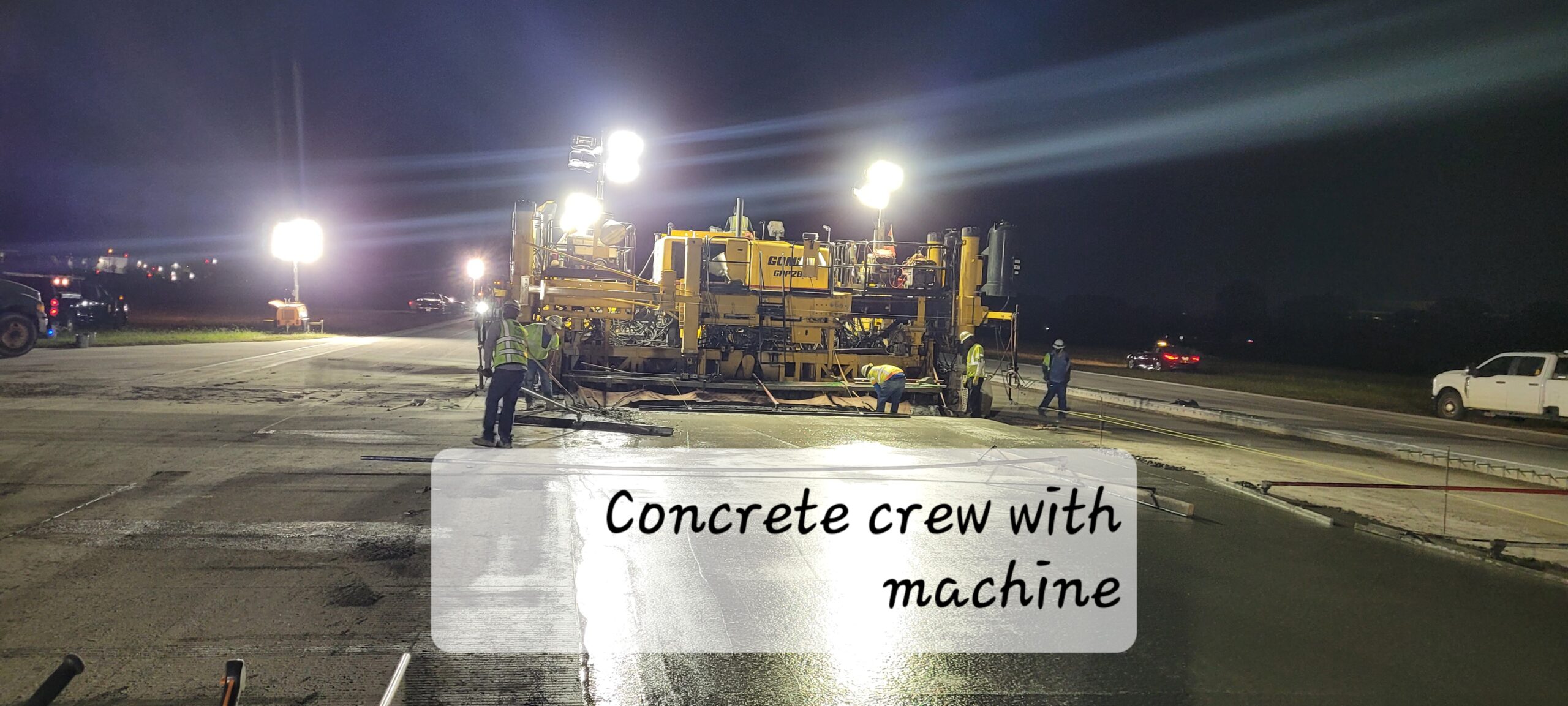 During the night concrete placement of 3R-21L Runway was performed and a total of 1130 yards of concrete was placed.