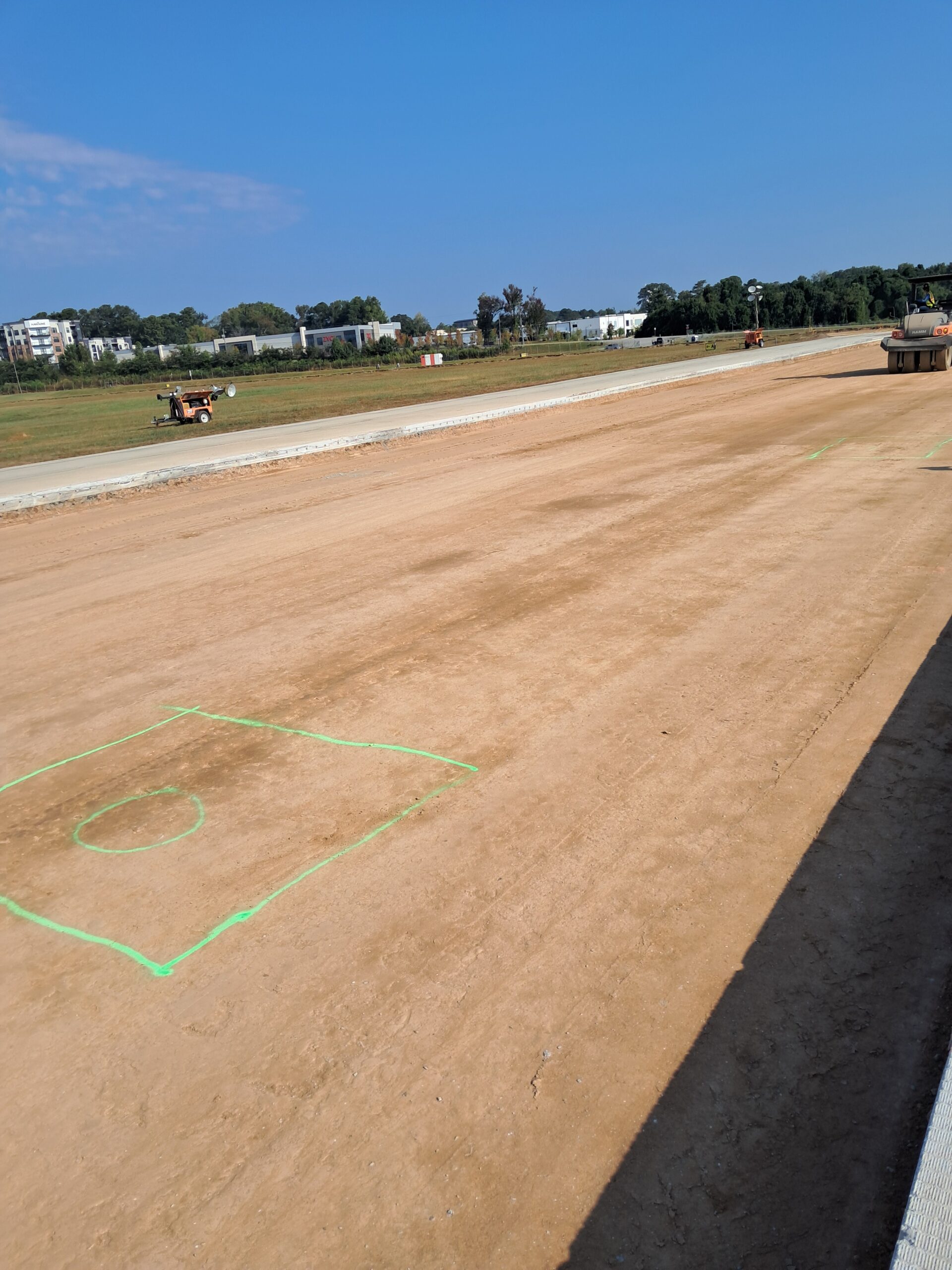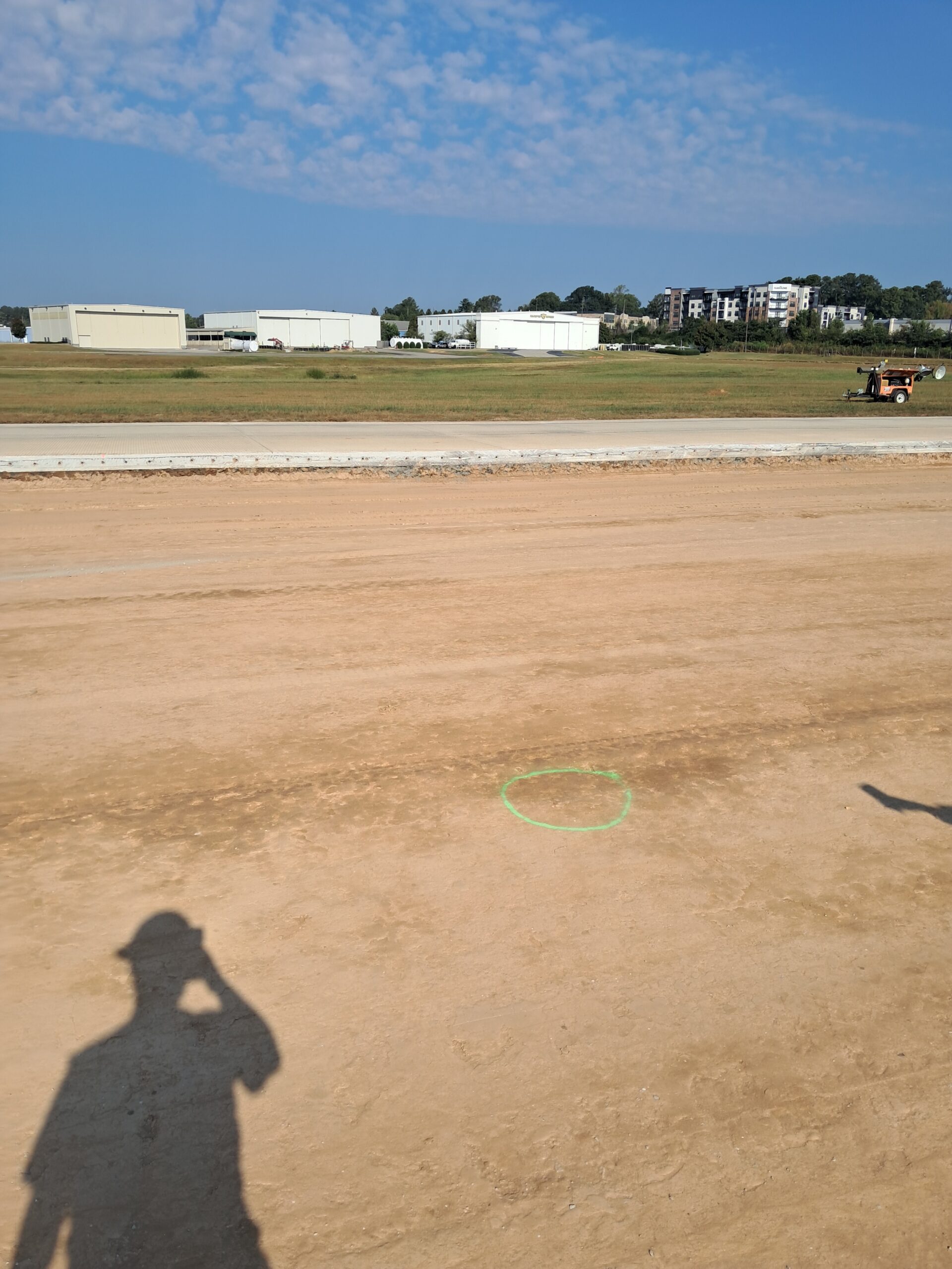 Our ASEC representative arrived on site and waited for the NOVA and Atlanta Paving inspectors to arrive to observe proof-rolling of the soil cement for the runway. At 9:38am the other inspectors arrived, and the proof-roll commenced. Some pumping/rutting was observed and was marked. Three (3) areas were marked in green and were proof-rolled again. Tony with CW Mattews followed behind to see what the concerns were. Tony told me that he would be undercutting this section in order to remove soft/unstable soils. Both the Atlanta Paving and NOVA technician recommended adding water. Tony told me again that he would be undercutting this area regardless.