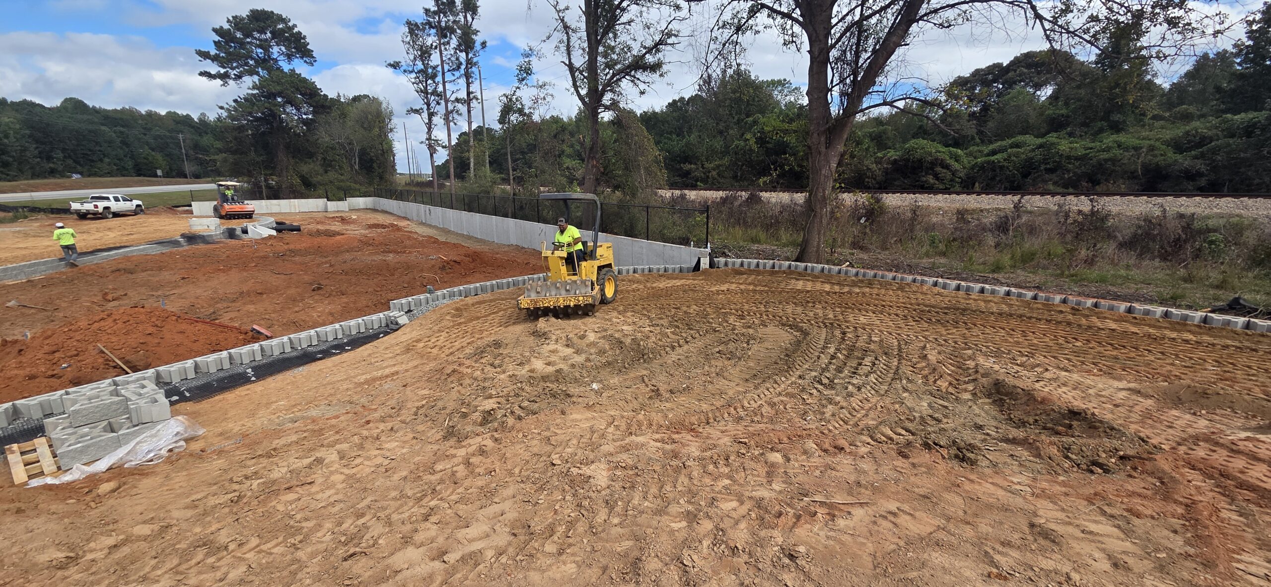 Density testing was performed along the retaining wall alignment. Test results indicated low compaction values, despite the soil being within its optimum moisture range. This suggests that the lifts were not being adequately compacted before additional layers were placed.