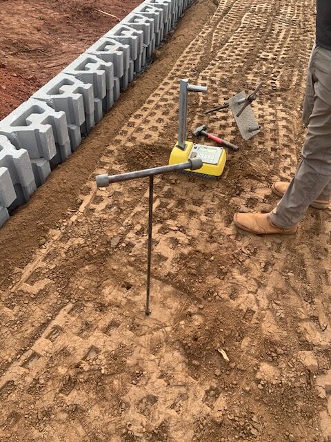 Our representative was on site to observe work activities and perform testing. The writer observed the onsite stockpile soils which were a very light weight material which required additional compacting effort.  It was recommended to continue using both compaction rollers due to the light, silty nature of the material which was below optimum moisture content.  Additional moisture added and scarification was recommended prior to compaction. Density tests and compacting efforts appeared to have better results today.
