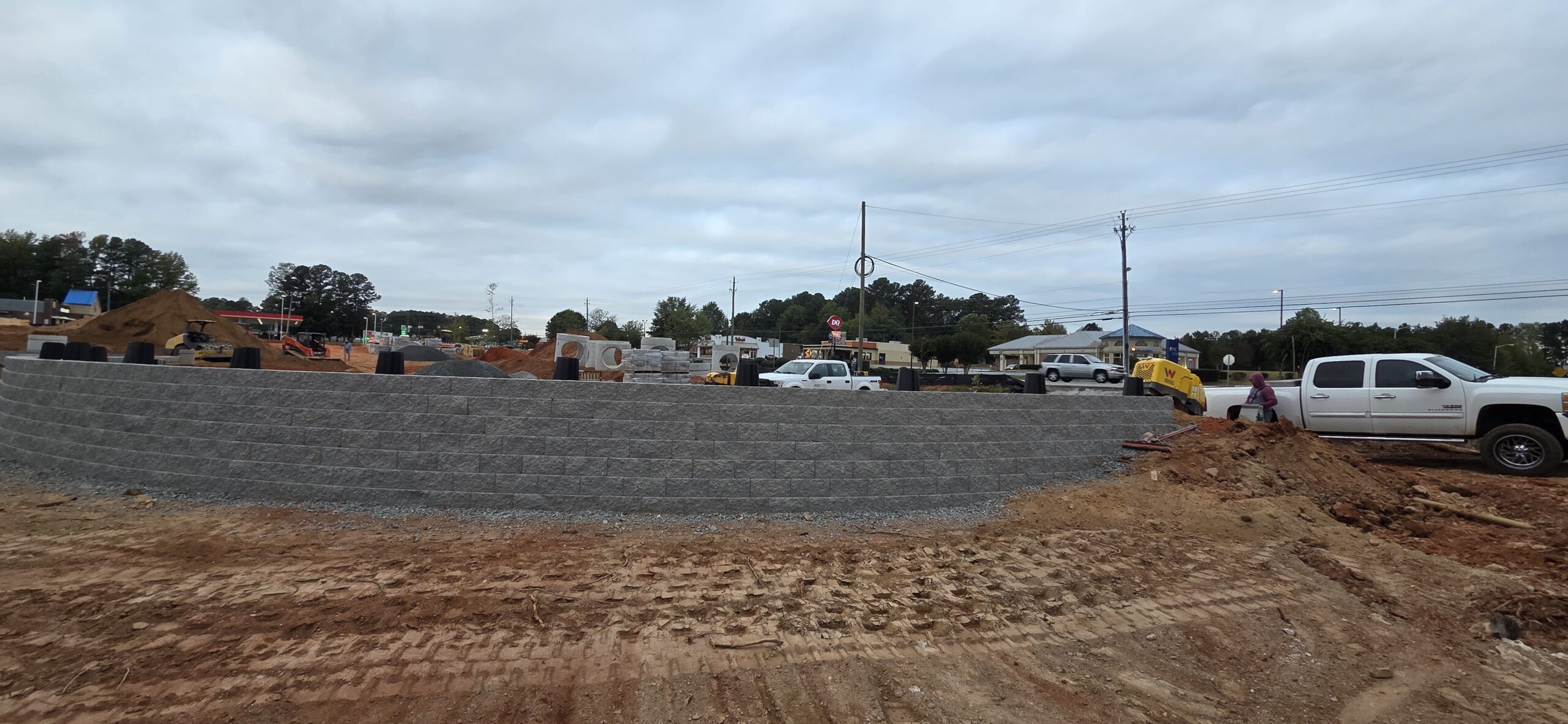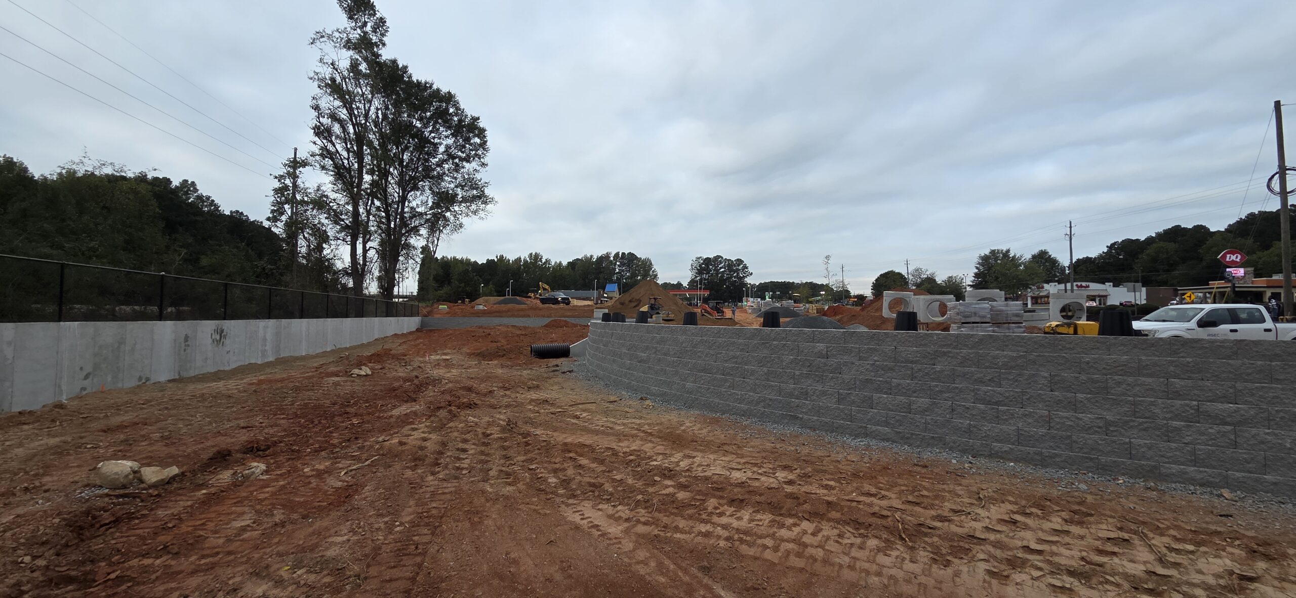 Our ASEC representative was on site for the observation/testing of the placement of fill/backfill. Density testing was performed along the retaining wall, and all test results were provided to the contractor. Backfill placement and compaction results were found to meet job specifications for compaction.