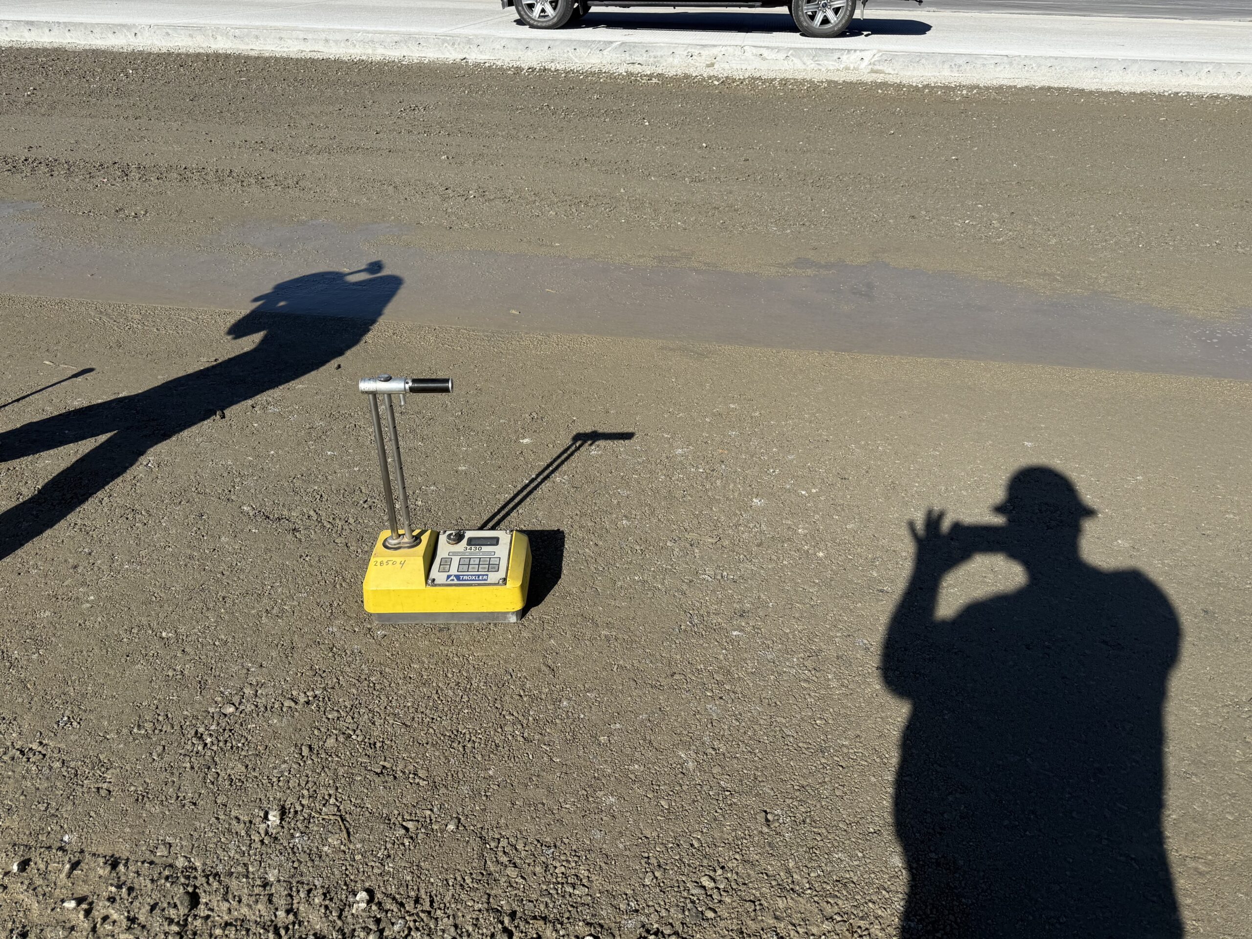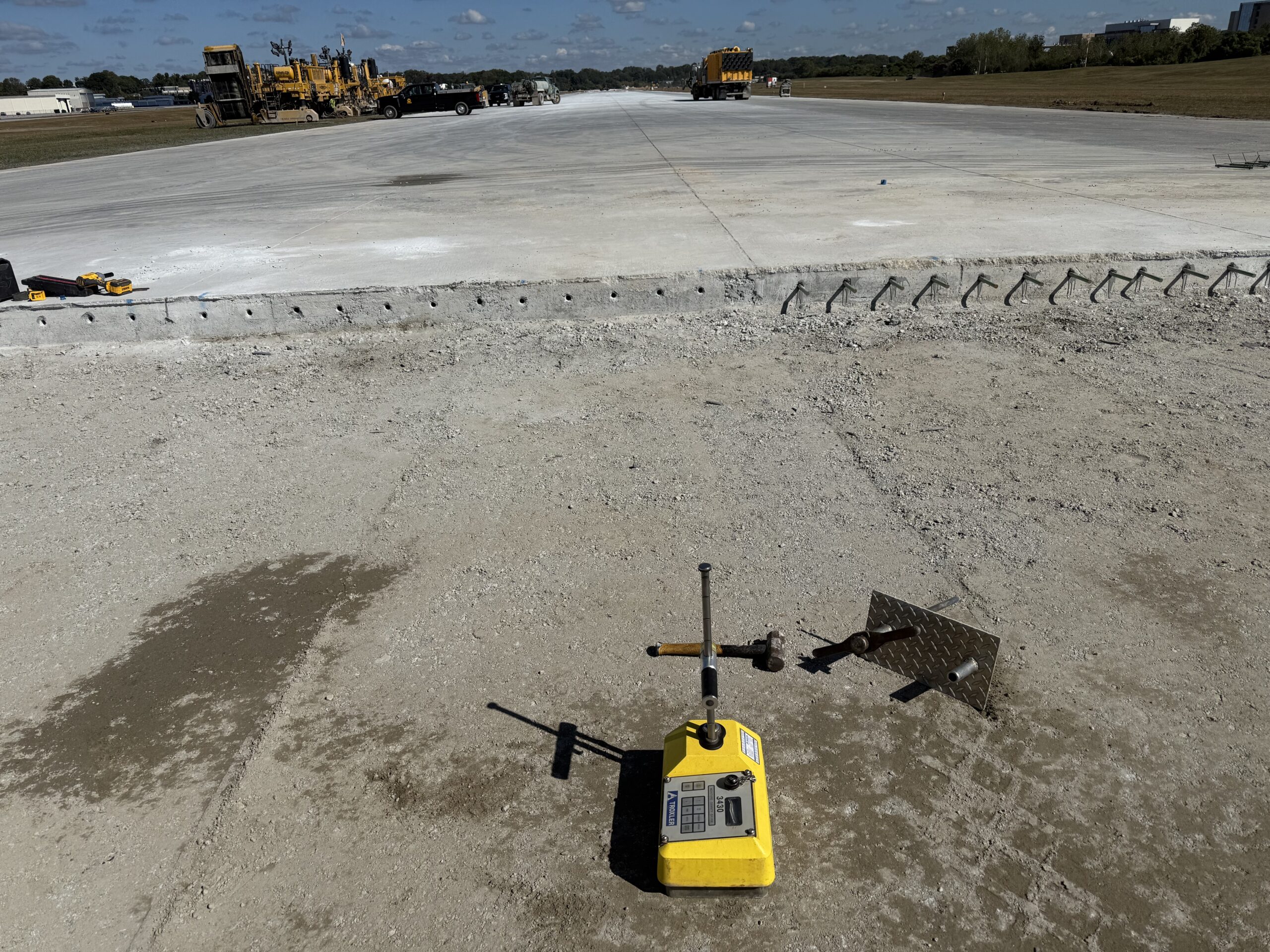 A request was made to perform density testing on on-site recycled concrete material that had been placed as part of the runway keel reconstruction project. The testing was performed to determine whether the material met the required compaction specifications.