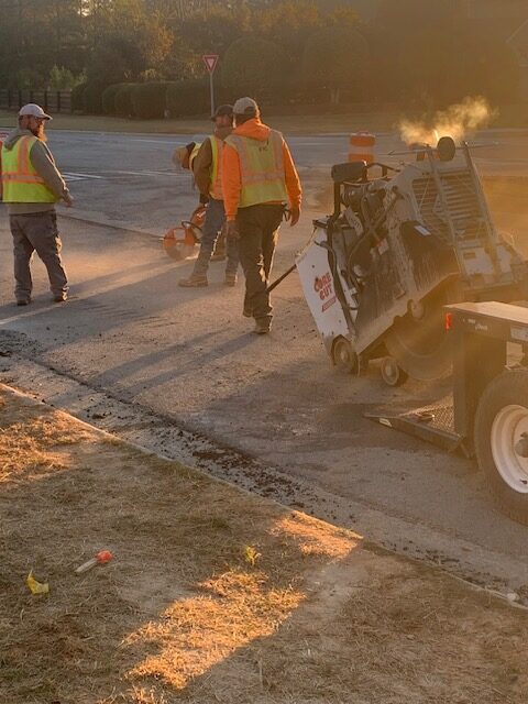 Saw cut and removal of existing asphalt at Seven Hills blvd,