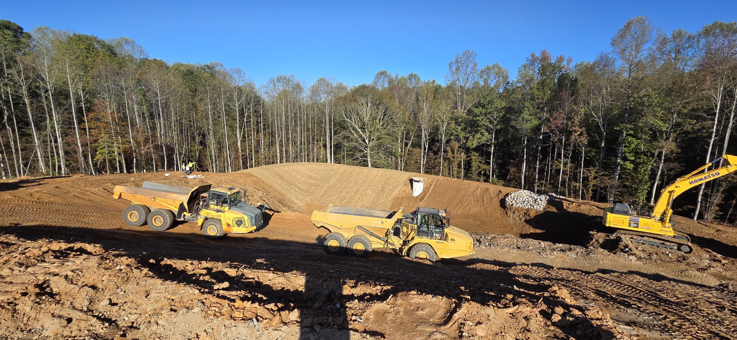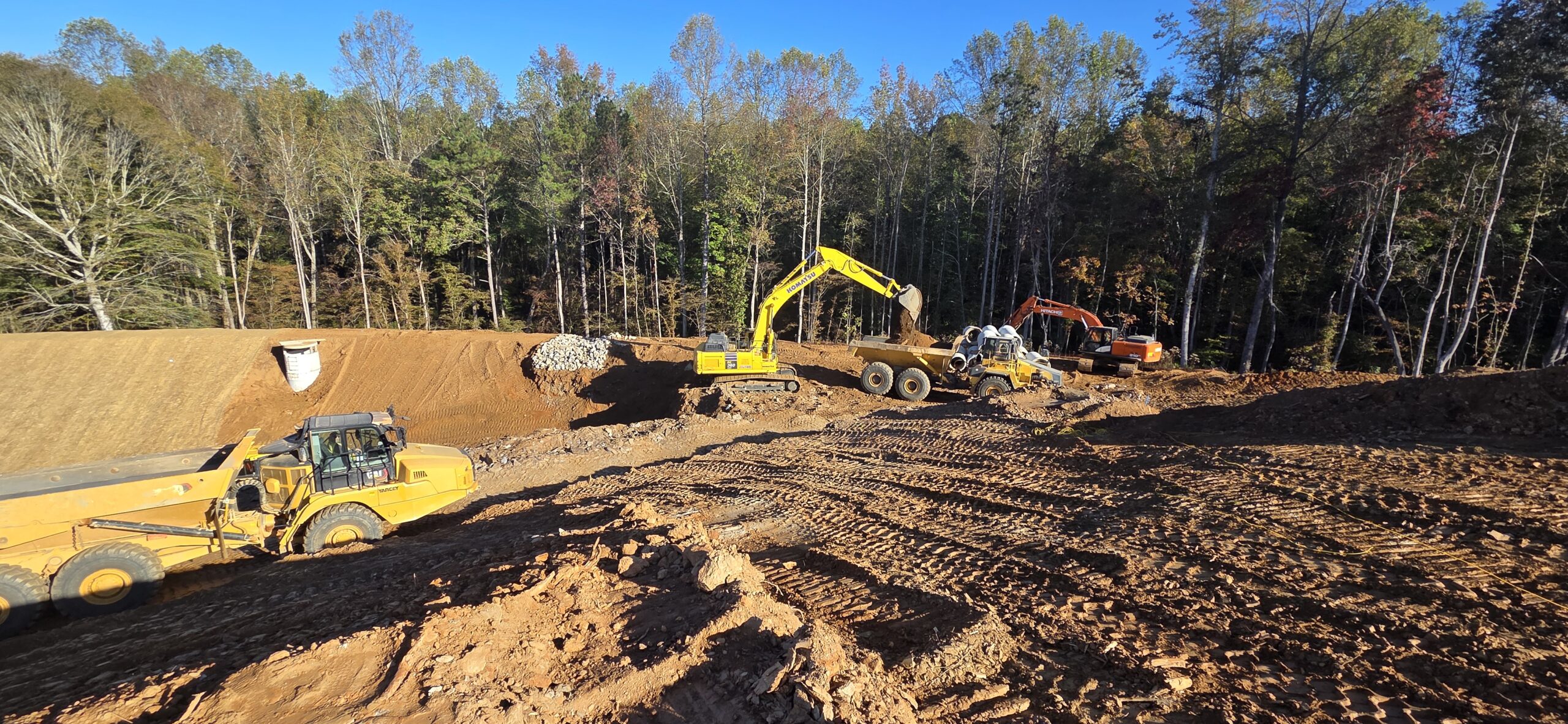 Our ASEC representative was on site to observe the contractor (NG Grading) for the observation/testing of the placement of fill/backfill. The contractor continued excavation of blasted rock material from northwest pond area and placing blasted rock fill onto Lots #22 through #25. The blasted rock material was installed in approximate 1-foot lifts and compacted with an 815 sheep-foot roller. It appears that the size of the rocks is breaking down as the sheep-foot makes multiple passes on the lifts. The fill material also appeared to be an approximate 50/50 mix of blasted rock and finer soil material. This procedure should reduce rock voids and allow an even spread of the soil-rock mixture. The contractor is attempting to finish the pond clean out to pass inspection for their 7-day letter. The inspection is set for some time today.