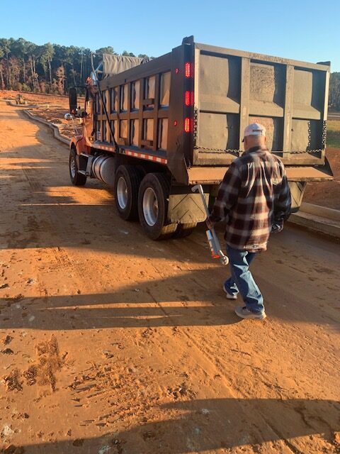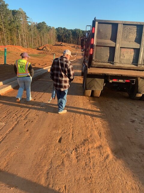 On the above date our representative was on site to observe proof-rolling of the roadway subgrades leading into phase 2 along with members from Baldwin Paving and the Paulding County officials. The subgrade soils were proof-rolled using a loaded tandem dump truck loaded with approximately 18 tons of base stone. The subgrade soils appeared stable under traffic with no apparent movement except one isolated area located at the north end of the roadway due to an electrical conduit crossing. It was recommended to undercut the area across the roadway by six feet wide by -6″ deep and replace with additional base stone material. The contractor began placing base stone over the approved areas. All areas observed appeared to be in compliance with site plans and specifications. Note: any approved areas not covered with base rock prior to a rain event must be reobserved prior to placing base stone.