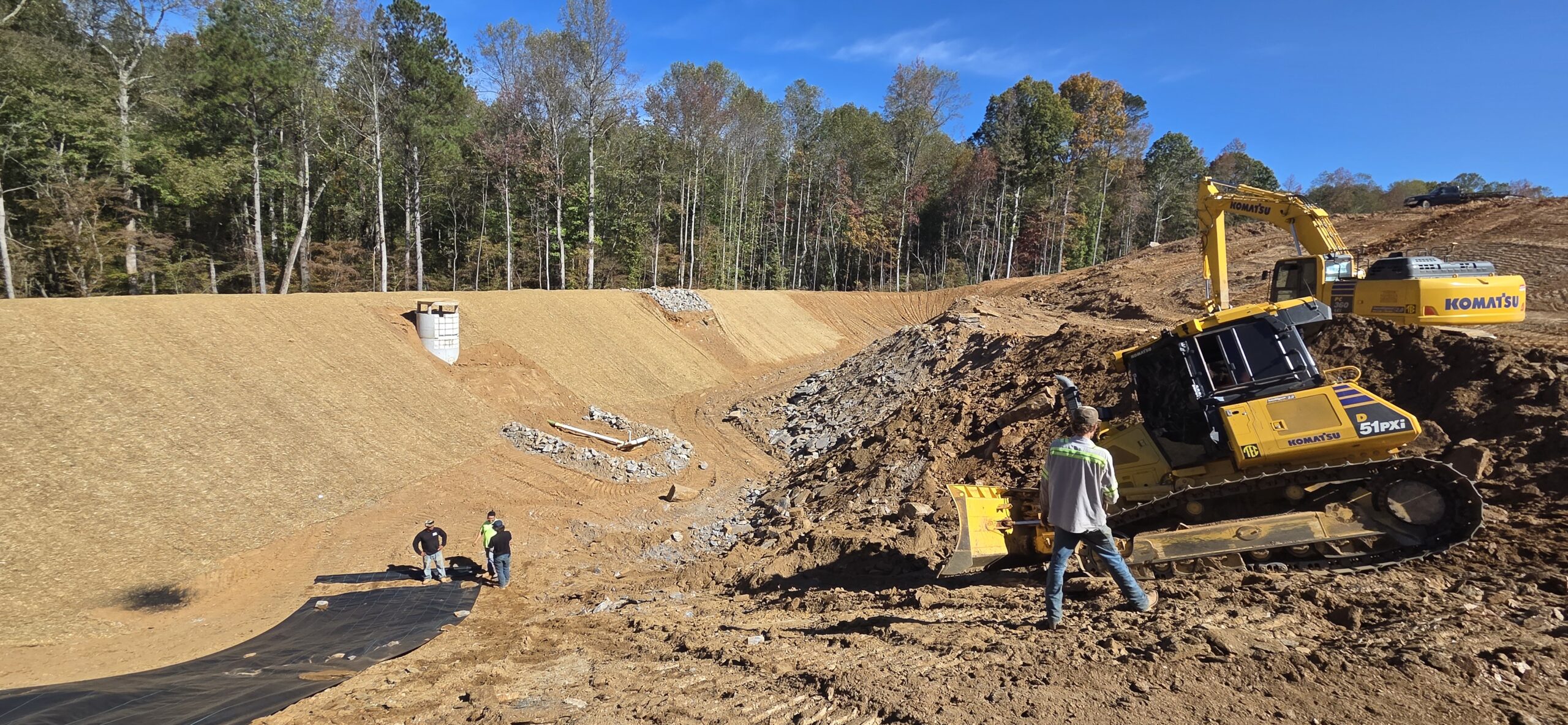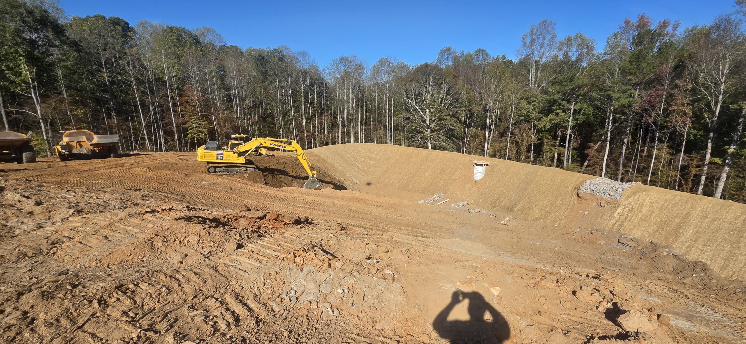 Our ASEC representative was on site for the observation/testing of the placement of fill/backfill. The contractor continued excavation of the northwest pond area and placing blasted rock material in approximately 1-foot lifts across Lots #22 through #25. The blasted rock lifts were mixed with a finer soil to help fill voids. It appears as the 815 sheep-foot roller is compacting the lifts, that the size of the rock is breaking down. ASEC periodically checked the lifts with a probe rod and also watched as loaded off road dump trucks roll over the lifts to check for stabilization. There were no signs of severe pumping or rutting. ASEC spoke with Daniel (NG Grading) about the diameter of the rock blast being placed as the lifts continue to get closer to final grade. Daniel and our representative agreed that the larger rock (larger than 1 foot in diameter) should be used in deep fill areas exceeding 8 to 10 feet. Hopefully there will be no issues with rock during final grading/pipe installation. The contractor is fixing a couple of issues that were addressed during the inspection for the 7-day letter.