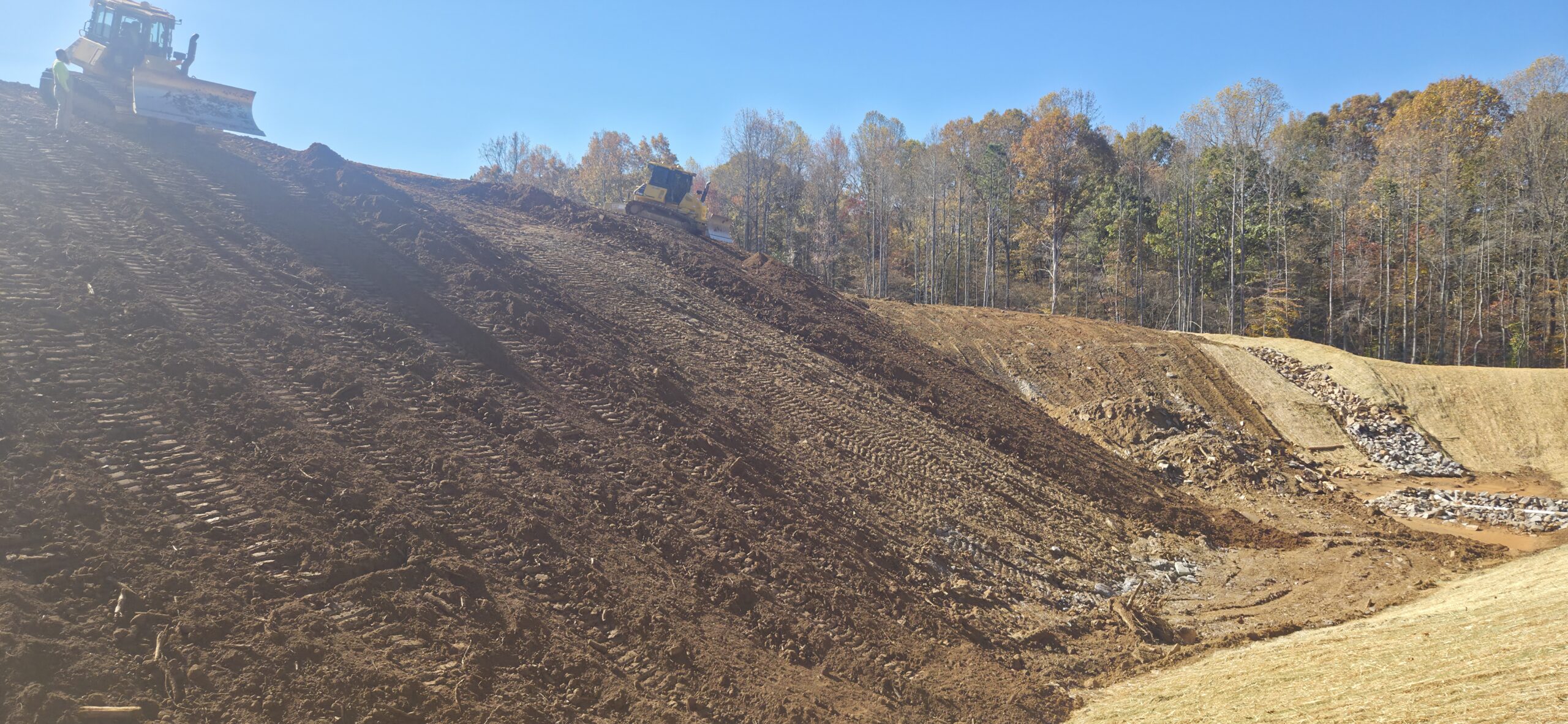 Our ASEC representative was on site for the observation/testing of the placement of fill/backfill. The contractor started moving stockpiled topsoil from Lots #21 through #25 to the slope of the northwest pond area. Topsoil was placed in approximately 12-inch lifts and compacted with an 815 sheeps-foot roller. There does not appear to be any form of retaining wall on this slope (according to plans provided by contractor). The contractor confirmed this slope was greenspace and they would not place any topsoil in structural areas.