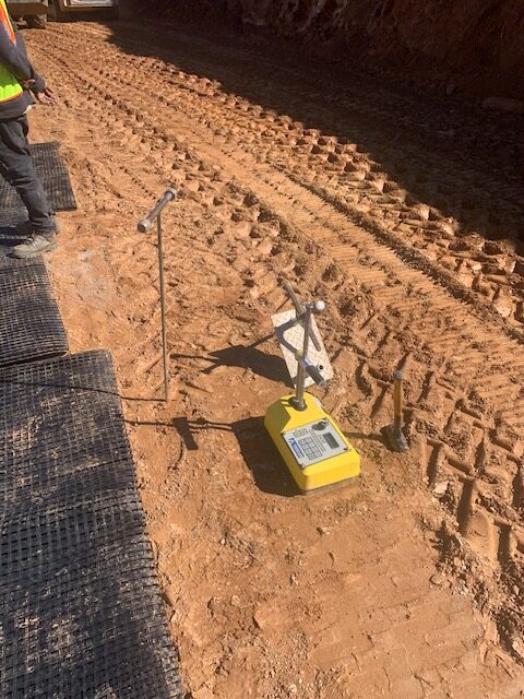 On the above date our representative was on site to observe fill placement and compaction and verify proctor values used on this project. The writer also observed fill placement and compacting efforts from recommending fill placement being placed in 8″ lifts rather than 16″ to 24″. The writer assisted in performing density tests after additional compacting efforts were made. Compaction results appeared to be in compliance with project plans and specifications. An additional proctor sample was obtained and transported to lab for proctor verification.