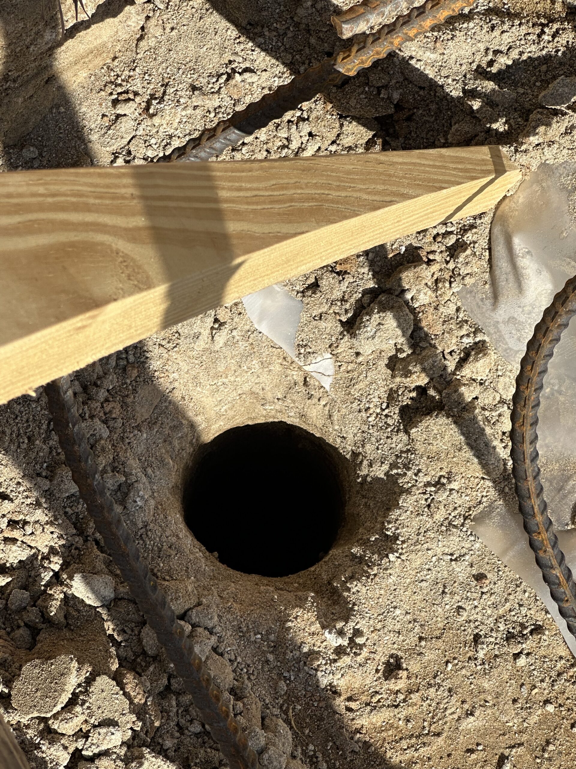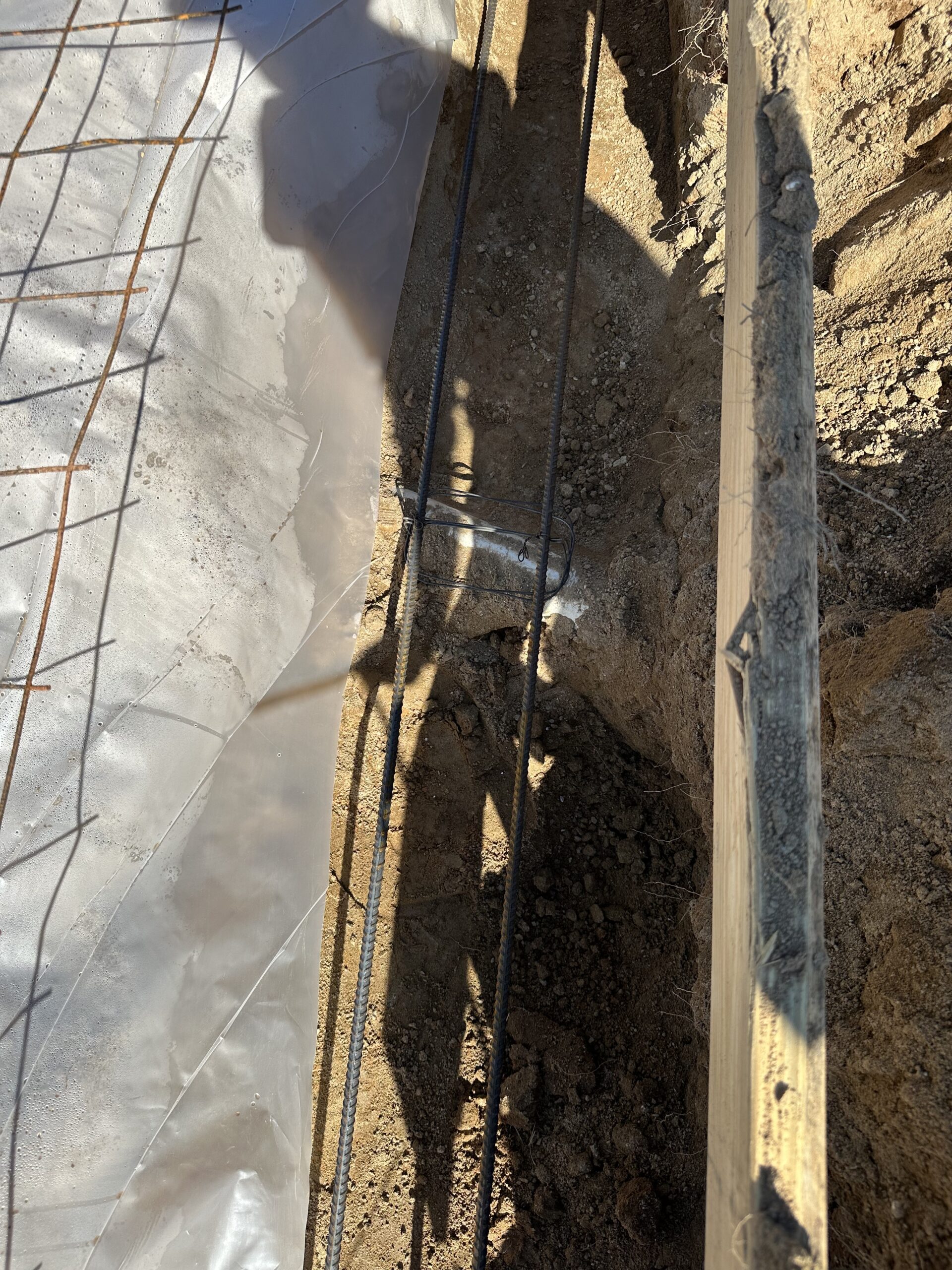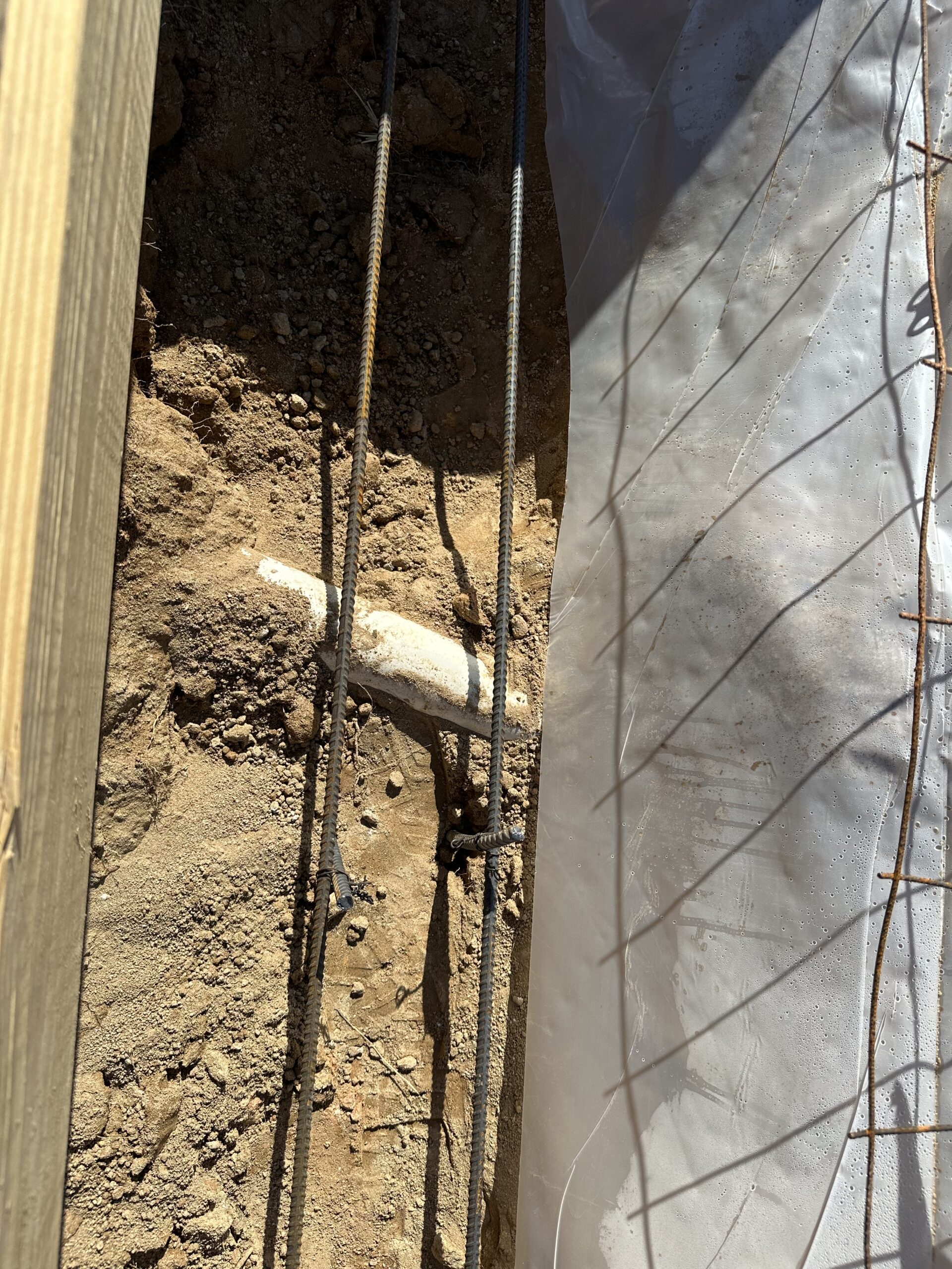 All conditions at the site were observed to be satisfactory. The pipe was located beneath the reinforcing bars (rebars). Additional bars were placed to ensure there was no contact between the pipe and the rebars. The rebars were properly supported and not touching the ground. The reinforcement grid was inspected and found to be in good condition.
