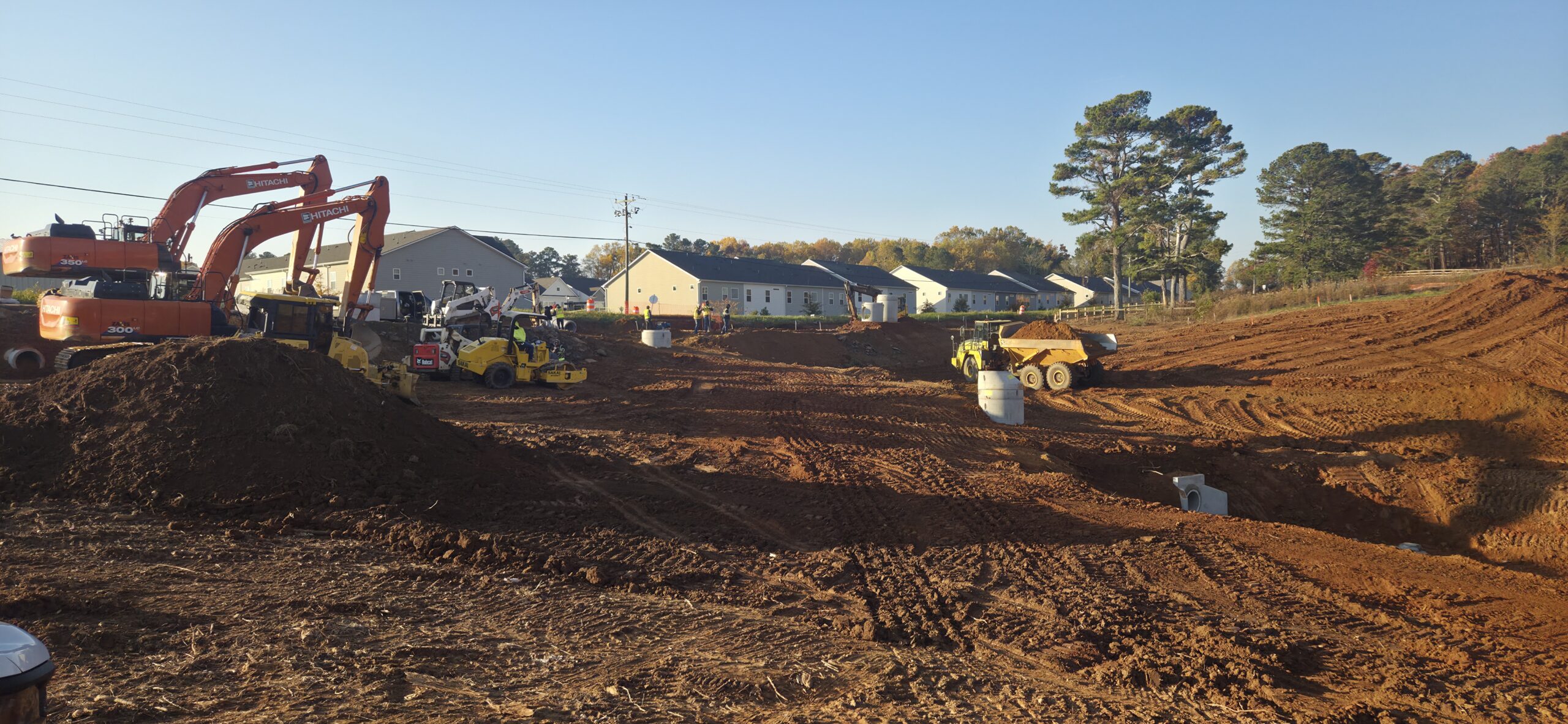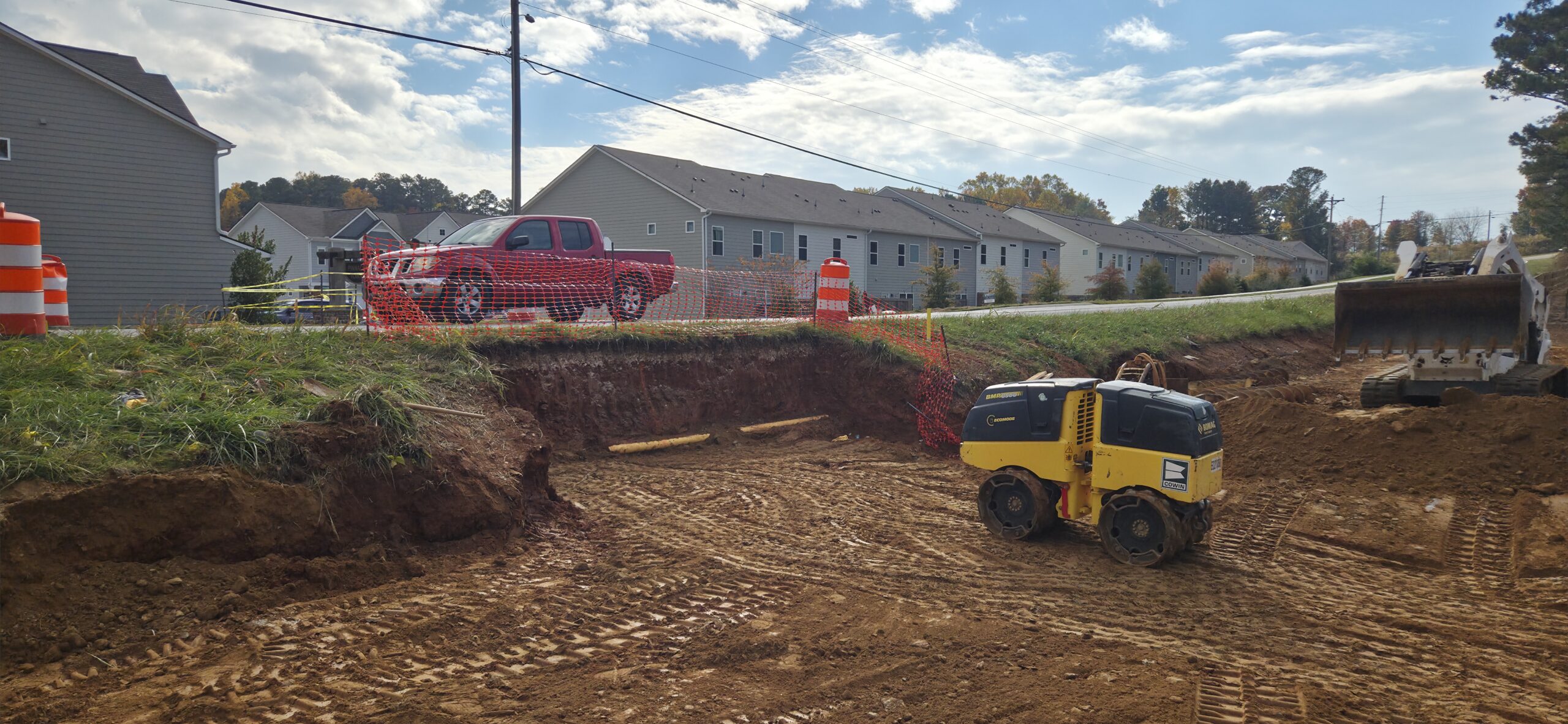 ASEC performed a field proctor for the structural fill being excavated from the pond area and placed along these lots. The field proctor showed an approximately maximum dry density of 100.0 pcf at approximately 18.5% optimum moisture content. ASEC is confirming this with a lab proctor for this same material. The pipe crew started boring under Philadelphia Road to the other side of the street. During this time, ASEC noticed there was a large void under the gas main that runs alongside the road in the deceleration lane. ASEC pointed this out to the pipe crew and recommended that they fill this void before backfilling the deceleration lane. The pipe crew agreed and filled the void. Density testing was performed around the BC1 and BC2 structures as the contractor backfilled this area. All test results were provided to the contractor.