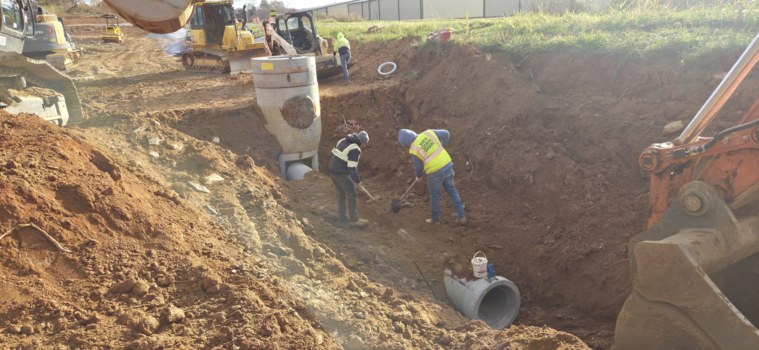 The contractor placed structures BC4.1 and BC4.2 in the deceleration lane and began backfilling. Once the contractor backfilled approximately 2 feet over the pipeline, ASEC began density testing approximately every 2 feet. All test results were provided to the contractor, and any failing tests were addressed.