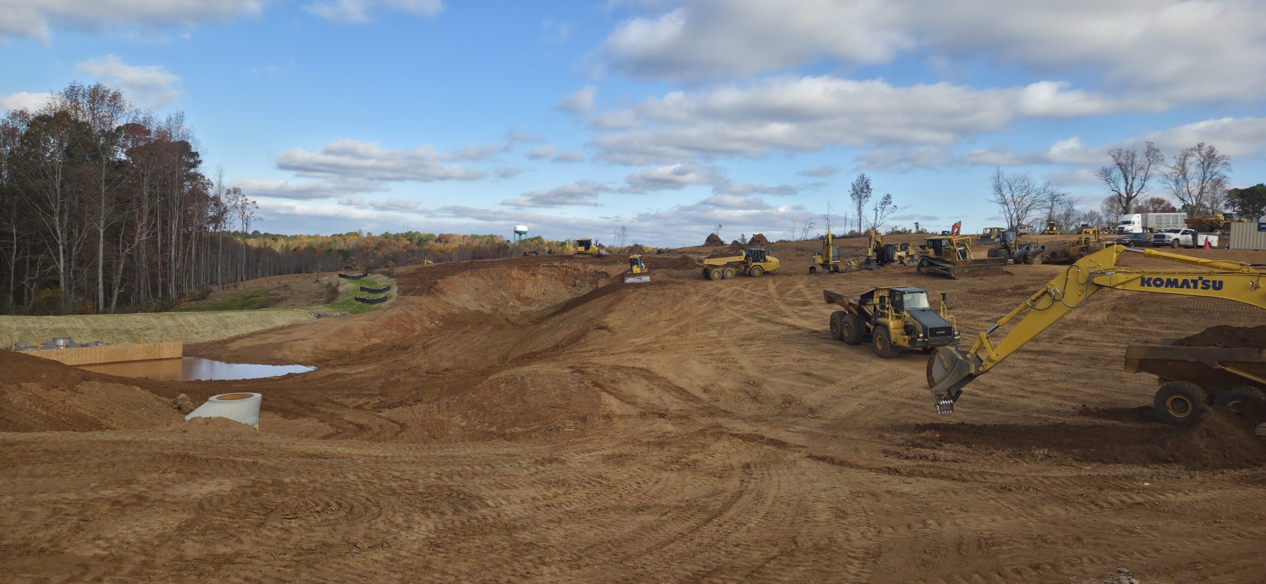 Our ASEC representative was on site for the observation/testing of the placement of fill/backfill. The contractor continued placing structural fill along Lots #1 through #4 slope and edge of building pads. The contractor is benching into the natural ground as they work their way up the natural slope. Lifts are being placed in approximately 8 inches to 12 inches in thickness and compacted with an 815 sheeps-foot roller. As the loaded trucks roll across the lifts, ASEC is watching for pumping/rutting and checking for stability of the lift. There have been no signs of severe pumping/rutting, and the lifts appear to be stable. Density testing was performed approximately every 2 feet. Fill was excavated from the pond located from the front of the site by deceleration lane. All topsoil is placed along the bank in the pond (greenspace). ASEC reviewed site plans with the contractor. ASEC was informed the large open area to the right of the main pond (front of site by deceleration lane) is a commercial lot area. ASEC will perform density testing in this area as structural fill is placed.