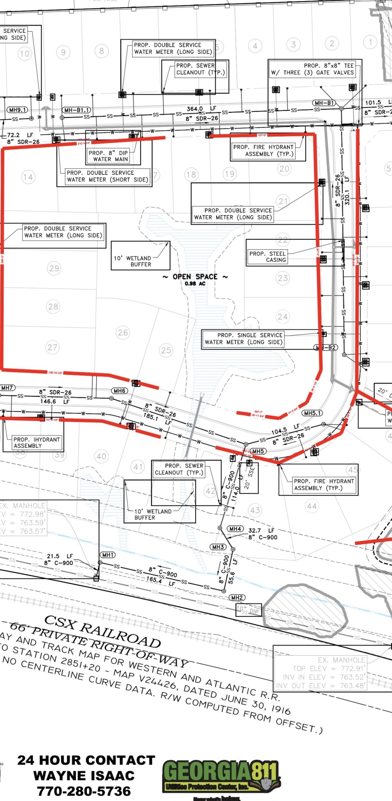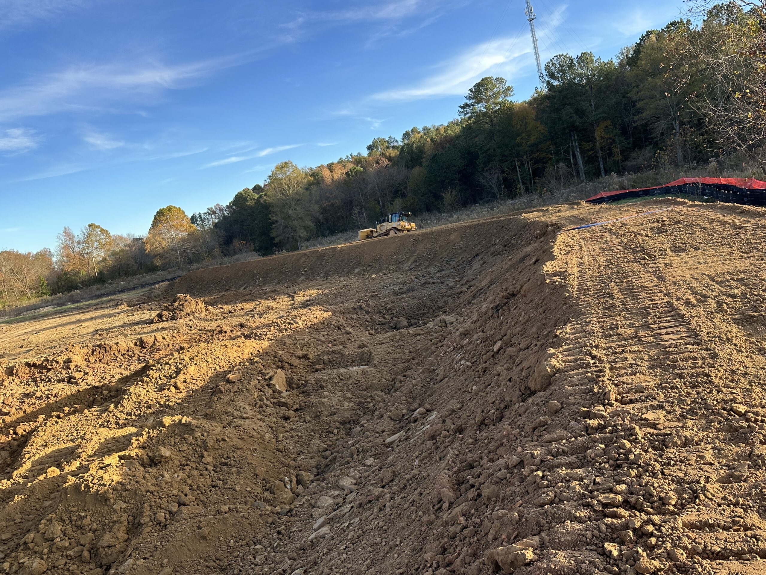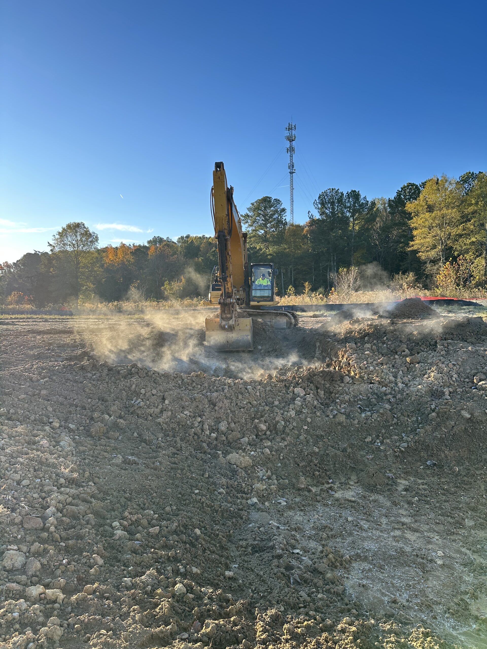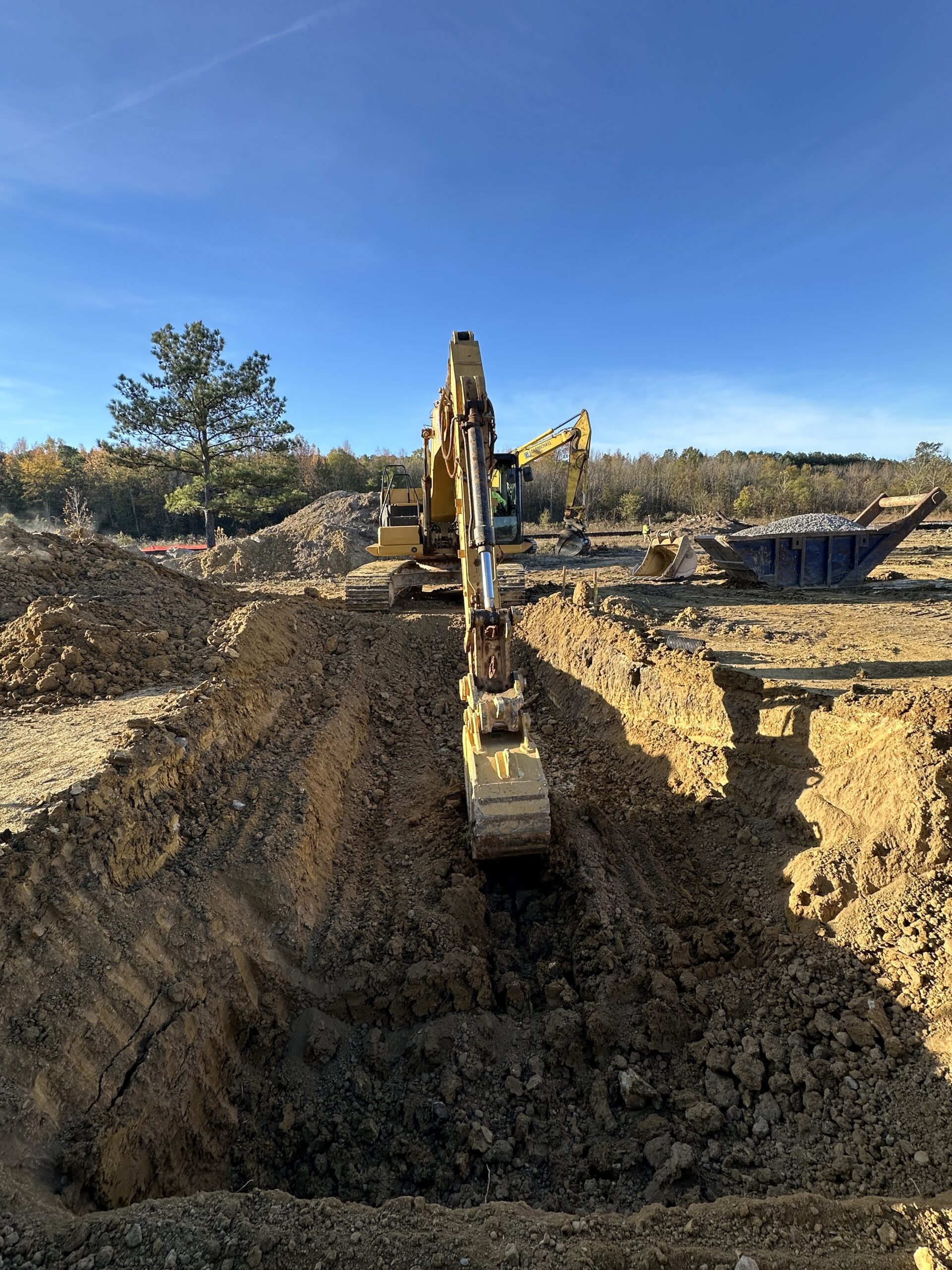 Excavation and installation continued today at the Caseville Road tract for the French drain (“burrito wrap”) project. Work started at point C3 according to the new plan, next to the existing pipeline. The crew excavated the soil, cut the existing pipeline, and installed a T-joint connection. New pipes were installed along the designated line, and the trench was backfilled and compacted. No groundwater or slope instability was observed at the time of excavation.