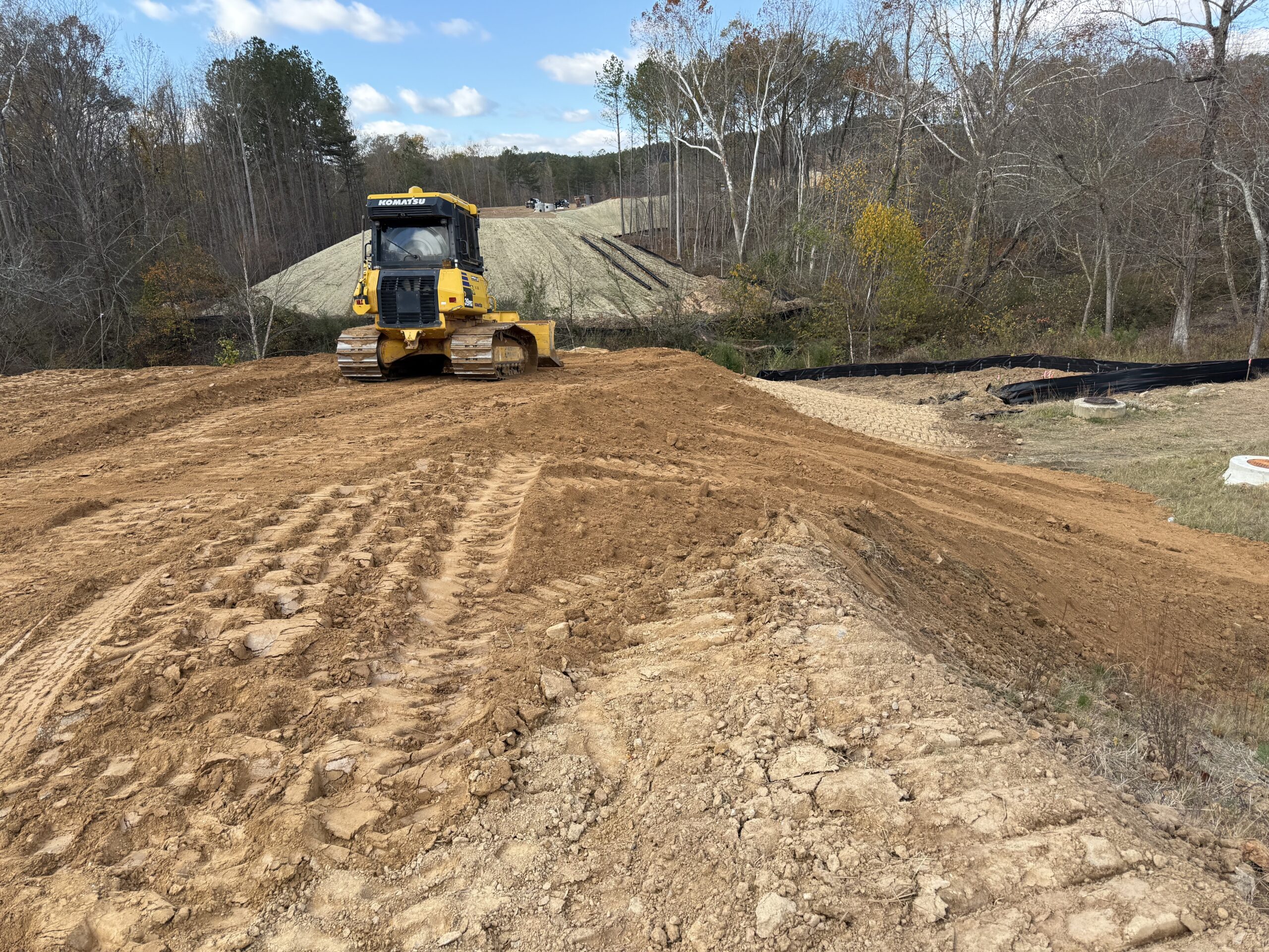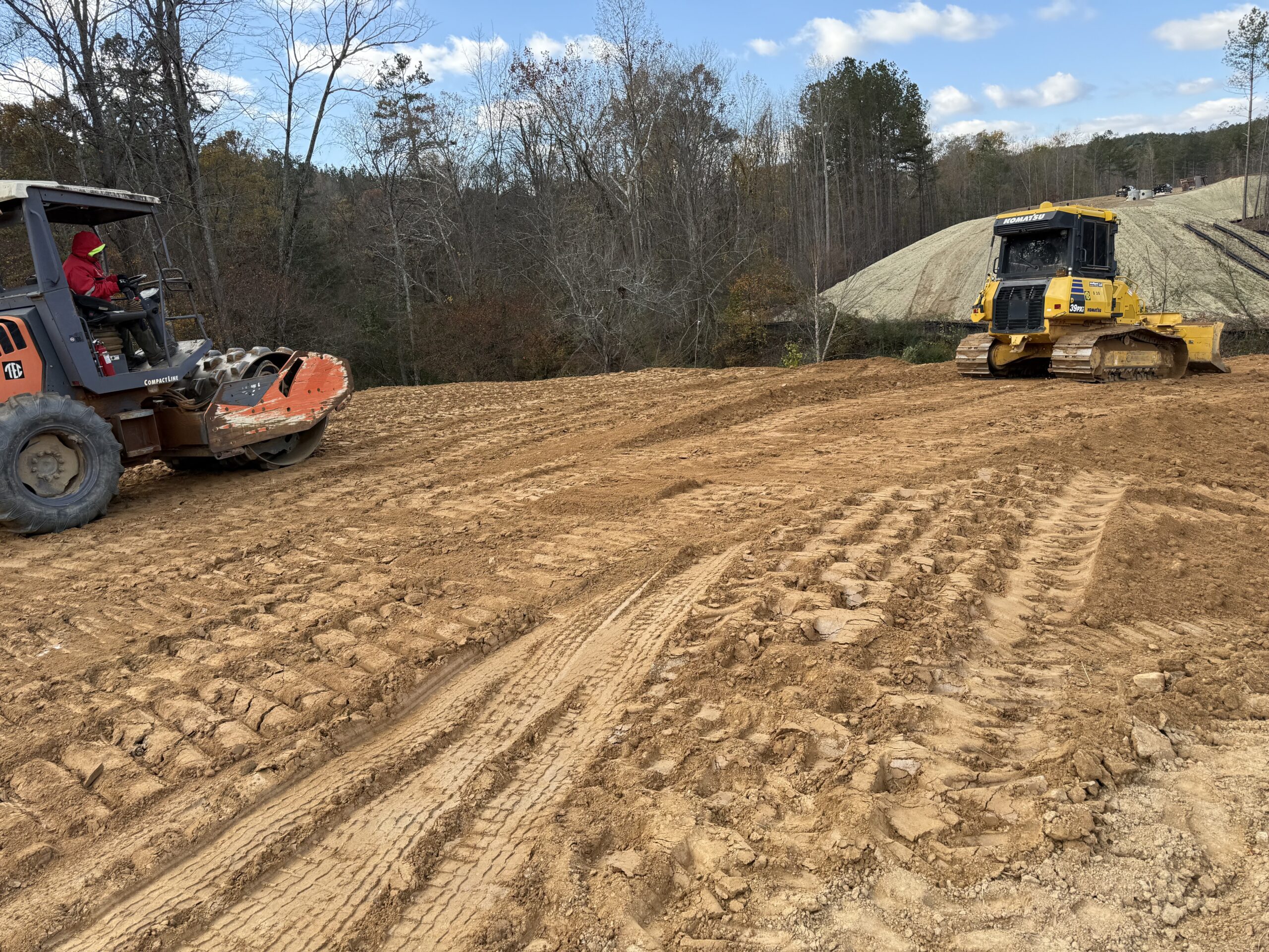 Several lifts were placed during the observation period, with each lift measuring approximately 4–6 inches in thickness. The placement area included the future road alignment and adjacent slopes.