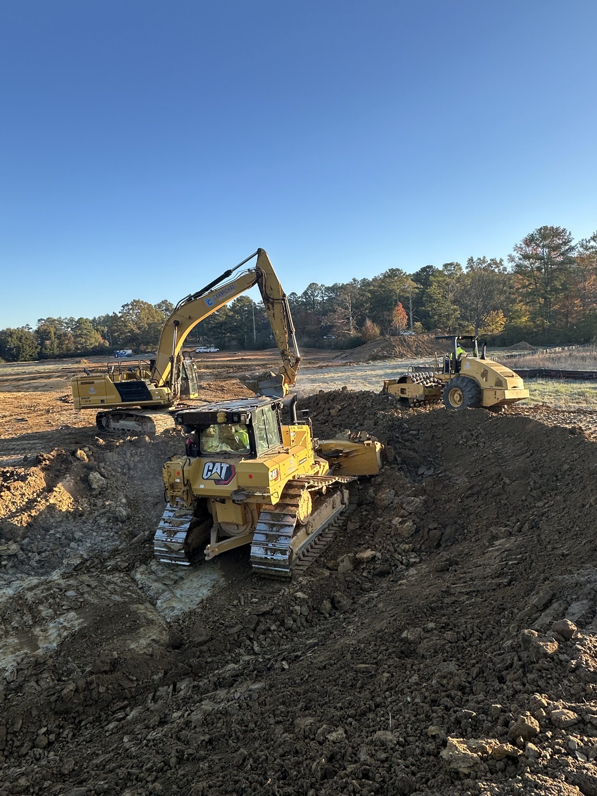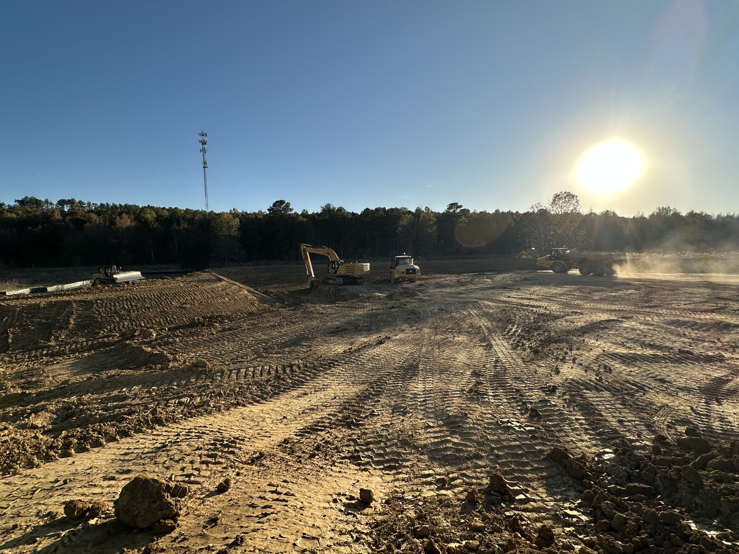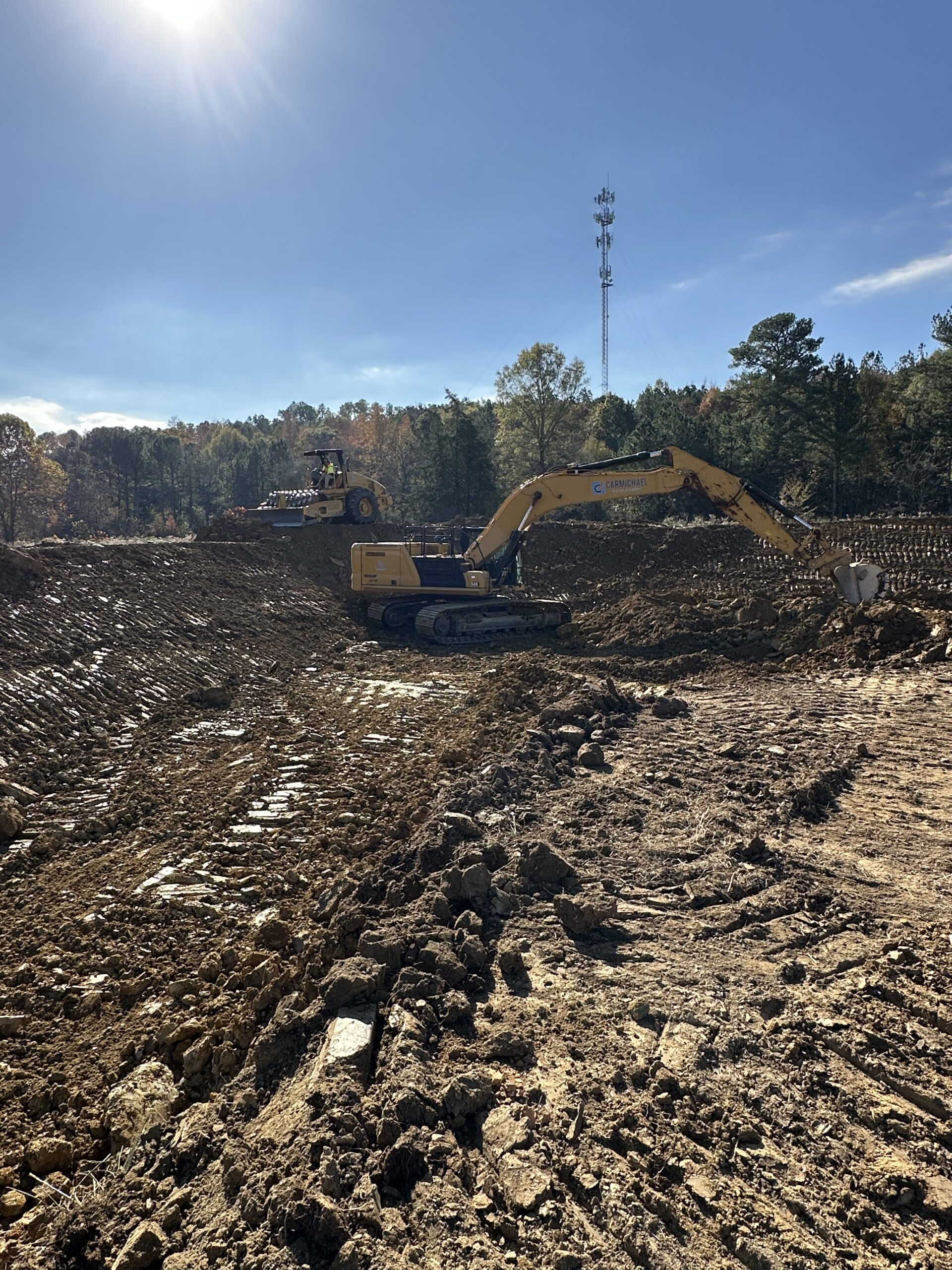 On the other side of the site, work continued midway up to point A1 for the pond area, where the crew constructed an embankment ranging from 6 to 10 feet in height around the pond and leveled the surface on both the top and sides.
