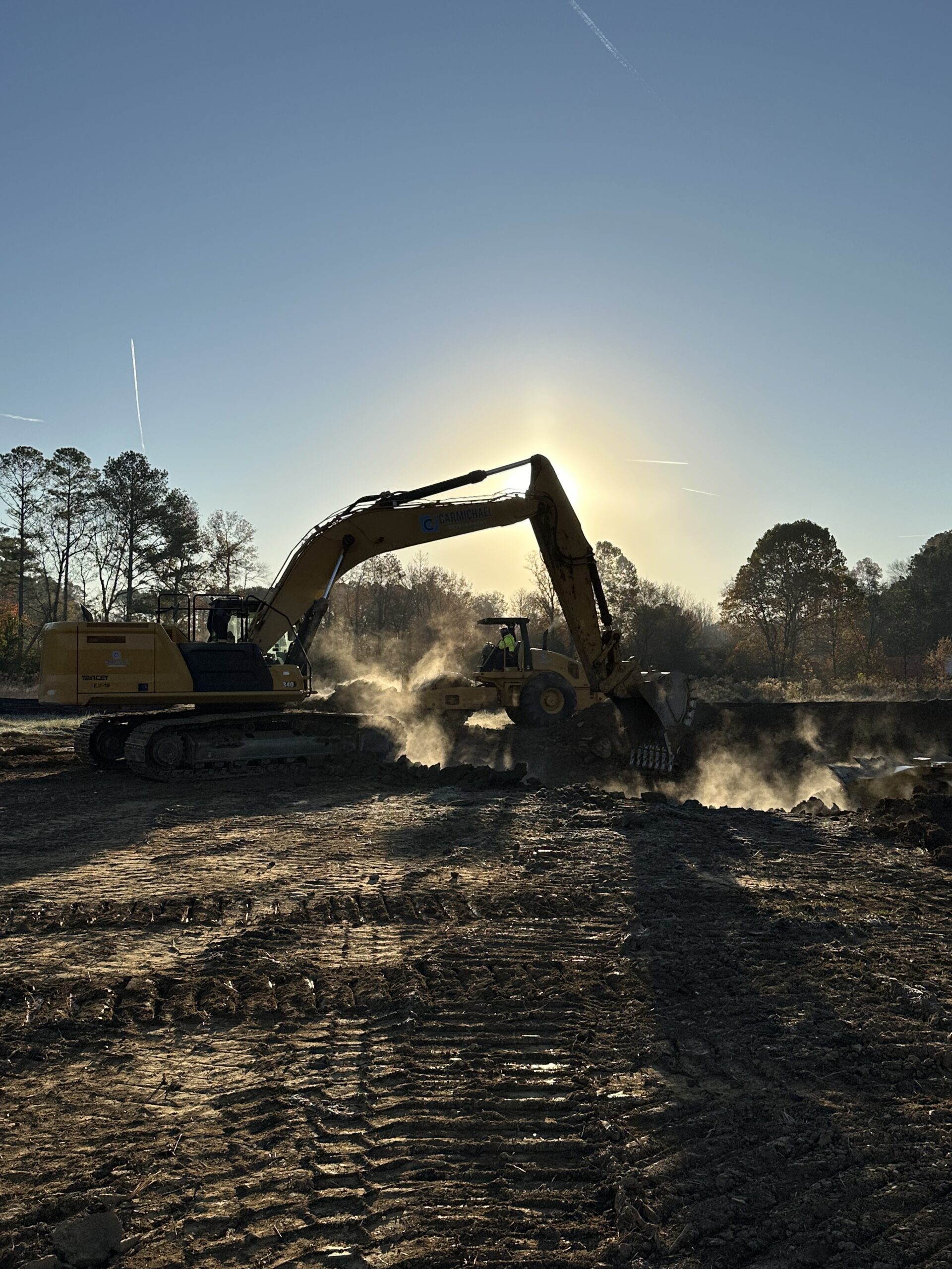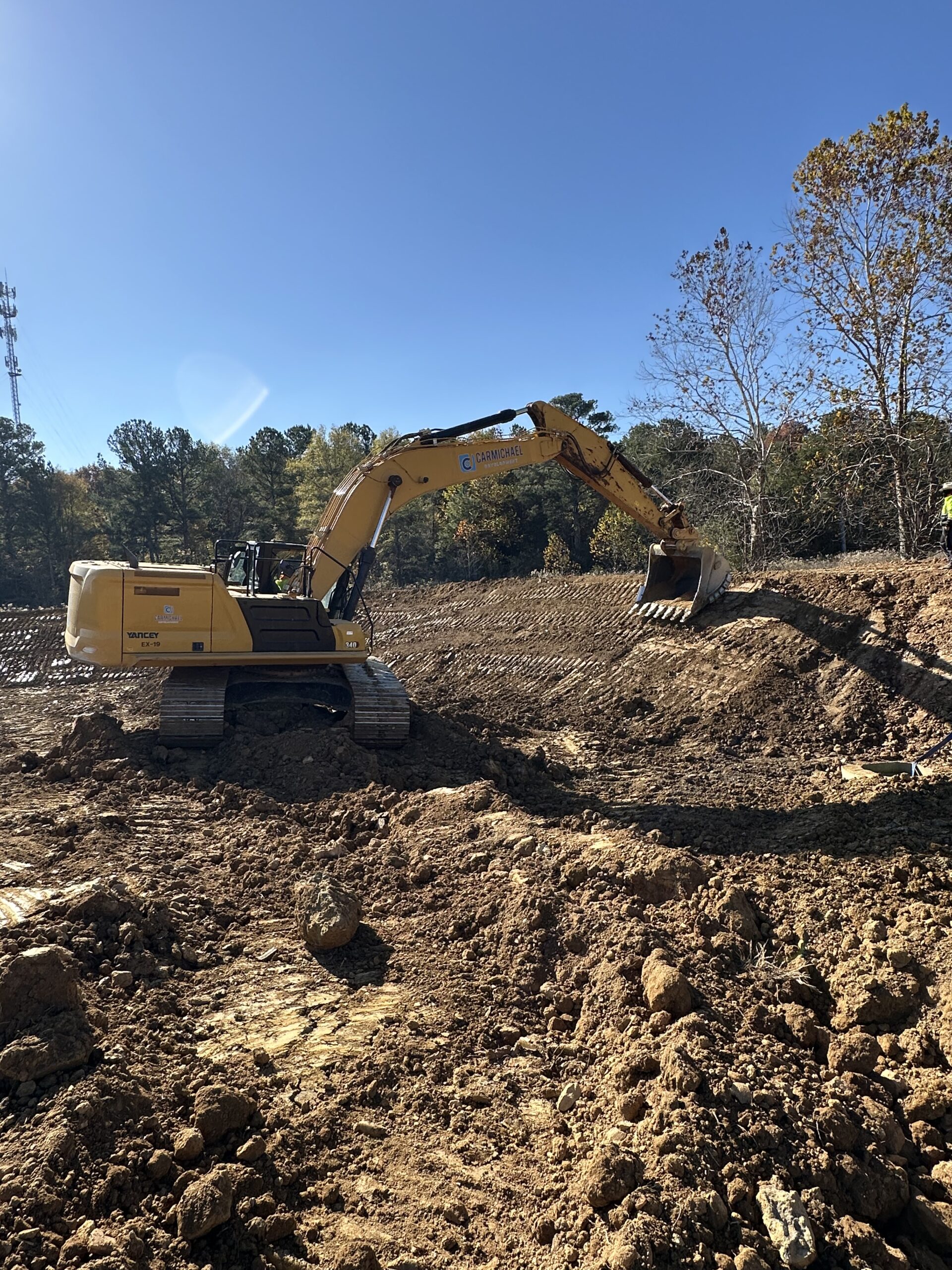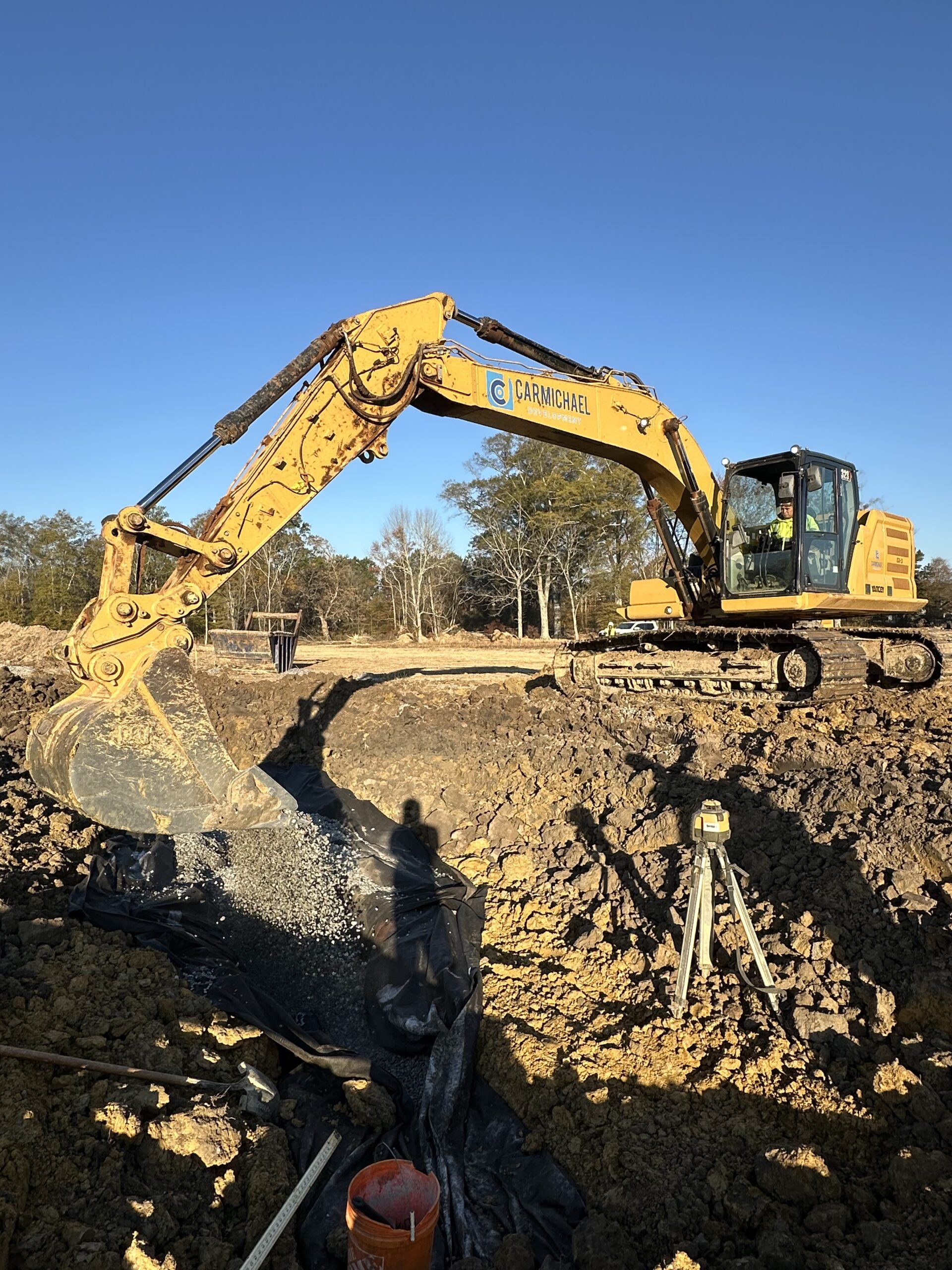 On the other side of the site, work continued midway up to point A1 for the pond area, where the crew constructed an embankment ranging from 6 to 10 feet in height around the pond and leveled the surface on both the top and sides.