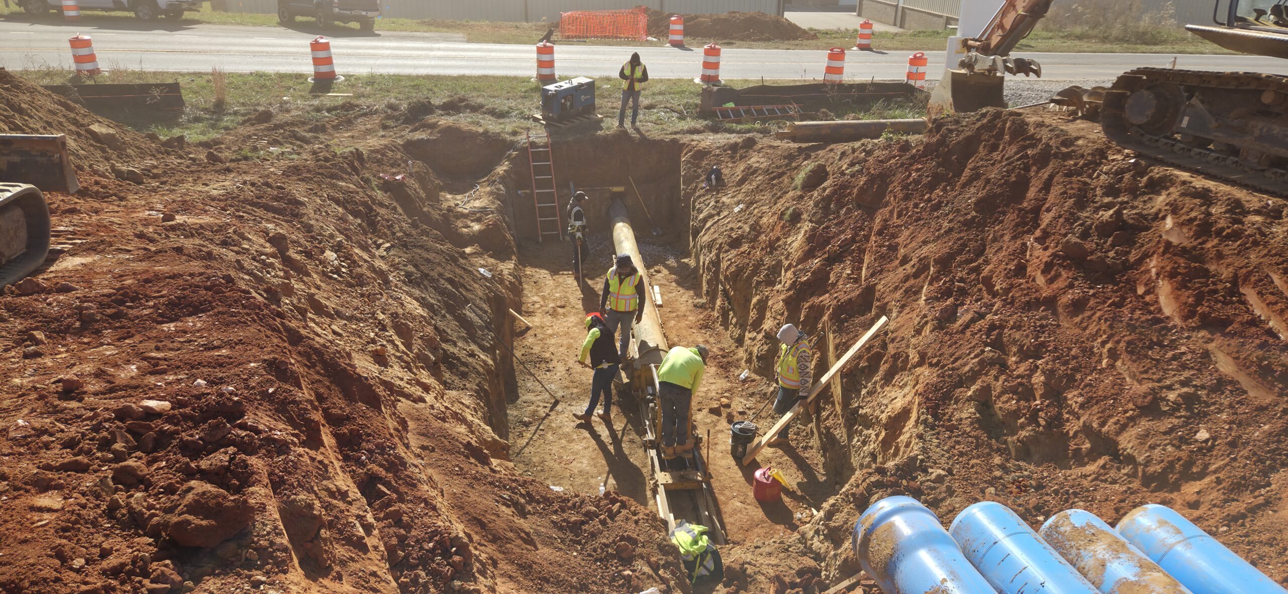 The contractor continued horizontal boring under Philadelphia Road to install pipeline near entrance of the new gas station (located on the corner of Philadelphia Road and Hwy 575).