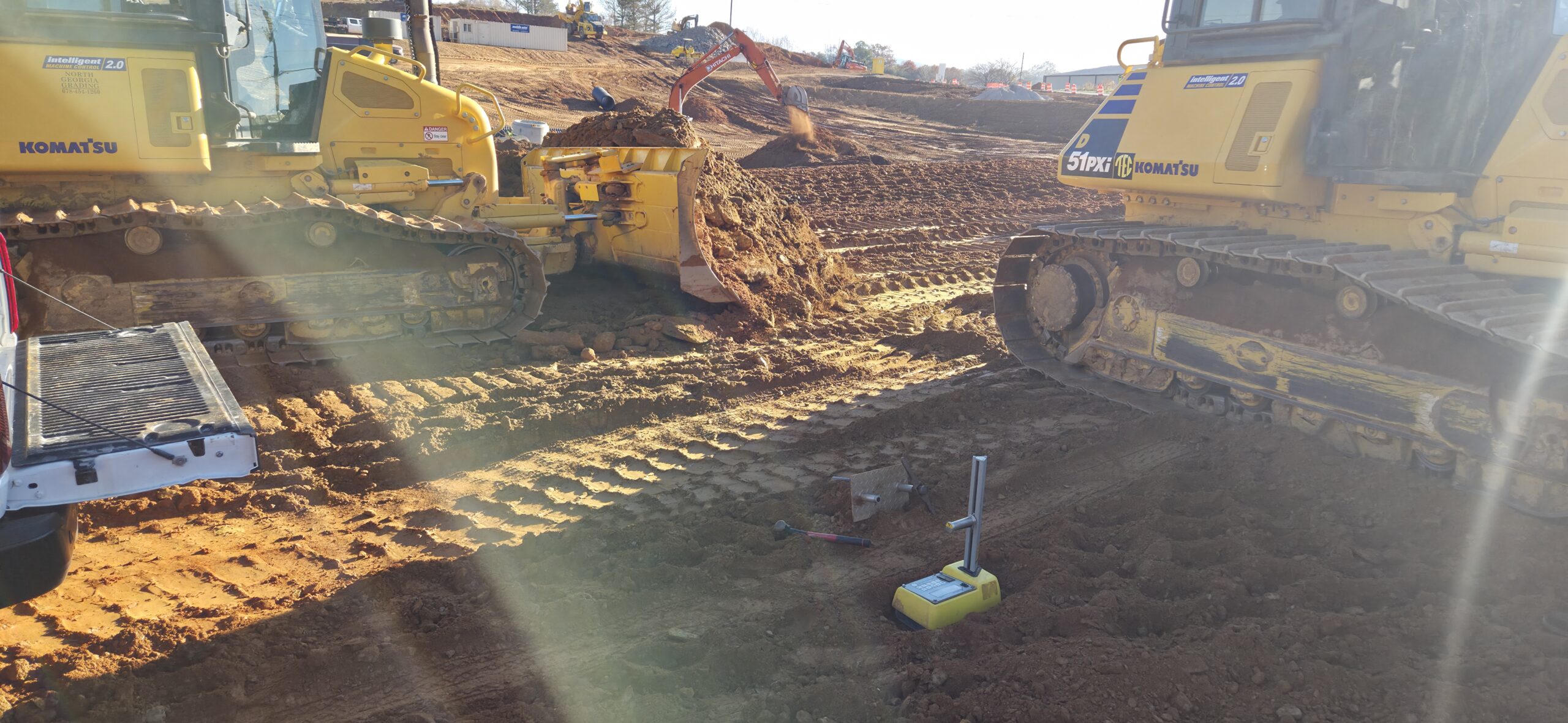 ASEC has requested multiple times to stop equipment/give proper space when testing with a nuclear density guage. It is recommended to give ASEC at least 50 feet in all directions while using a nuclear density gauge as per safety requirements. Besides being a safety precaution, it also helps prevent any false readings during testing due to vibrations from equipment. The contractor has not been following the requests of our field representative. As displayed in the photos below, the contractor will operate their equipment within 10 feet of ASEC during testing with a nuclear density guage. The contractor has stated “they do not want to stop equipment if they do not need to”. ASEC supervisors have discussed this with Daniel and Tyler (Foreman with NG Grading). The contractor said they will maintain a safe distance and allow ASEC to safely conduct their testing.