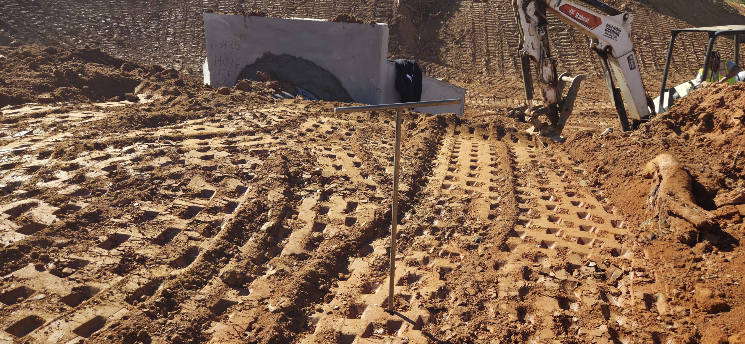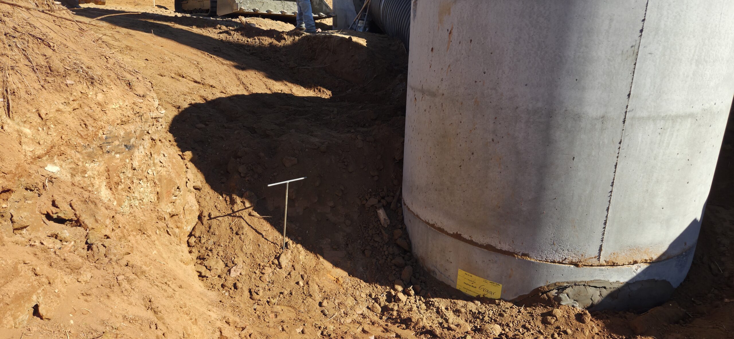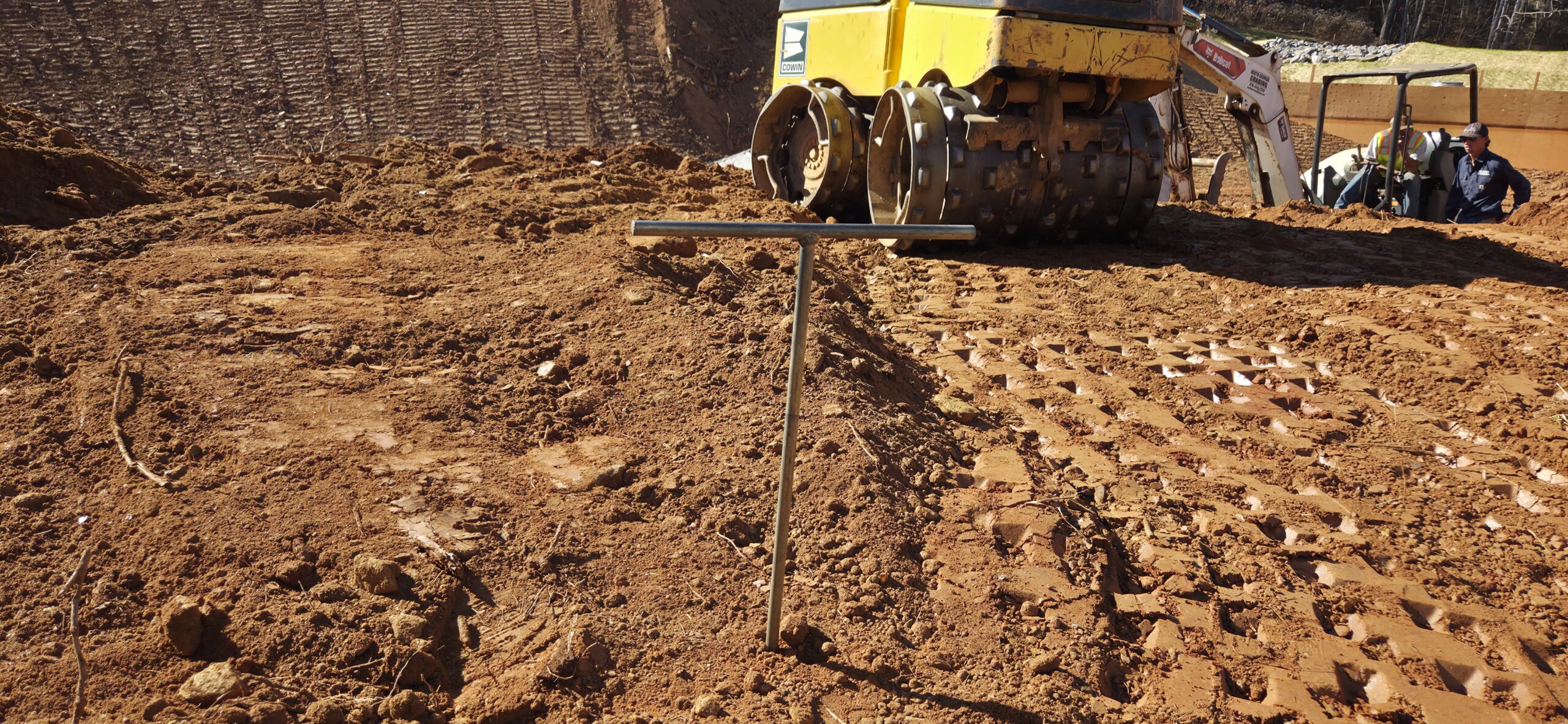 Our ASEC representative was on site for the observation/testing of the placement of fill/backfill. Upon arrival to the site, ASEC observed the contractor excavating topsoil from the slope of the detention pond to install a headwall BA1 to BA2. ASEC discussed with the contractor about the backfilling of this structure and recommended to use structural fill to backfill to at least 2 feet above the pipeline. The contractor said that the excavated topsoil from the bank was structural fill. This is incorrect, as this topsoil was stripped from the Lots #1 through #4 area and contains a large amount of organics such as root matting and large branches and roots. ASEC informed the contractor that structural fill should be used around the pipeline to prevent any settlement around the pipe. Once they are 2 feet over the structure, they could resume using topsoil in the slope. ASEC observed the contractor placing topsoil around the structure and actively attempting to compact the topsoil around the structure. ASEC performed probe rod testing around BA1 and BA2. Probe rod testing showed unstable soils around these structures (as shown in the pictures below).