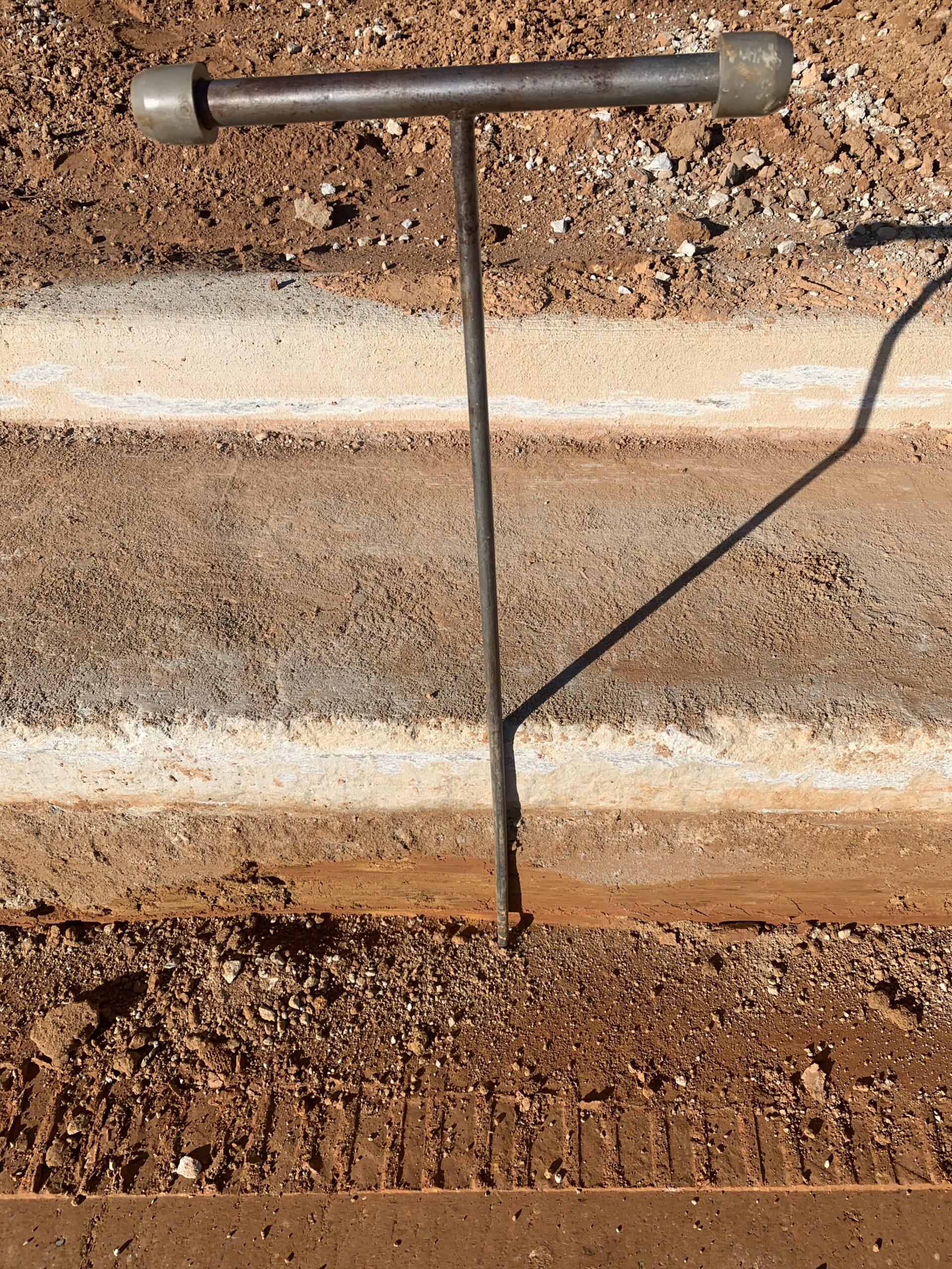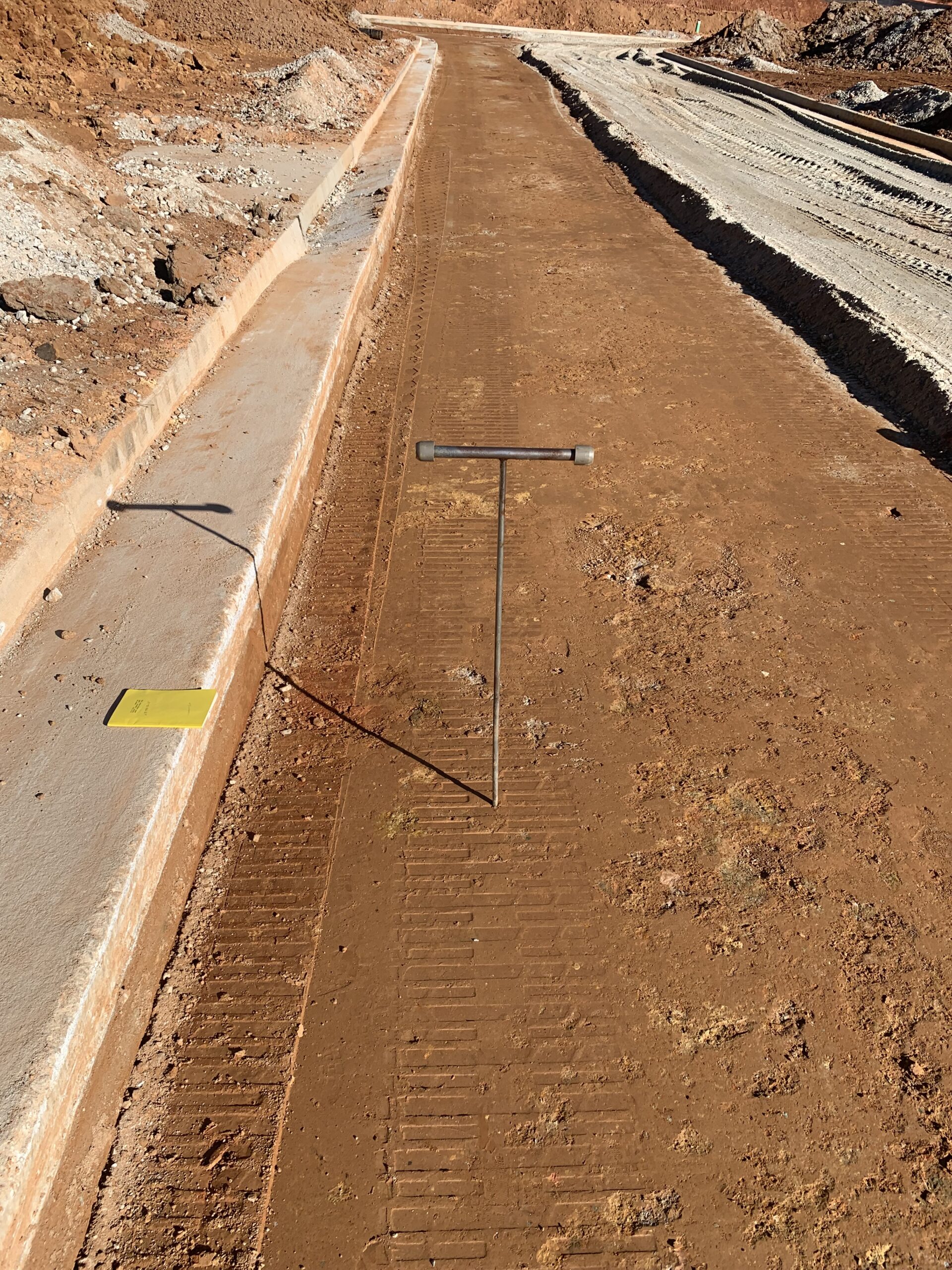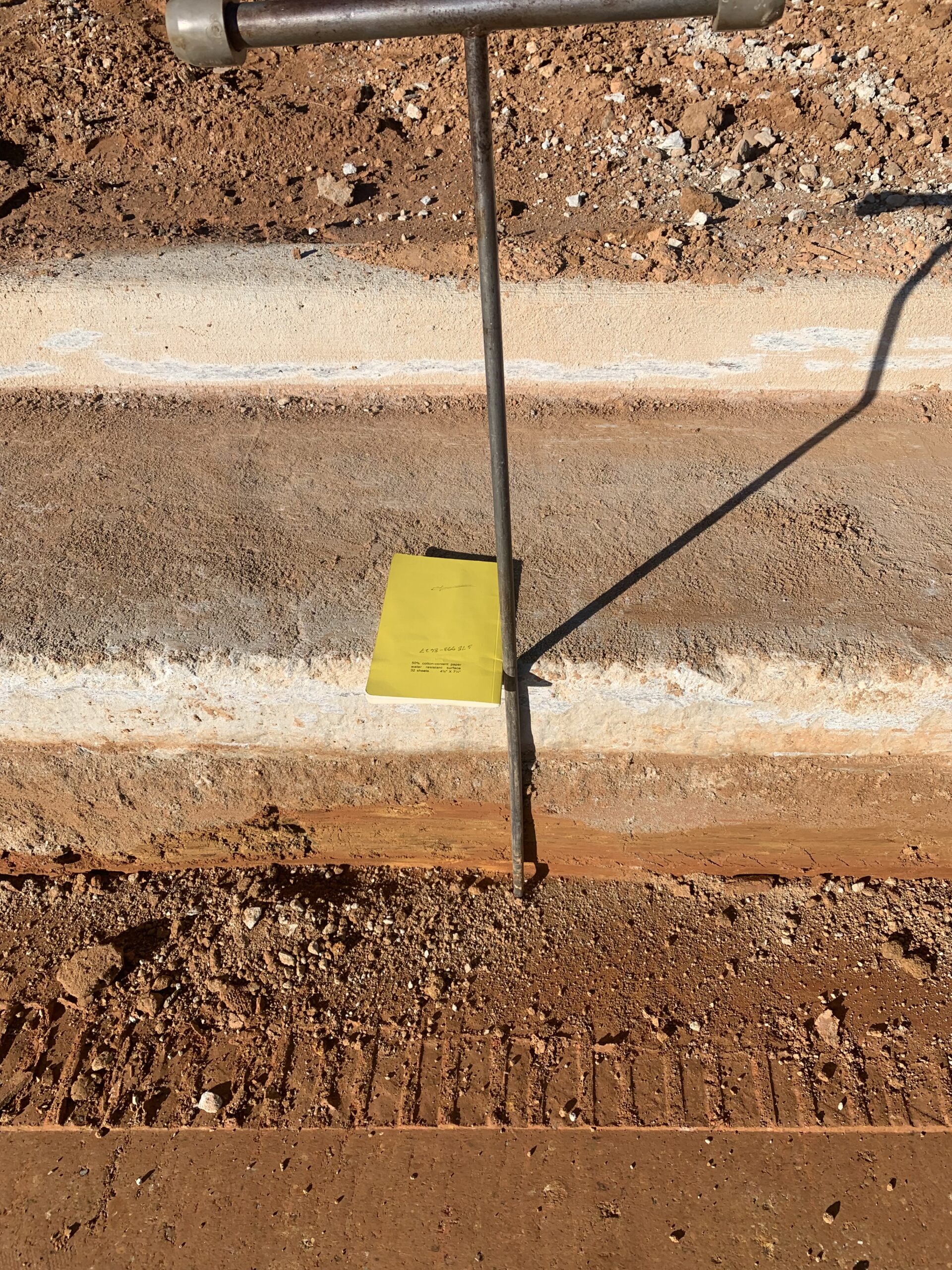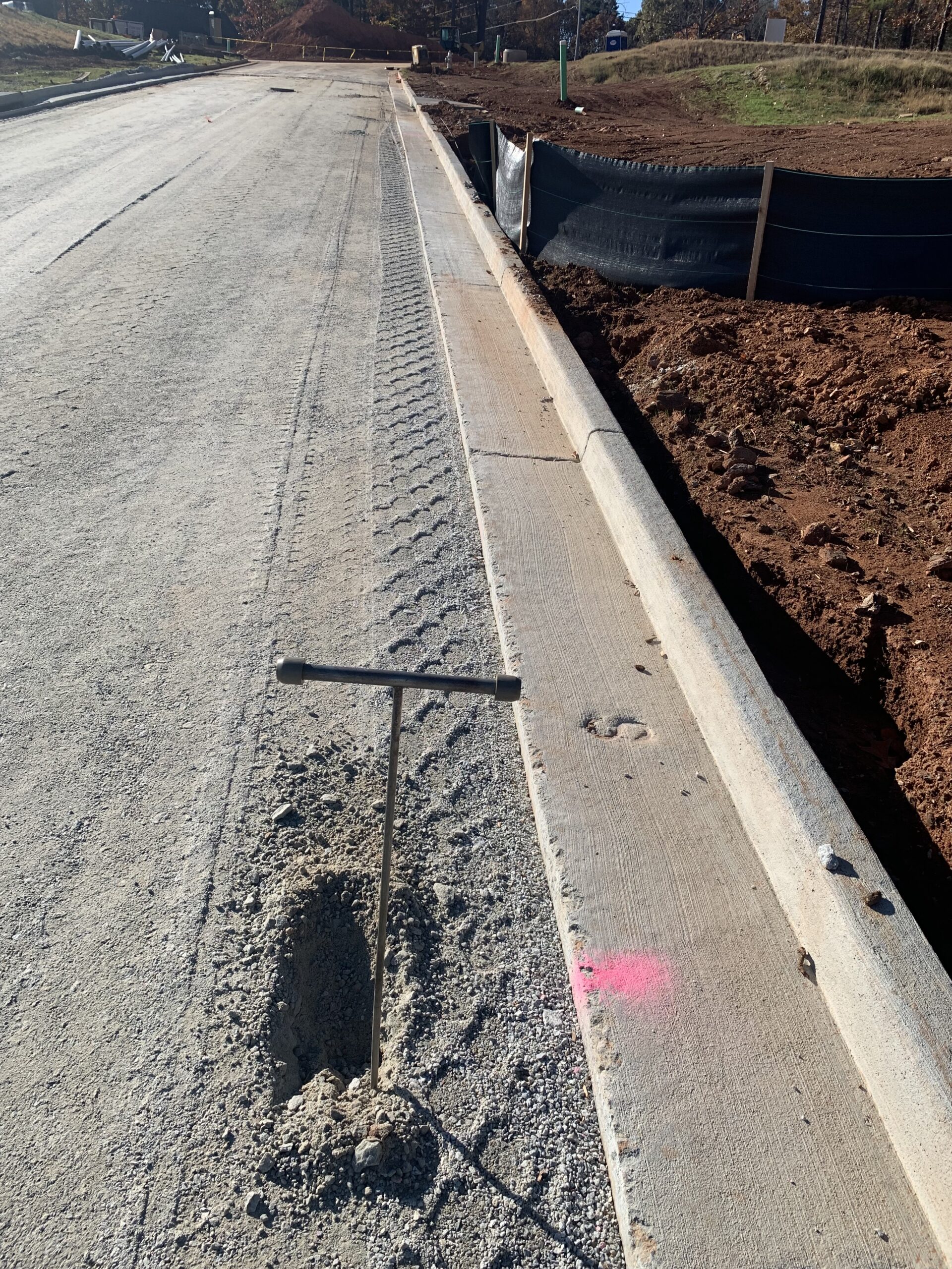 On the above date our representative was on site to observe subgrade repair at the west half of the roadway on Hawthorne. The paving contractor had cancelled work activities for today. The writer observed the clipped repaired sub grade by probing using a rounded end steel rod and measuring depth checks for pavement thickness. Design depth measurements ranged from 9″ to 14″ which was suitable for job plans and specifications. The repair area must be also observed by a proof-roll. Spoke with the contractor by phone and reminded him of contamination of subbase stone with underlying subbase soils would not be acceptable.
