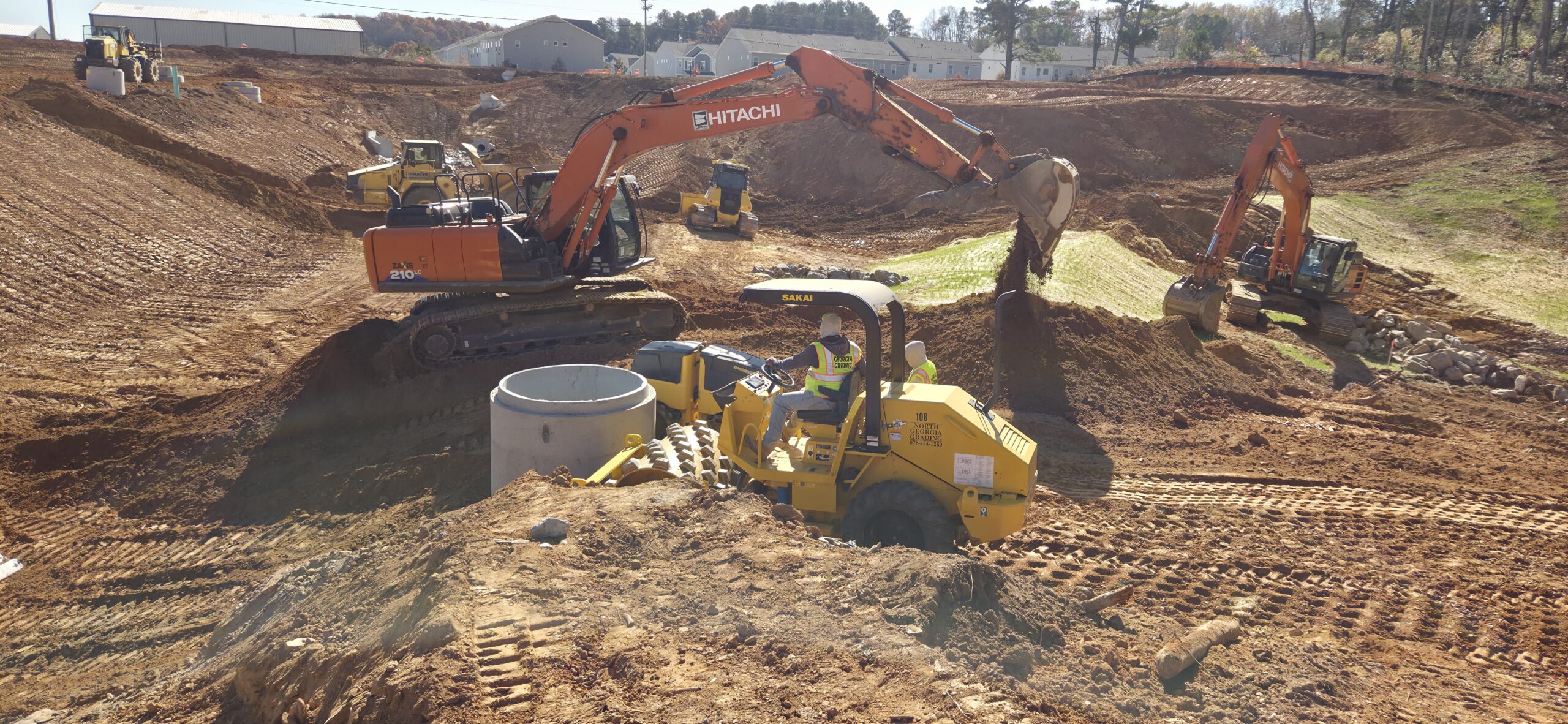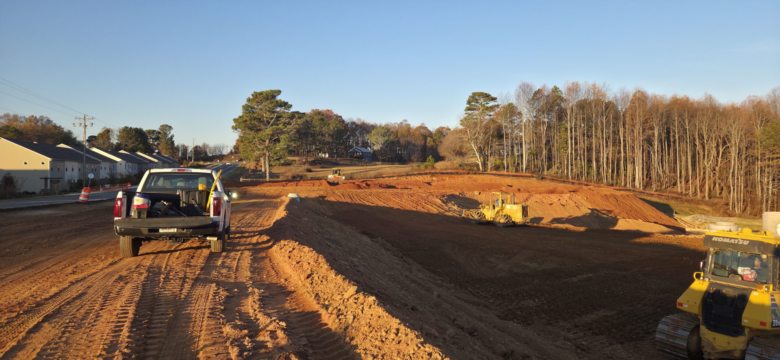 The contractor finished an approximate 2-foot thickened lift across the commercial lot area located around the front detention pond. Once the thickened lift was completed, the contractor began placing approximately 8 in lifts across this area and compacted using an 815 sheep’s foot roller. Density testing was performed, and all test results were provided to the contractor. ASEC watched as loaded off road dump trucks rolled across the lifts to check for subgrade stability. There were no signs of severe pumping or rutting observed.