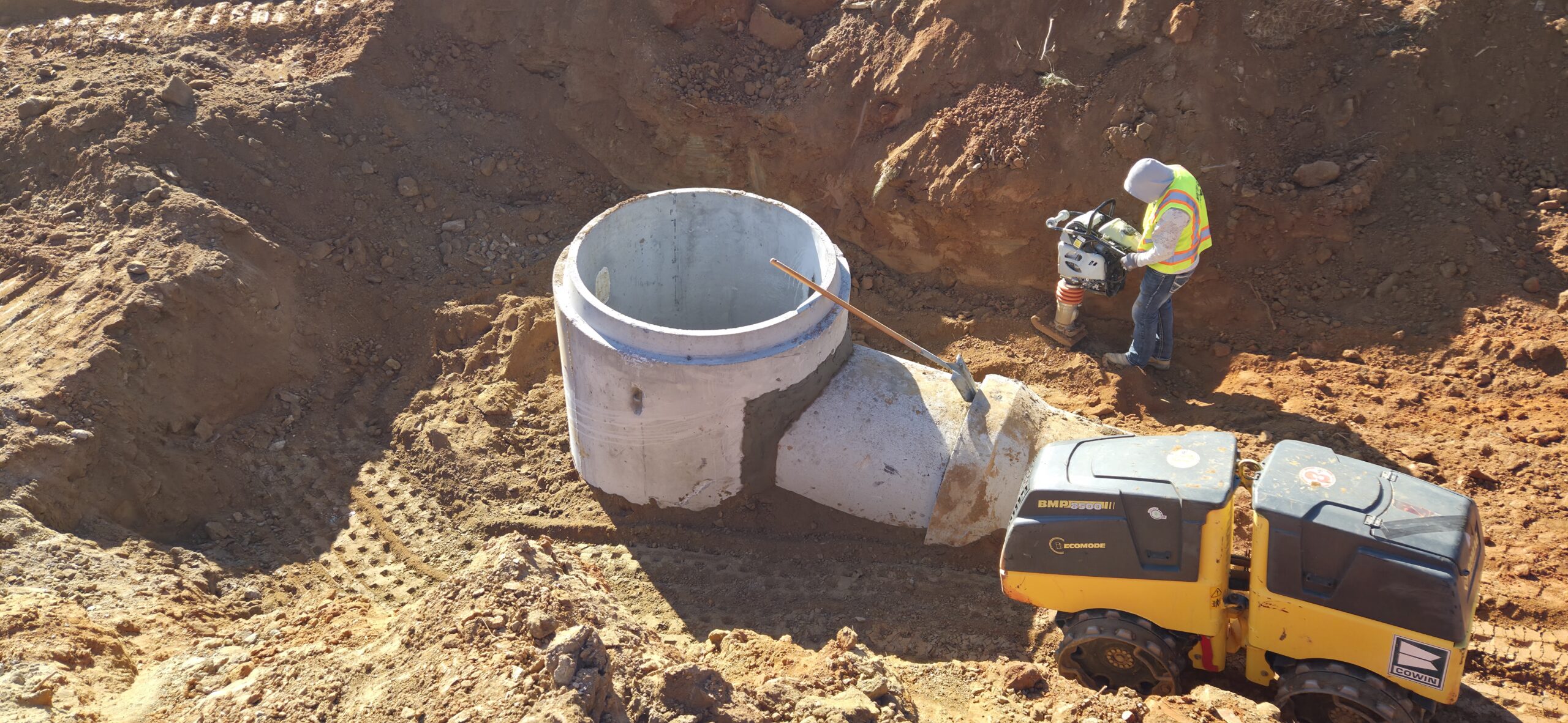 The contractor began backfilling structure BZ headwall structures and pipeline (leading into front of detention pond). Structural fill was used to backfill these structures and density testing was performed at approximately 2 foot over the pipeline. Test results were found to be satisfactory, and test results were provided to the contractor.