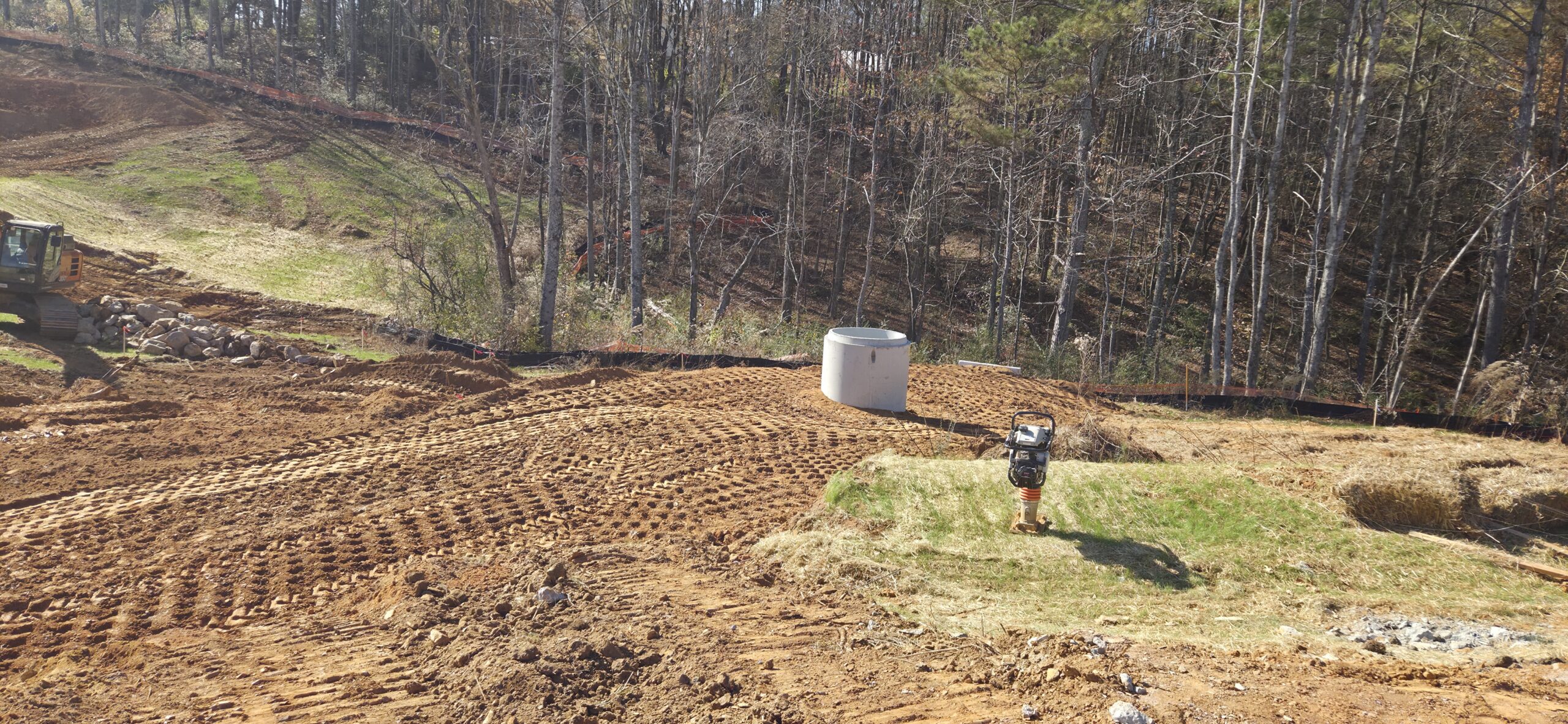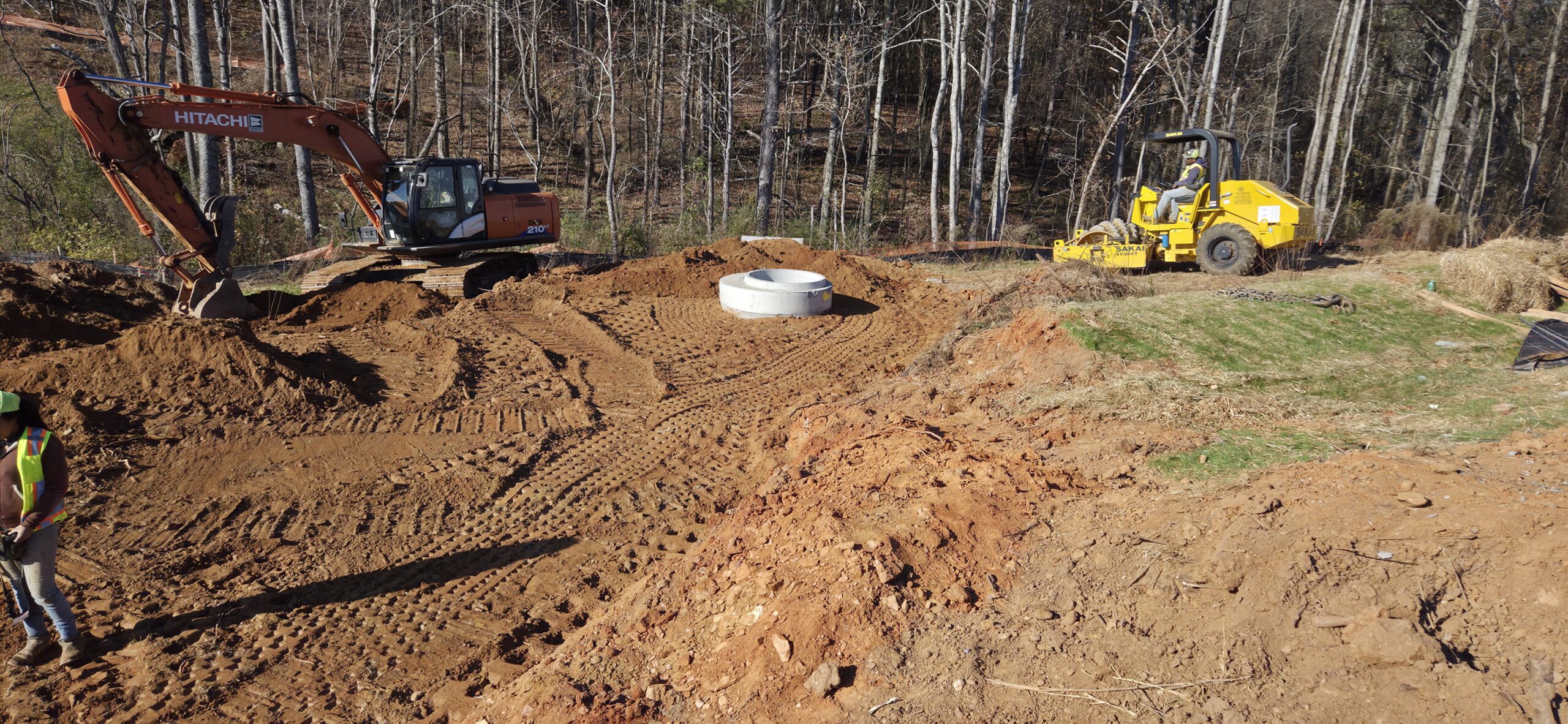 The contractor removed the temporary pond structure and began building up the slope and partial of Lot #4 in front of the detention pond. Structural fill was placed in this area and density testing was performed. There appears to be a mix of material being used in this area with a high mica content. Fill was undercut from the bottom of the detention pond to be used on the slope, and the contractor began placing topsoil back in the undercut. All test results were provided to the contractor. ASEC watched as loaded trucks rolled across the lifts to check for stability. There were no signs of severe pumping or rutting present, and the lifts appear to be stable.
