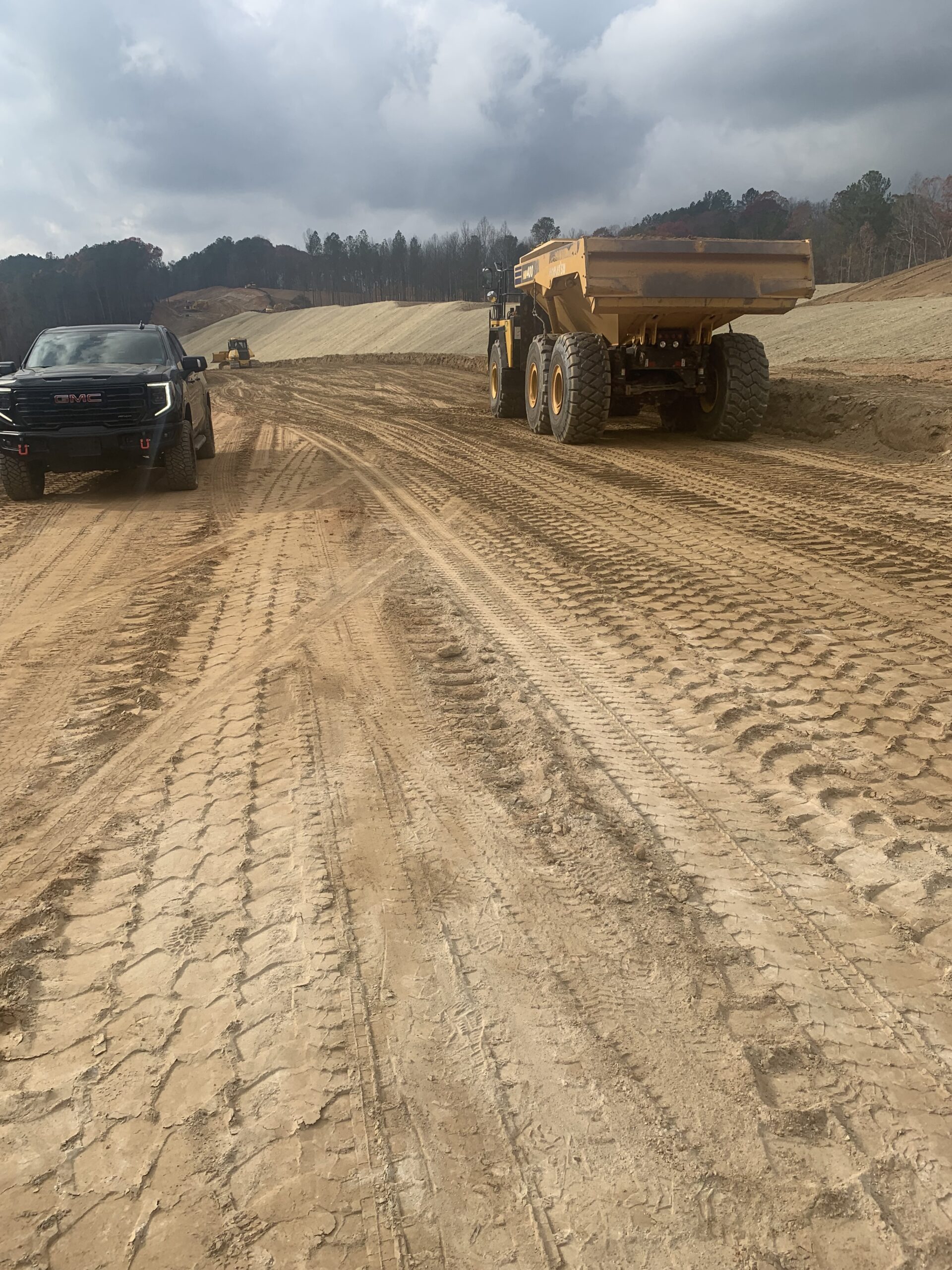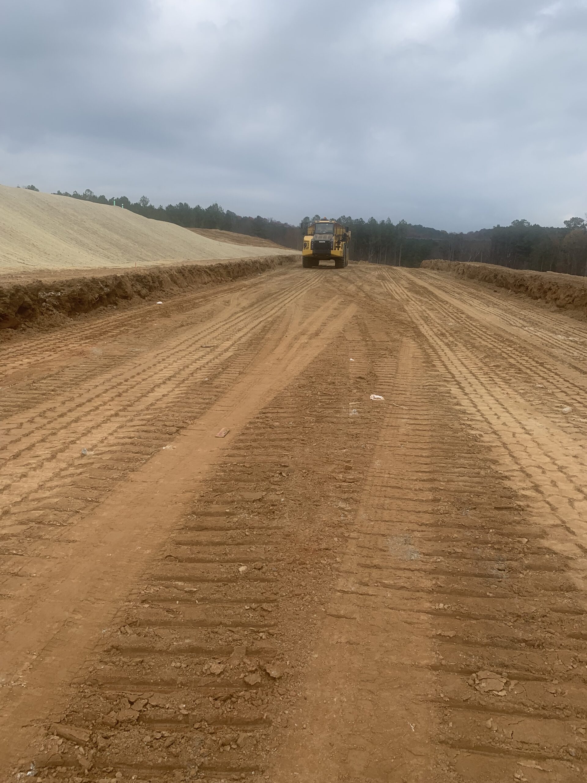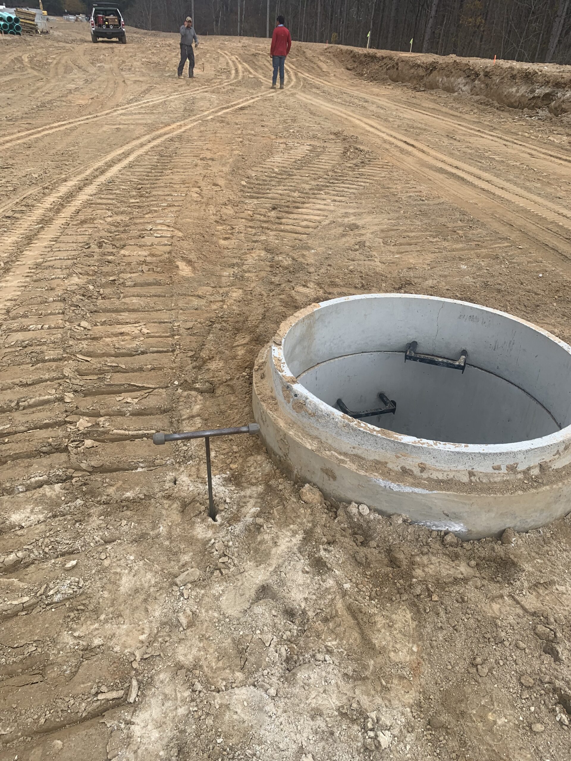 On the above date our representative observed the grading contractor complete subgrade prep at Nature Walk parkway between sanitary sewer manhole structures #4 and #9. The subgrade was observed by watching grading equipment travel over undercut areas and probed using a rounded end steel rod. Areas of concern around manhole structures were recommended for additional compacting efforts. Subgrade areas appear to be suitable to setup proof-roll for base rock placement. The utility contractor onsite today began installation of 12″ PVC sanitary sewer line between manhole structures #5 and #4. The pipe observed was bedded on #57 stone and placed also at the sides. The blasting contractor was onsite and continued drilling on Nature Walk parkway between sanitary sewer manholes #10 and #11. Also, the grading contractor continued fill placement at slope embankment phase 2 extension.