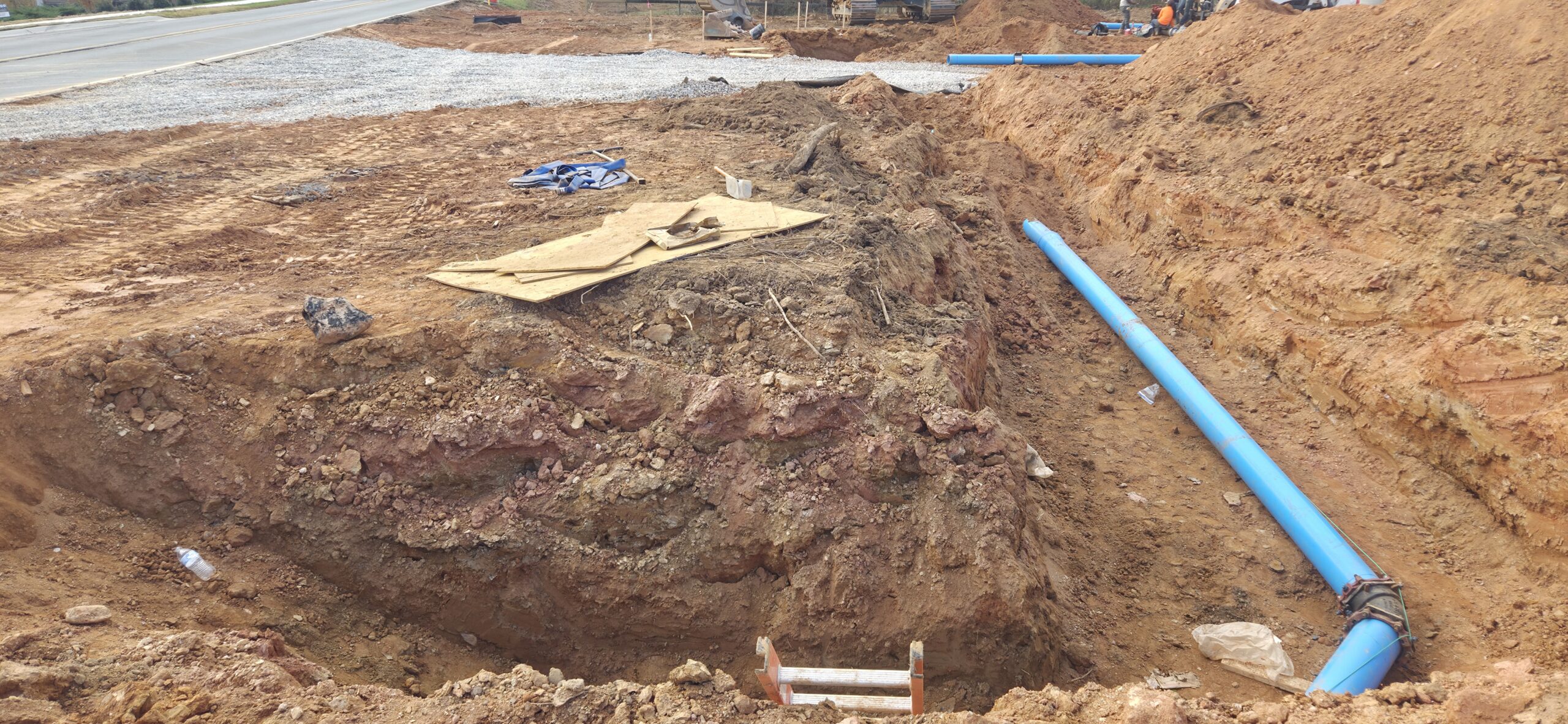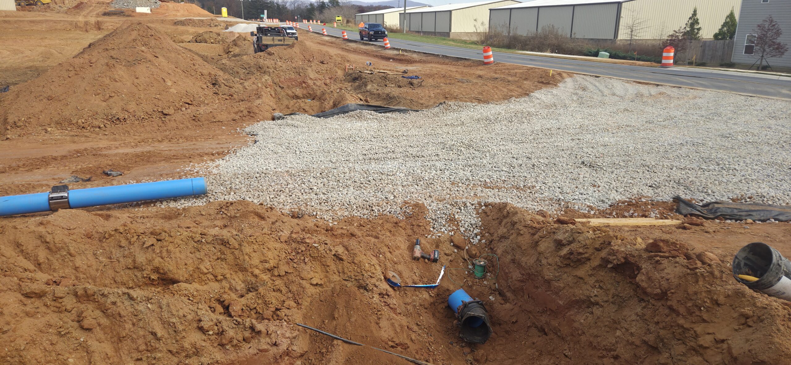 The contractor began installation of a water line along the deceleration lane near Lot #1. Once this line is backfilled, ASEC will density test the pipeline backfill.